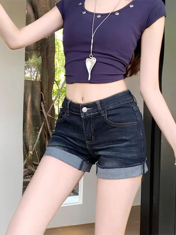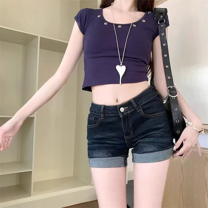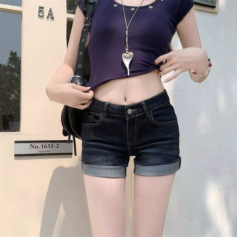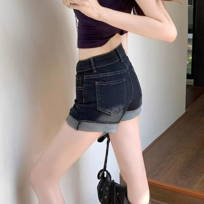 Летние джинсовые шорты 2025 года, модные американские шорты для девушек, высокая талия, утягивающие, свободные, универсальные, широкие, верхняя одежда, прямая продажа