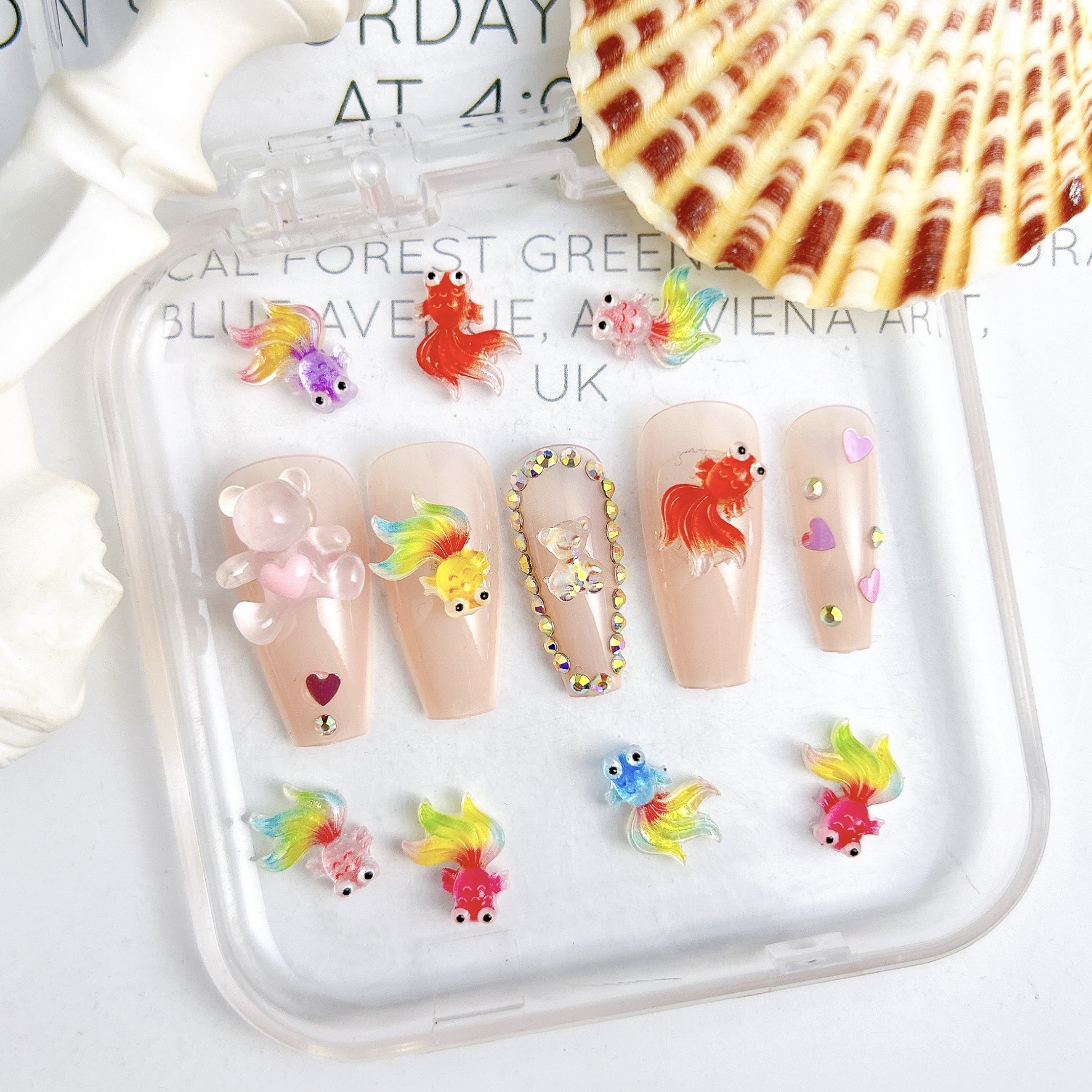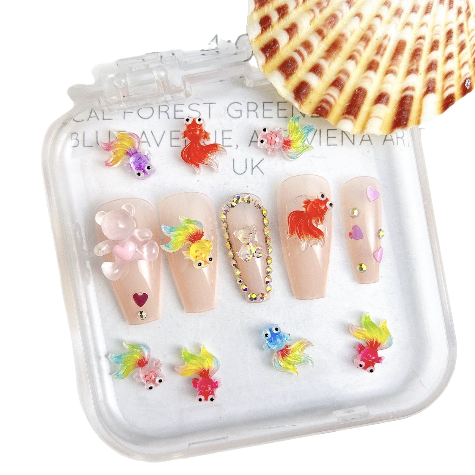 Ювелирные изделия для дизайна ногтей, мультяшный градиент, маленькая модель золотой рыбки, ручная работа, заколка для волос «сделай сам», аксессуары из смолы кои, украшения для ногтей