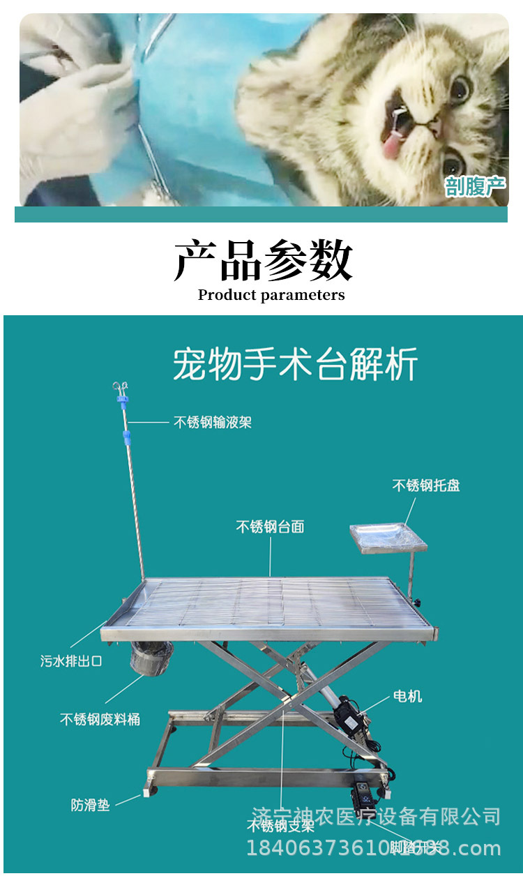 Операционный стол для домашних животных, электрический регулируемый стол из нержавеющей стали 304, стол для диагностики и лечения, анатомический стол, операционный стол для домашних животных