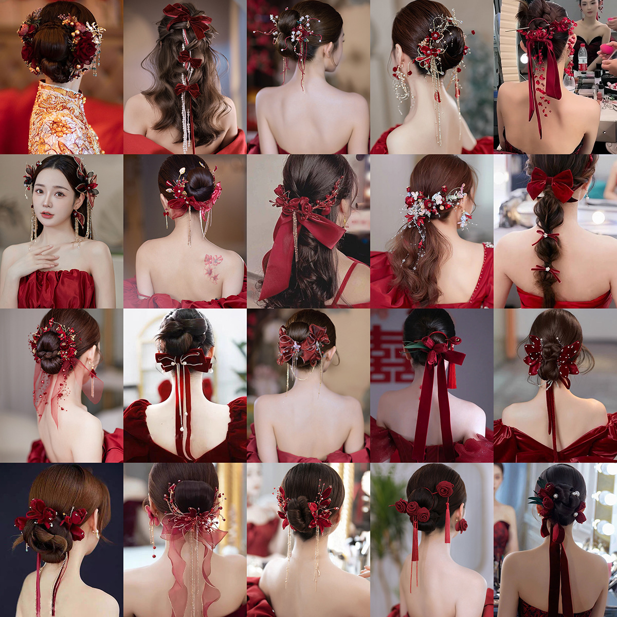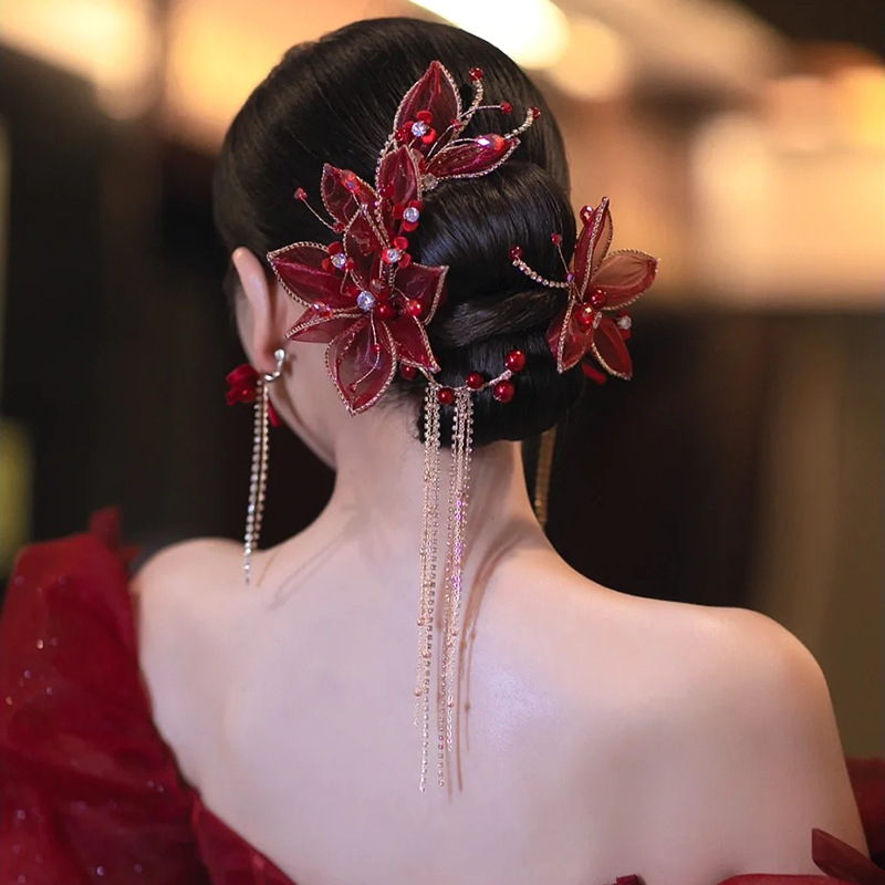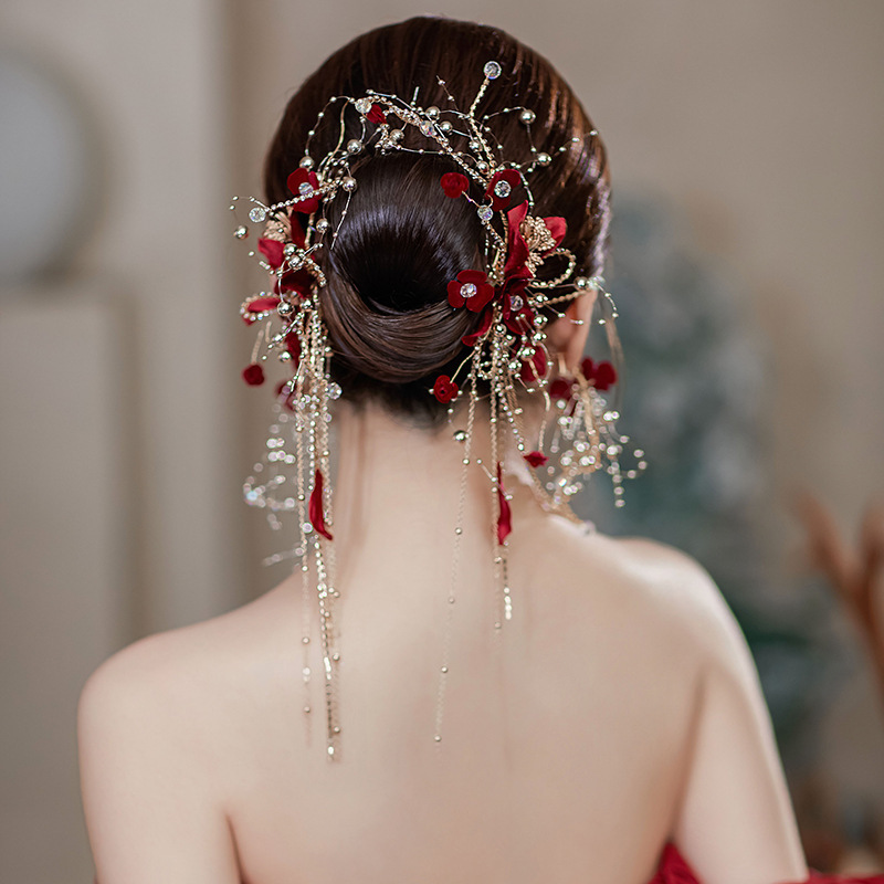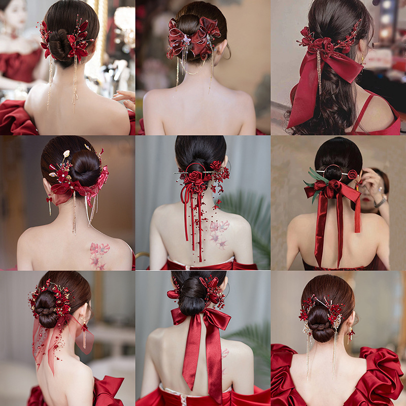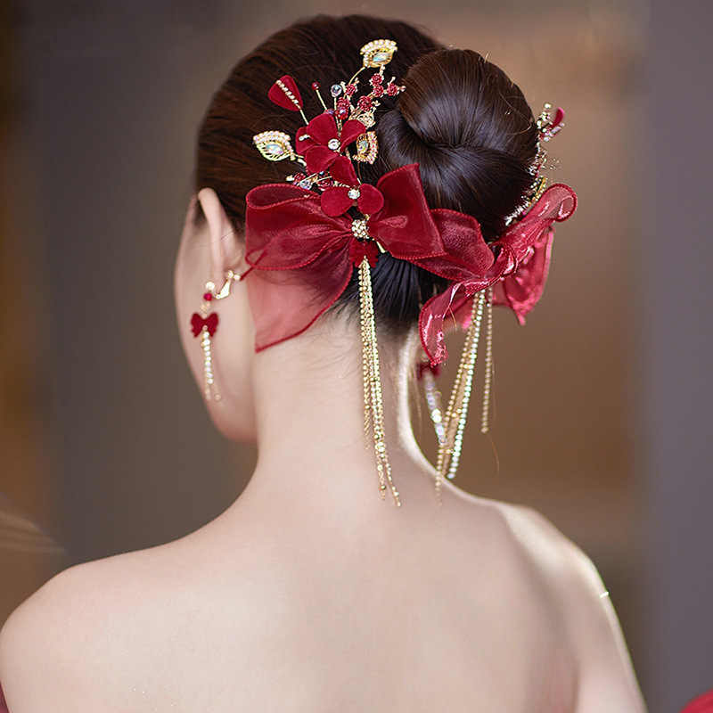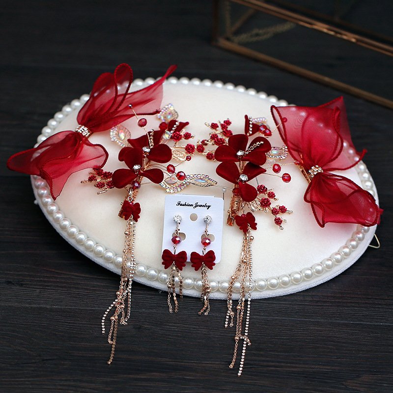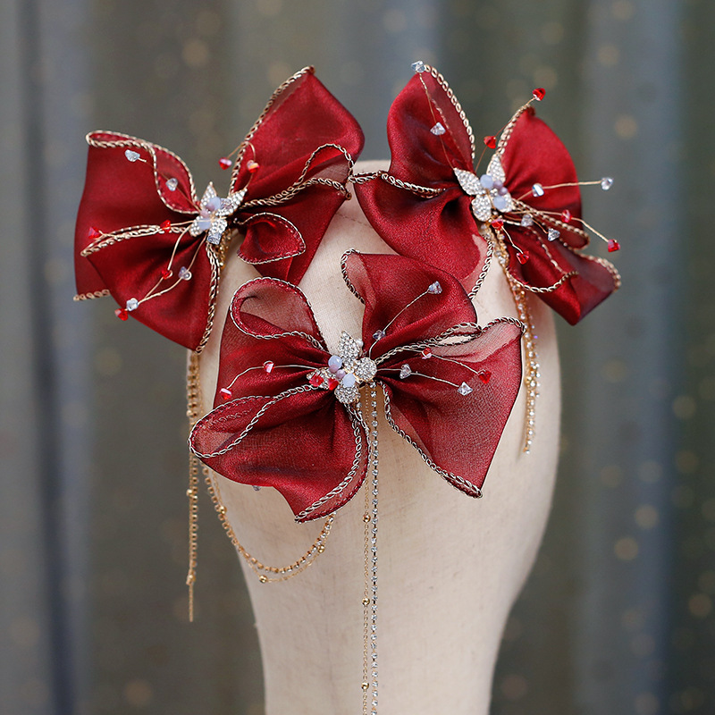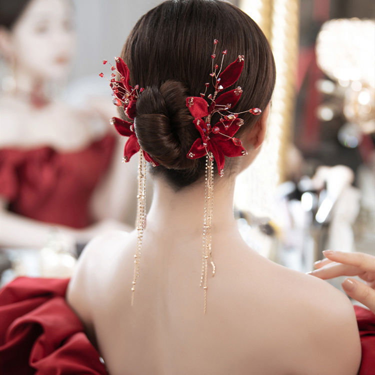 Свадебные красные аксессуары для волос на клипсе, боковой стиль, модные головные уборы, свадебное платье для тостов, чонсам, аксессуары для ужина