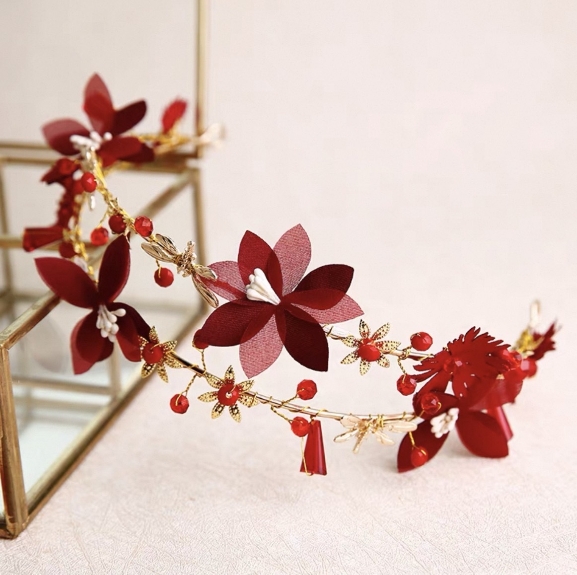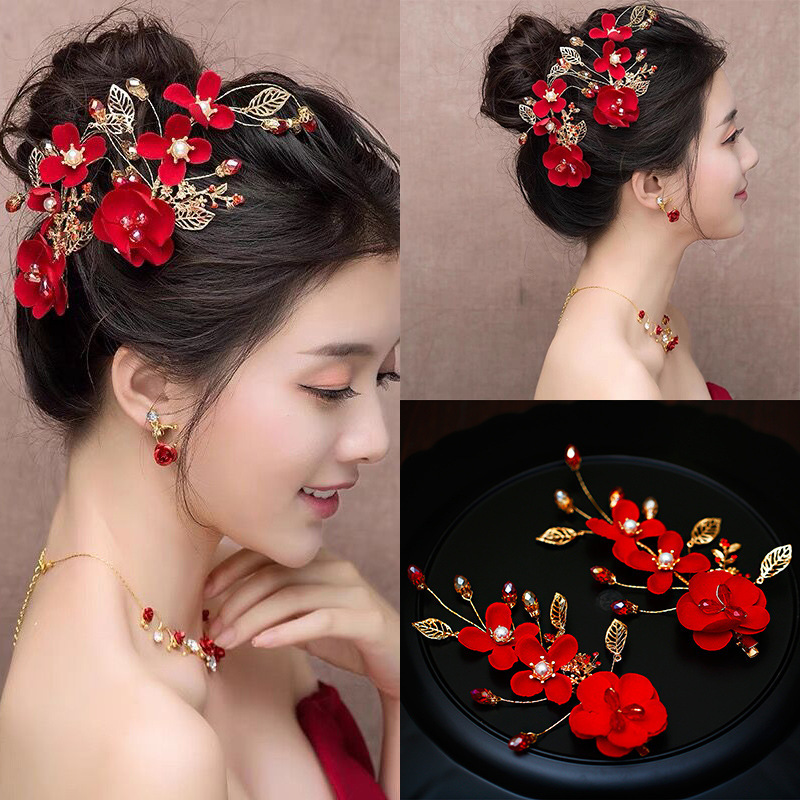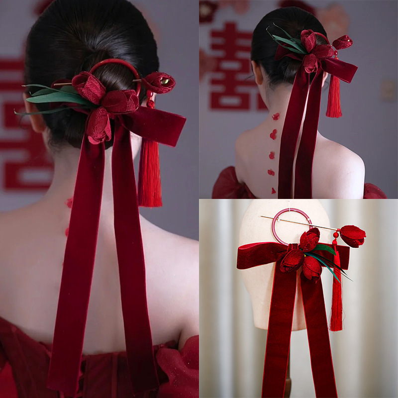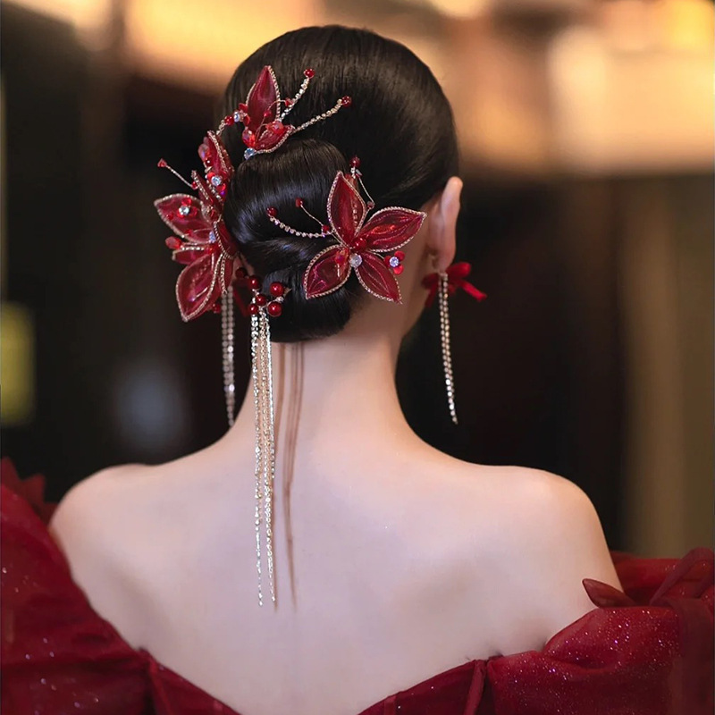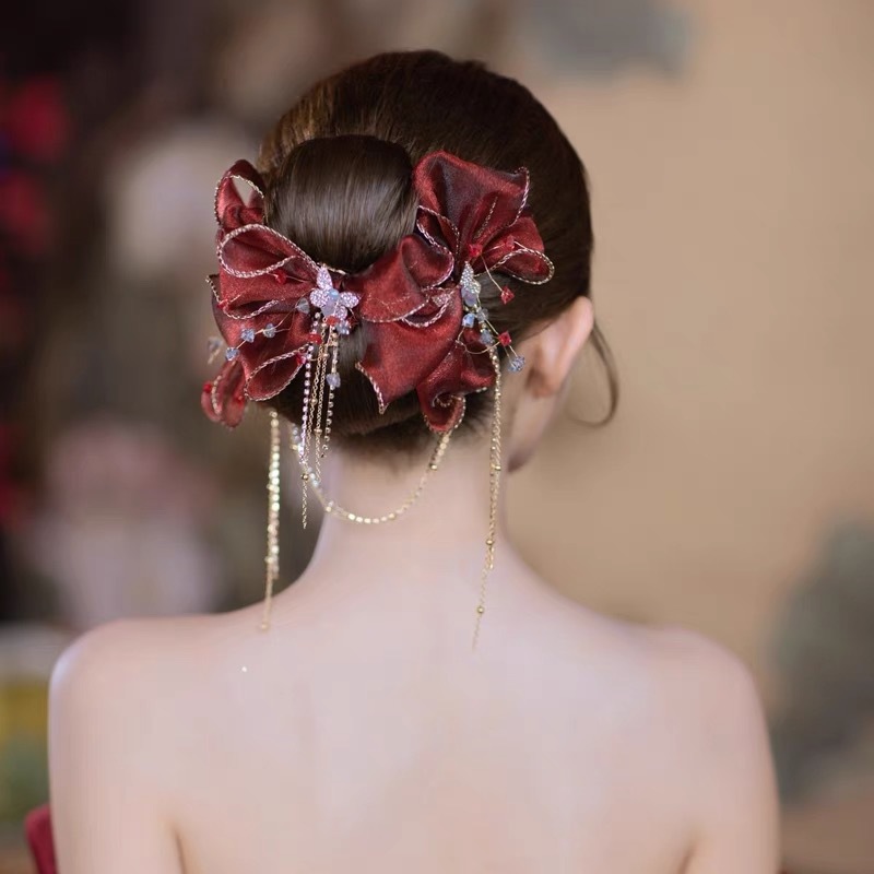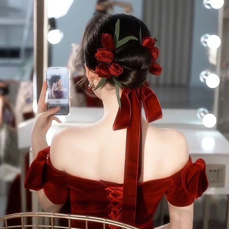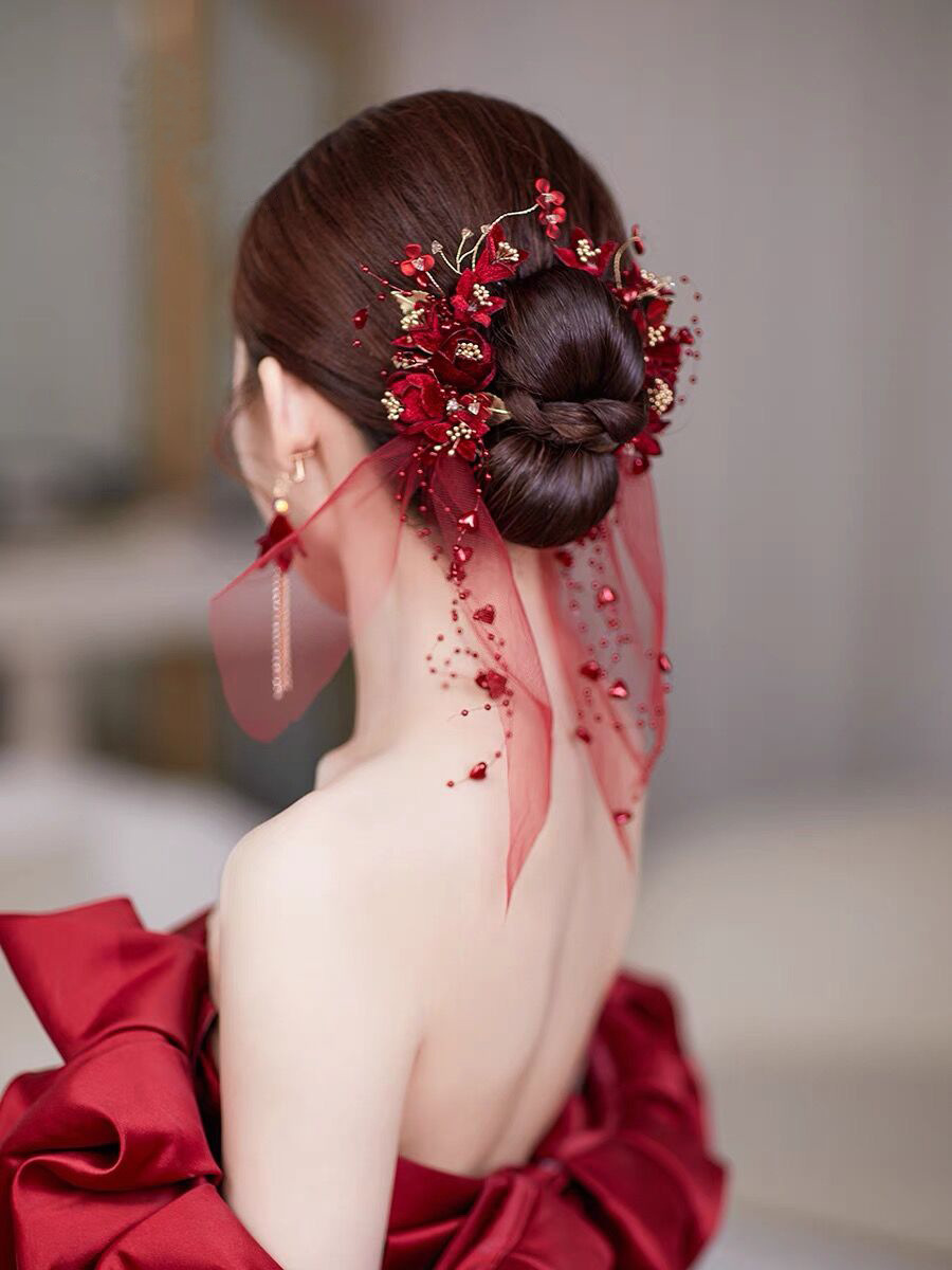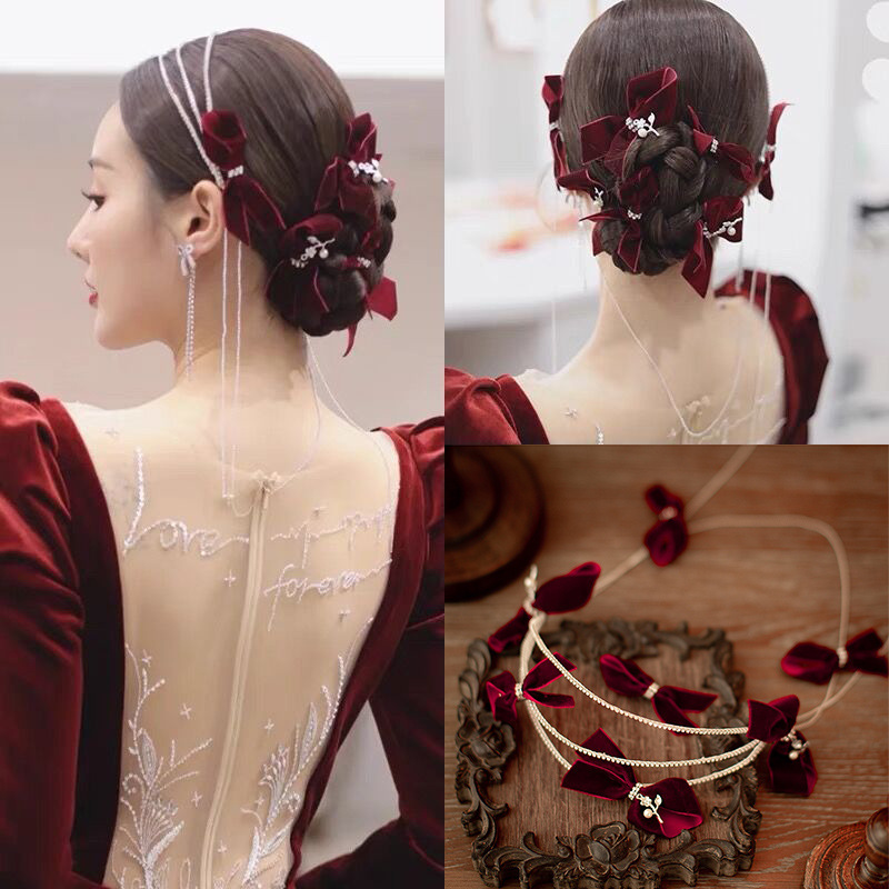 Свадебные красные аксессуары для волос на клипсе, боковой стиль, модные головные уборы, свадебное платье для тостов, чонсам, аксессуары для ужина