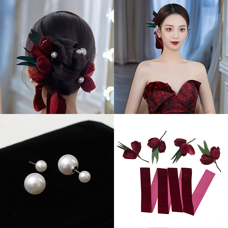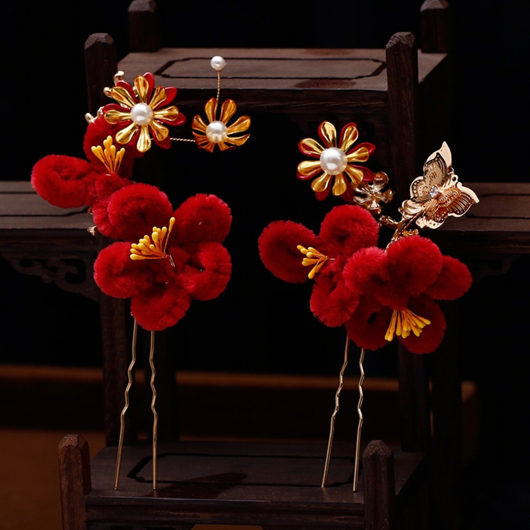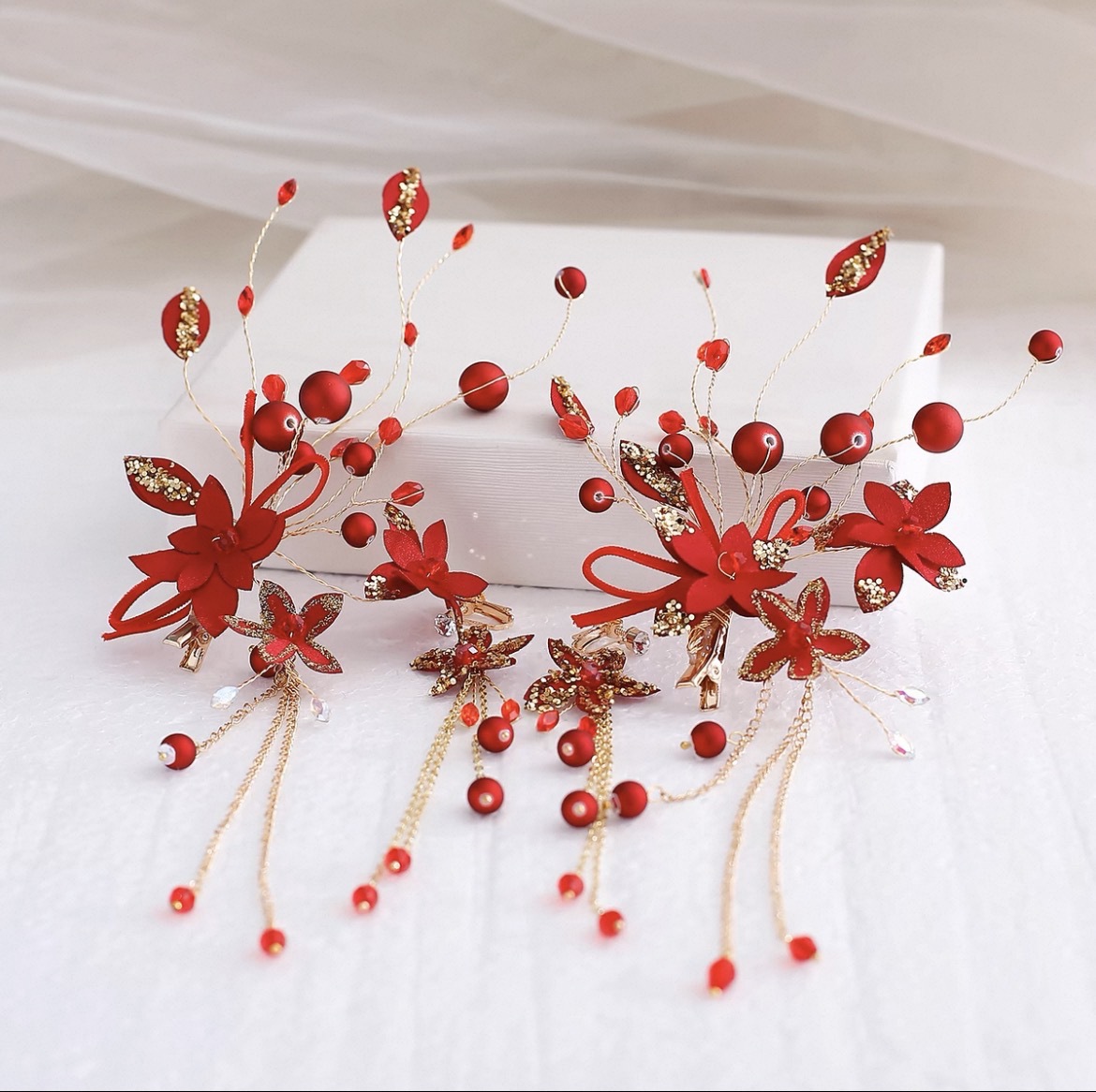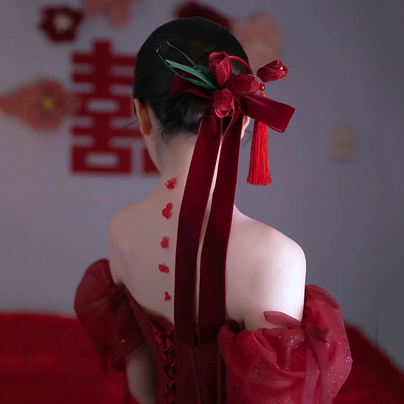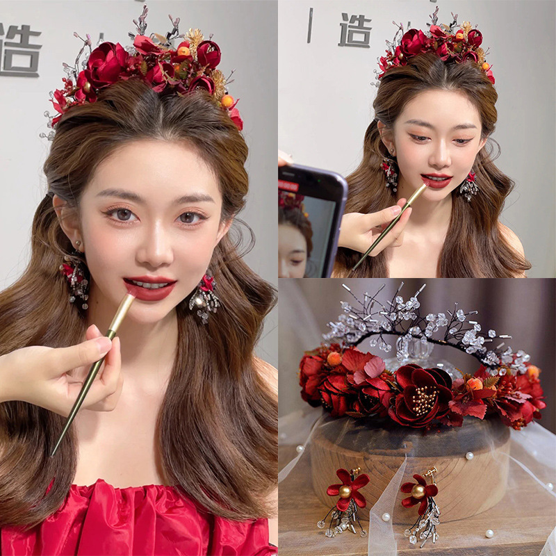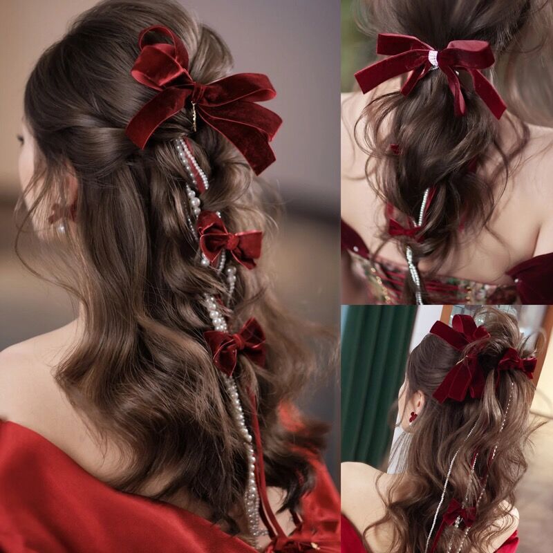 Свадебные красные аксессуары для волос на клипсе, боковой стиль, модные головные уборы, свадебное платье для тостов, чонсам, аксессуары для ужина