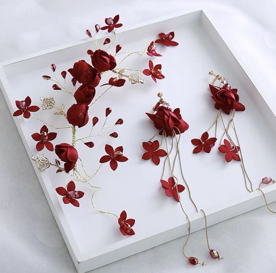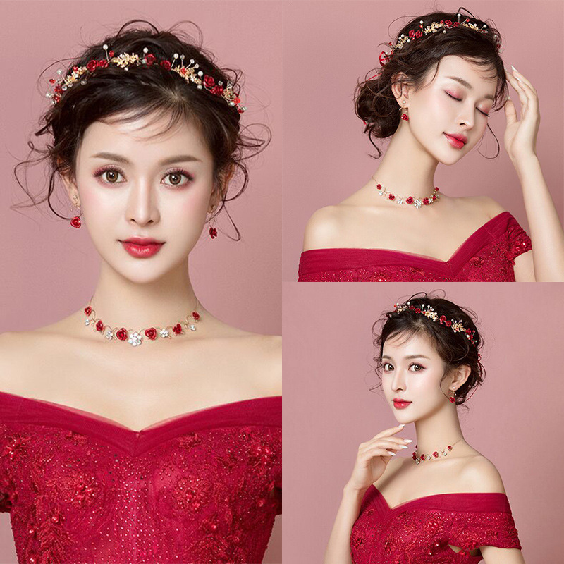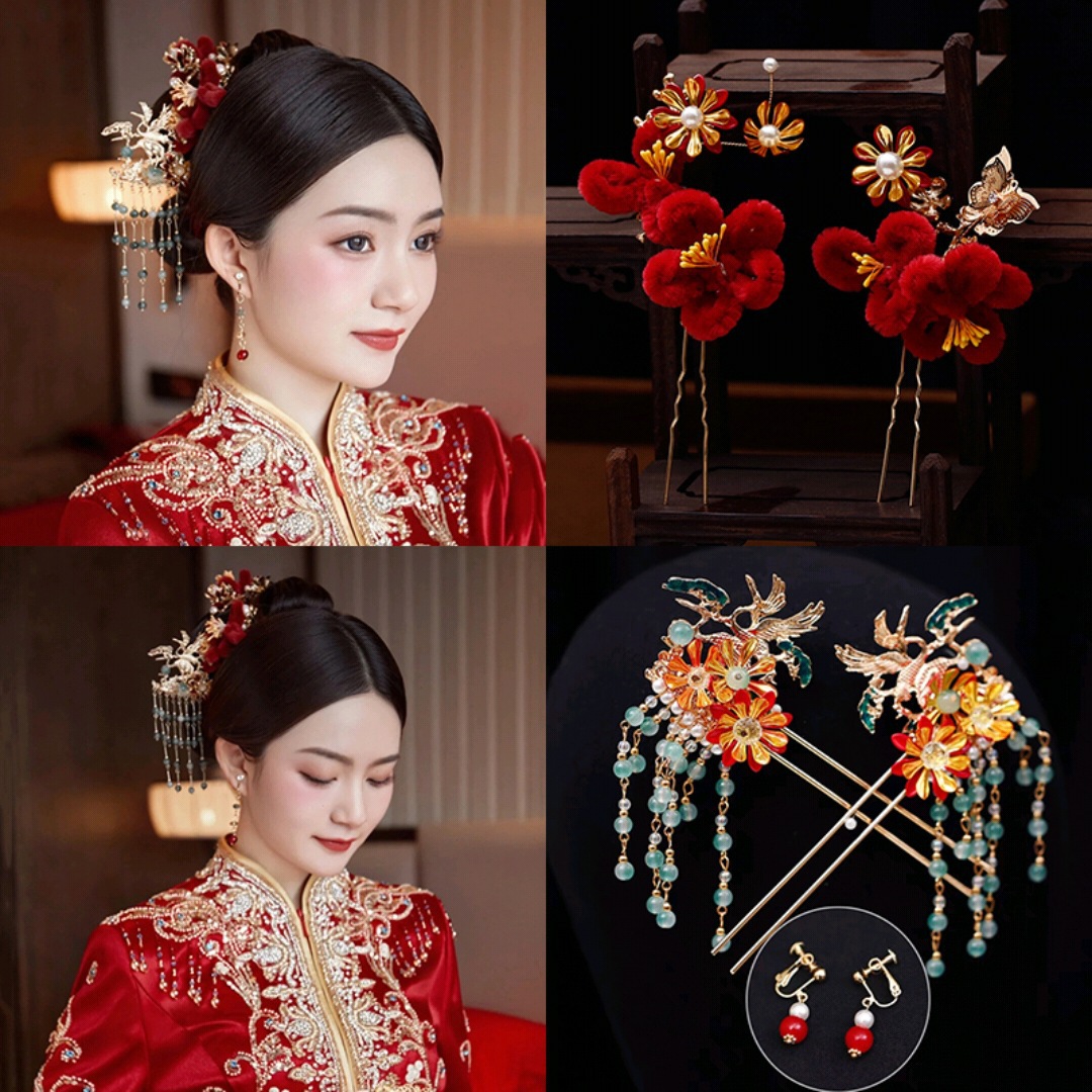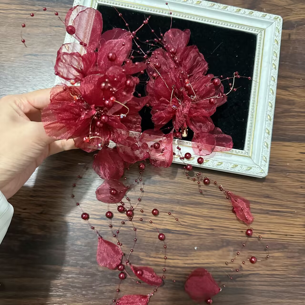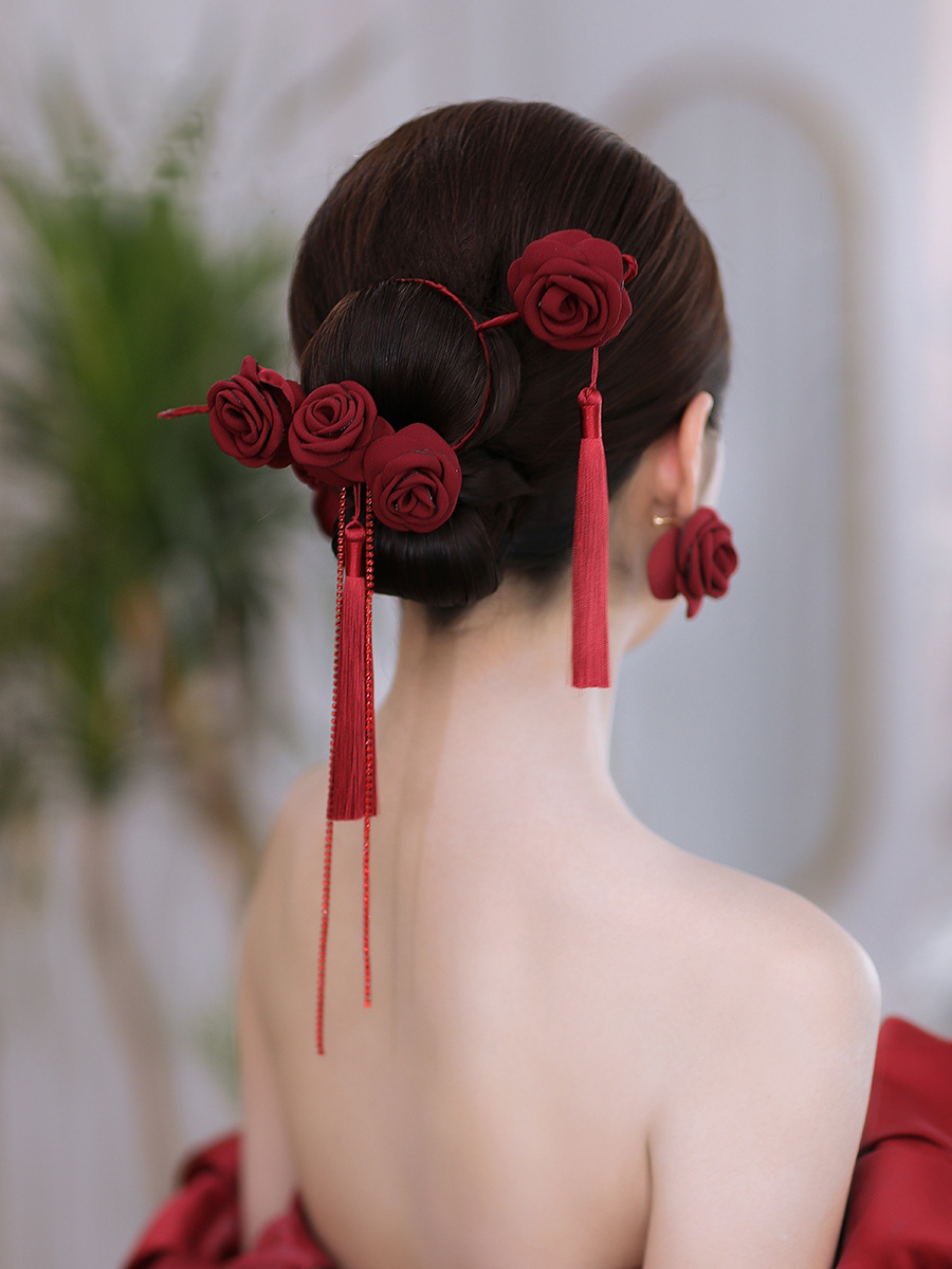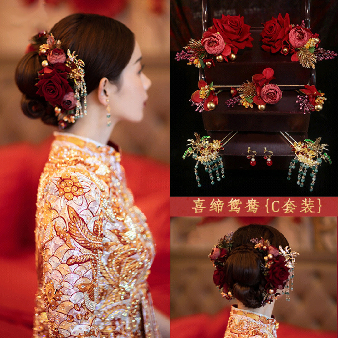 Свадебные красные аксессуары для волос на клипсе, боковой стиль, модные головные уборы, свадебное платье для тостов, чонсам, аксессуары для ужина