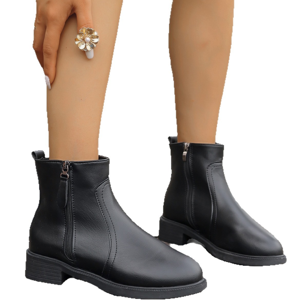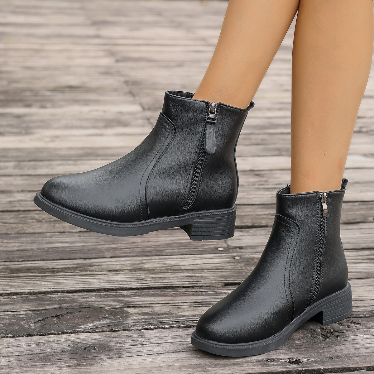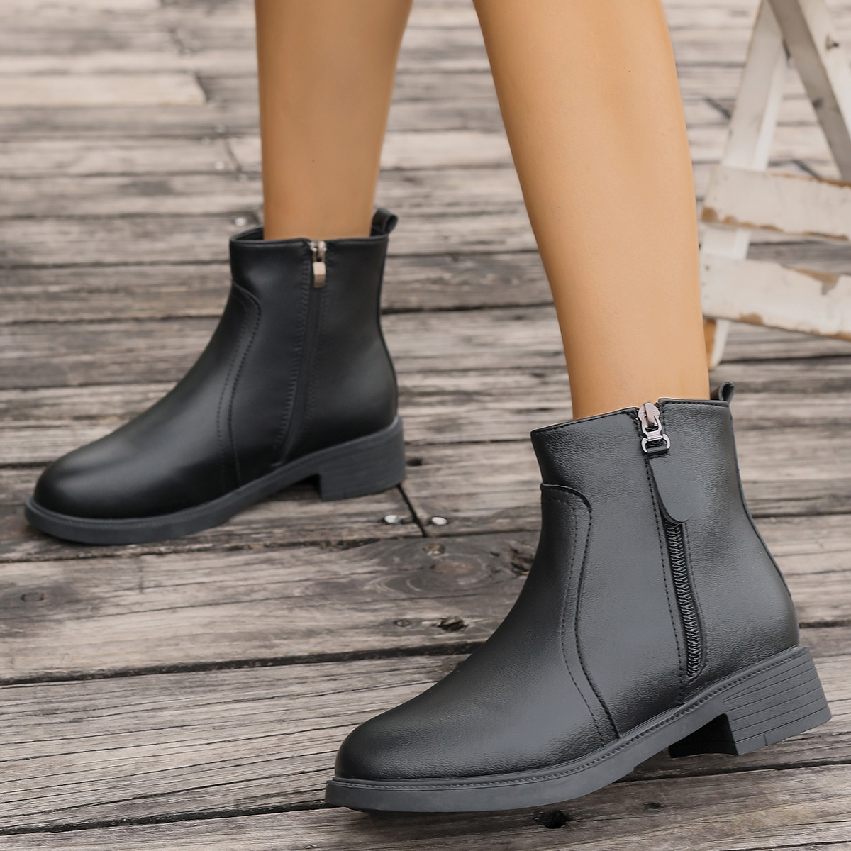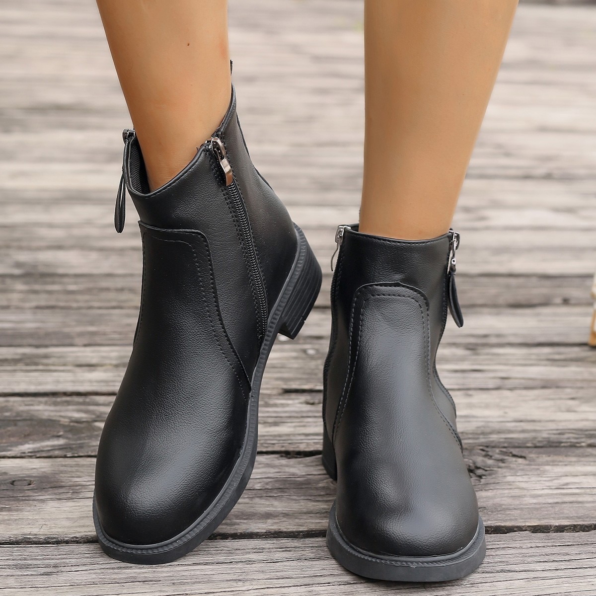 2025 новых женских ботинок с двойными молниями, боковыми молниями, однотонные универсальные простые модные ботинки, узкие женские ботинки.