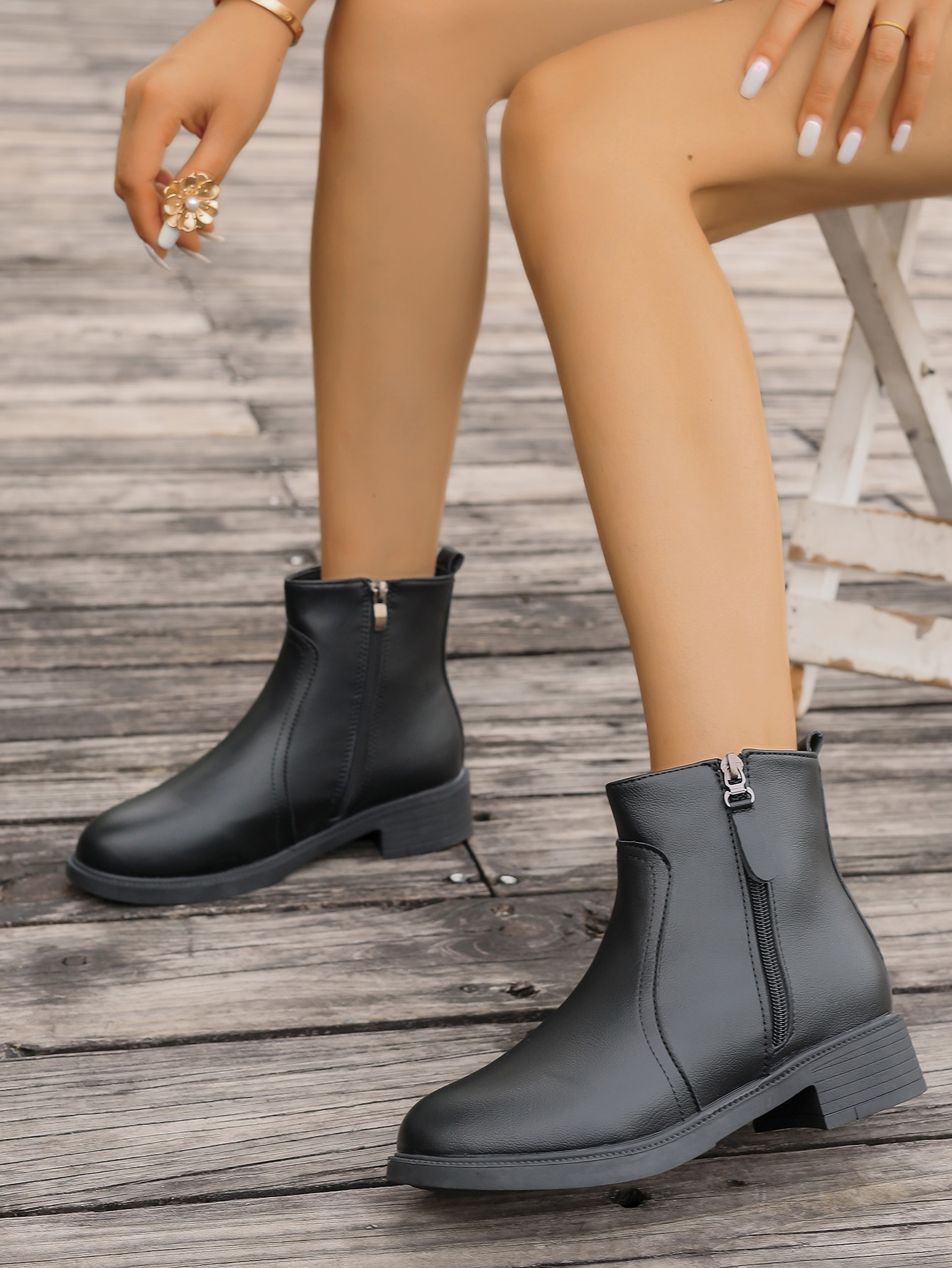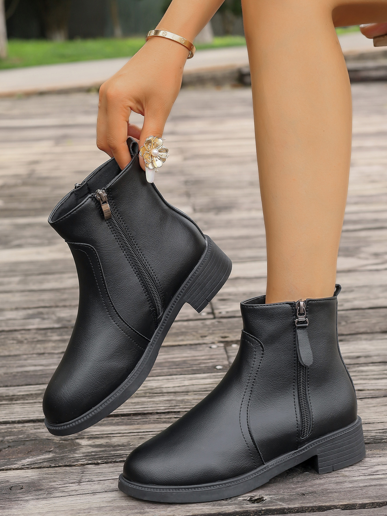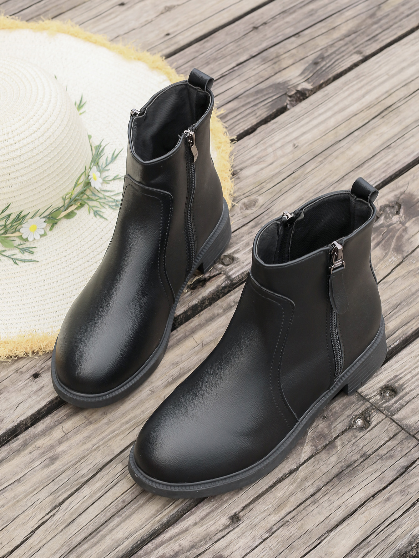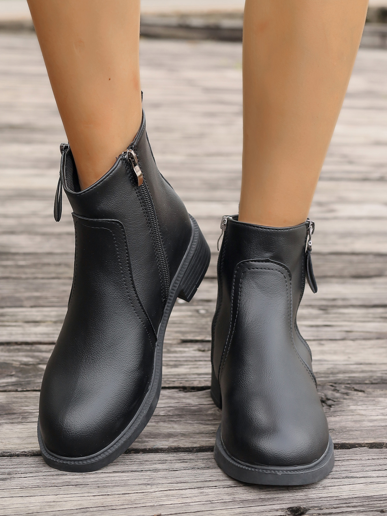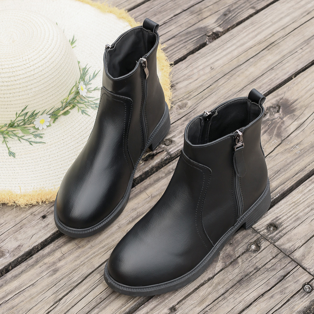 2025 новых женских ботинок с двойными молниями, боковыми молниями, однотонные универсальные простые модные ботинки, узкие женские ботинки.