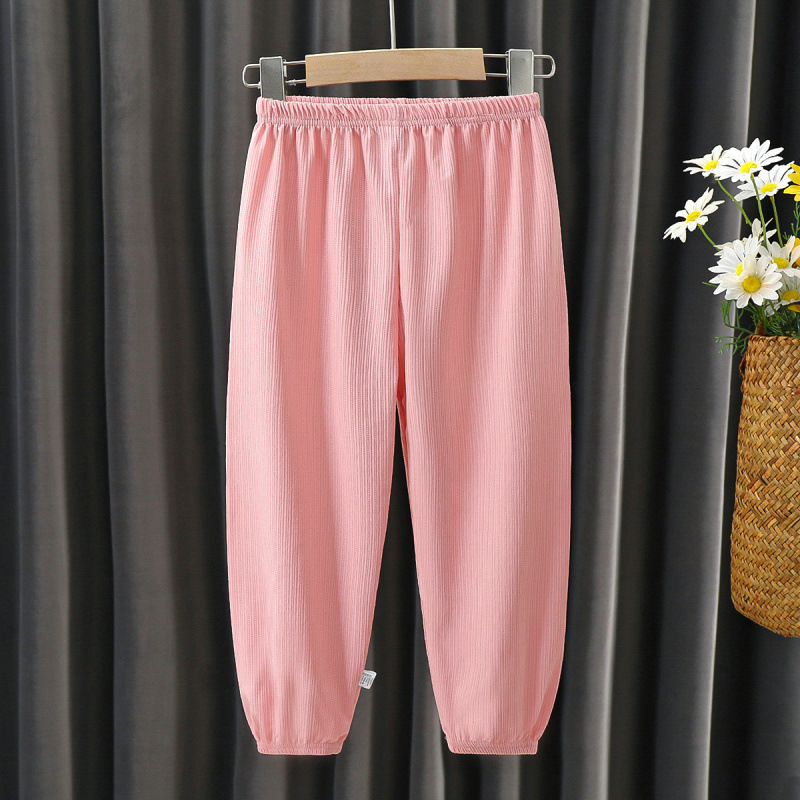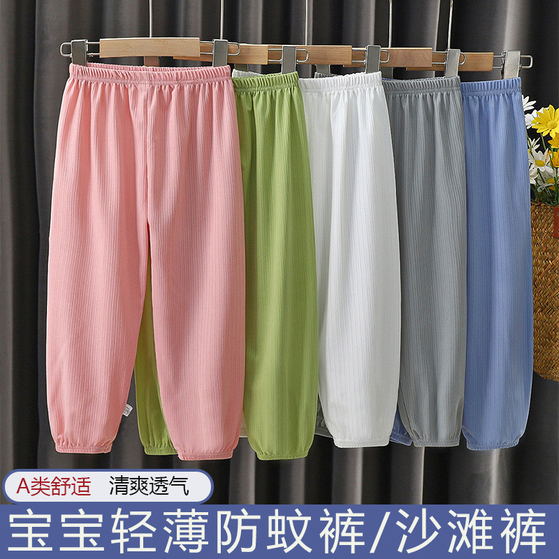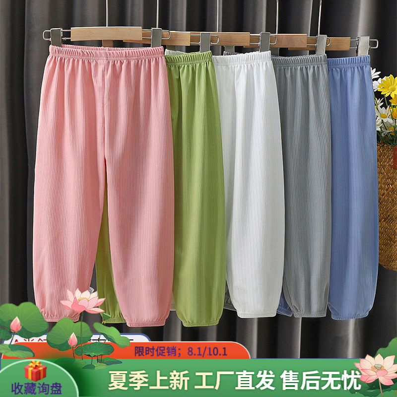 Детские летние новые штаны из ледяного шелка с защитой от комаров, детские шаровары среднего и большого размера, тонкие штаны с кондиционером, шаровары, модные в корейском стиле.
