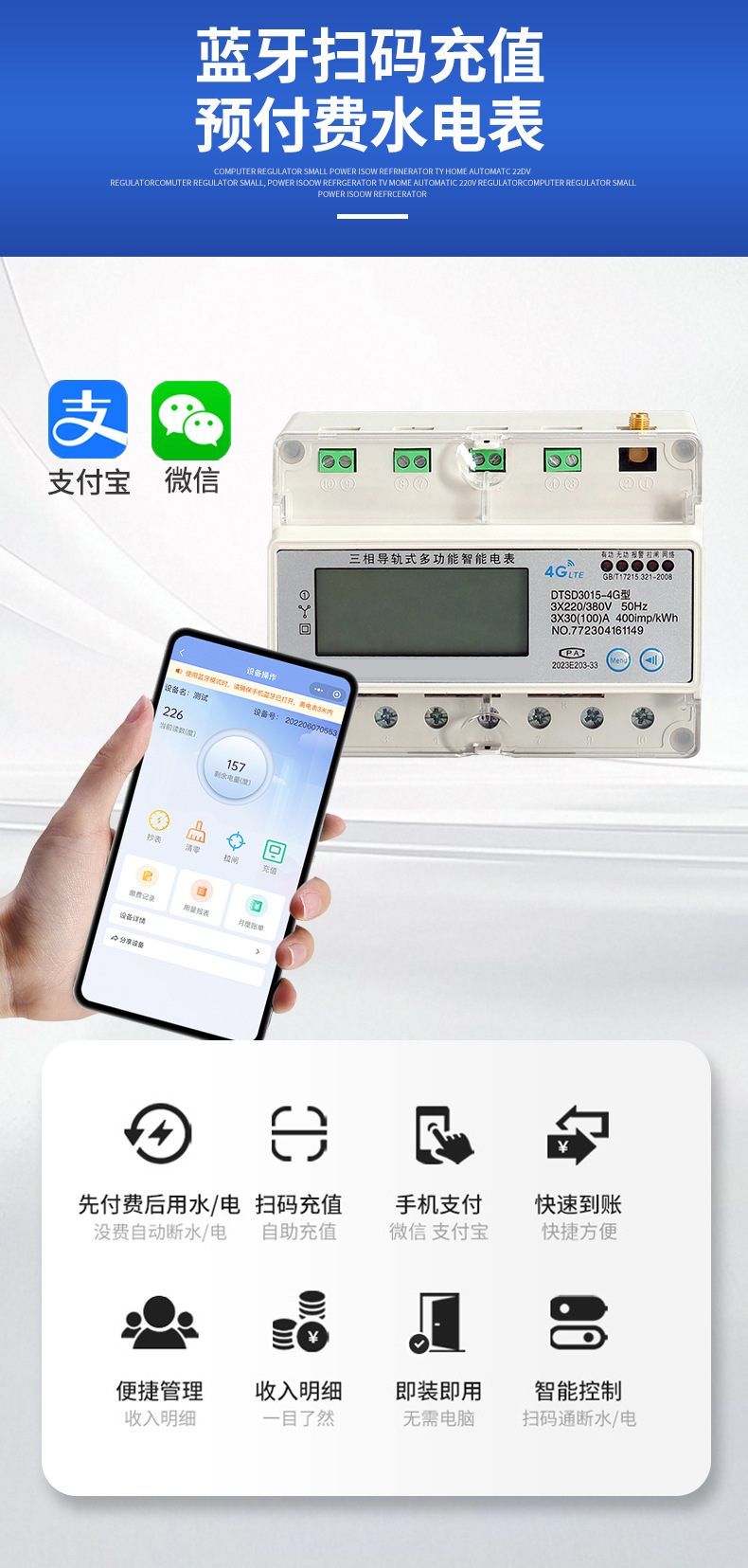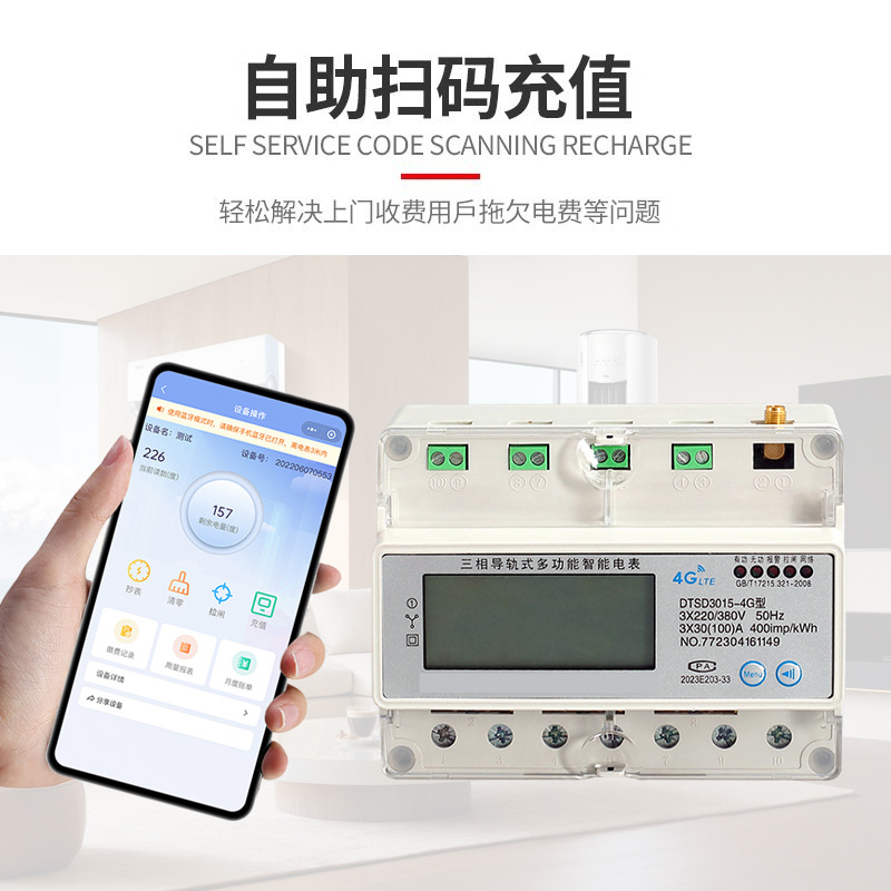 4G рельсовый трехфазный счетчик электроэнергии, предоплаченный удаленный сканирующий код, перезарядка, умный счетчик электроэнергии, 220 В, цифровой дисплей, счетчик электроэнергии