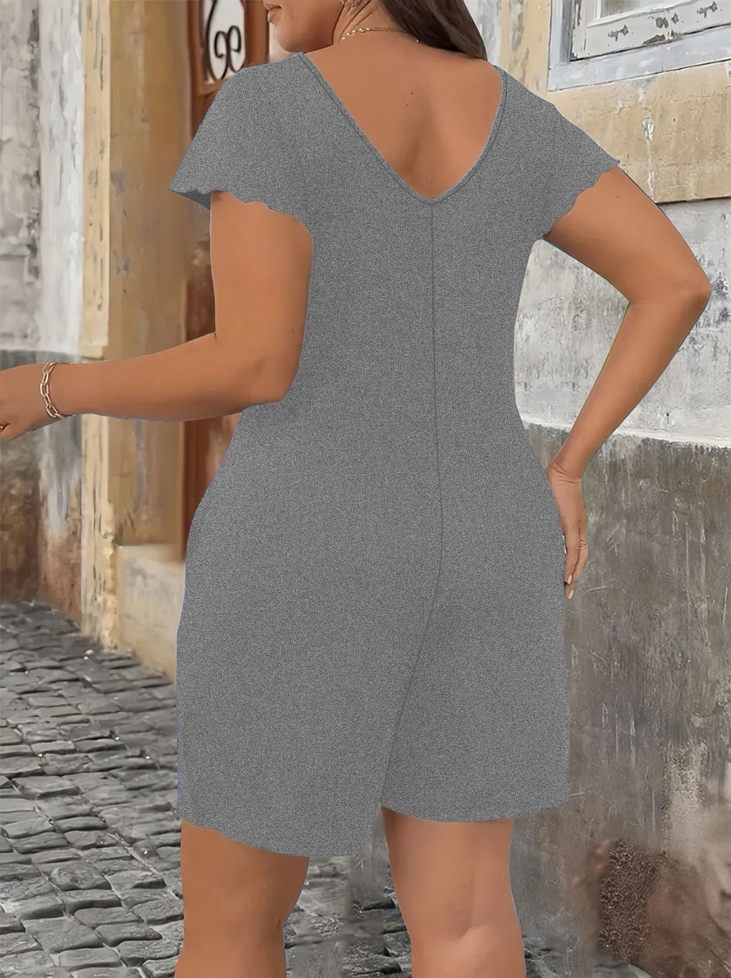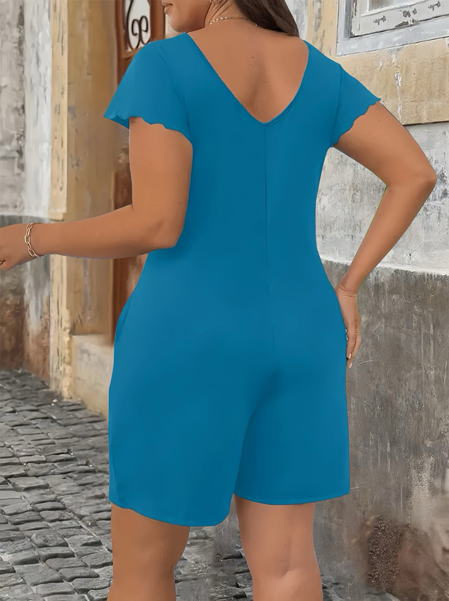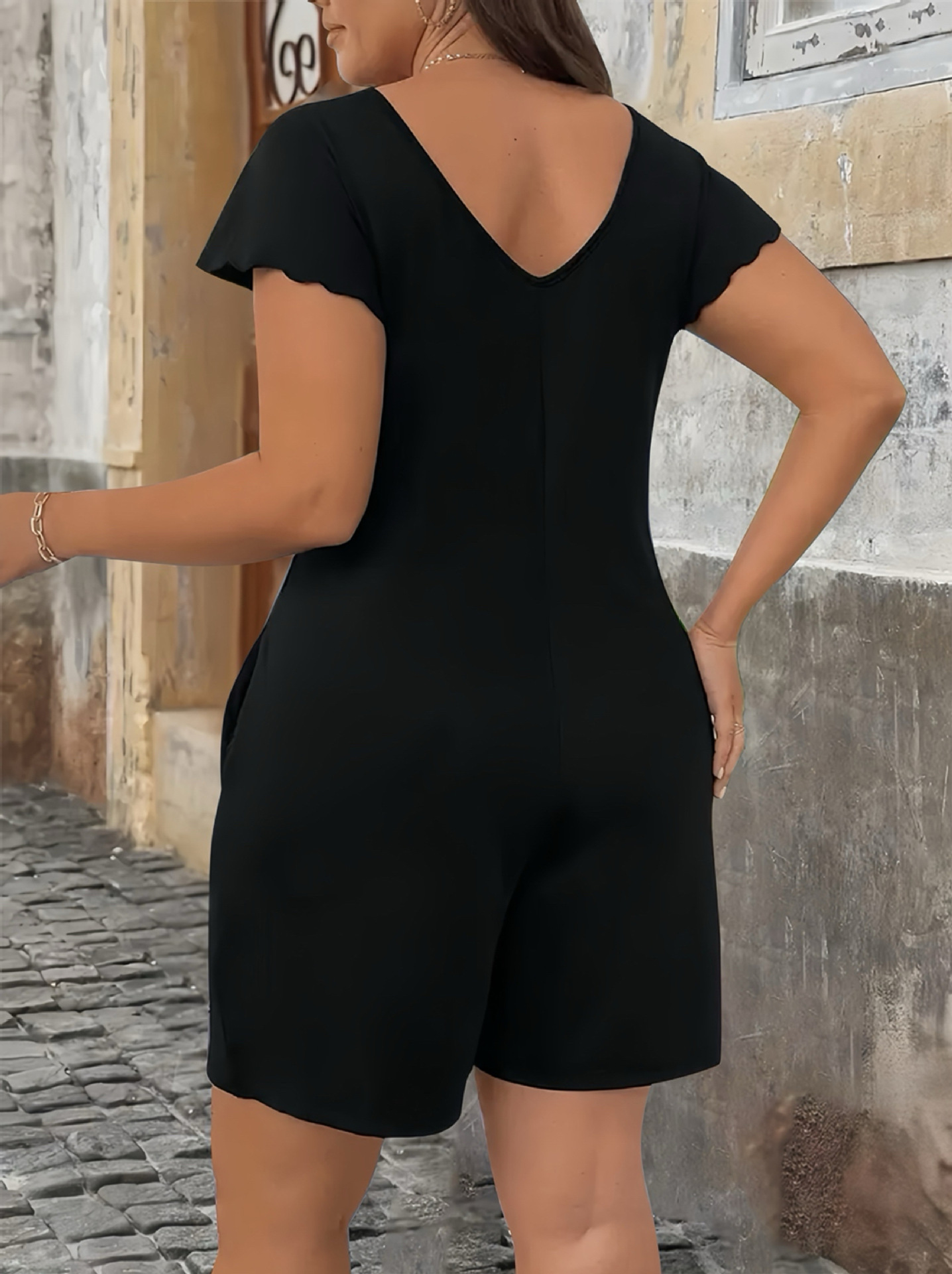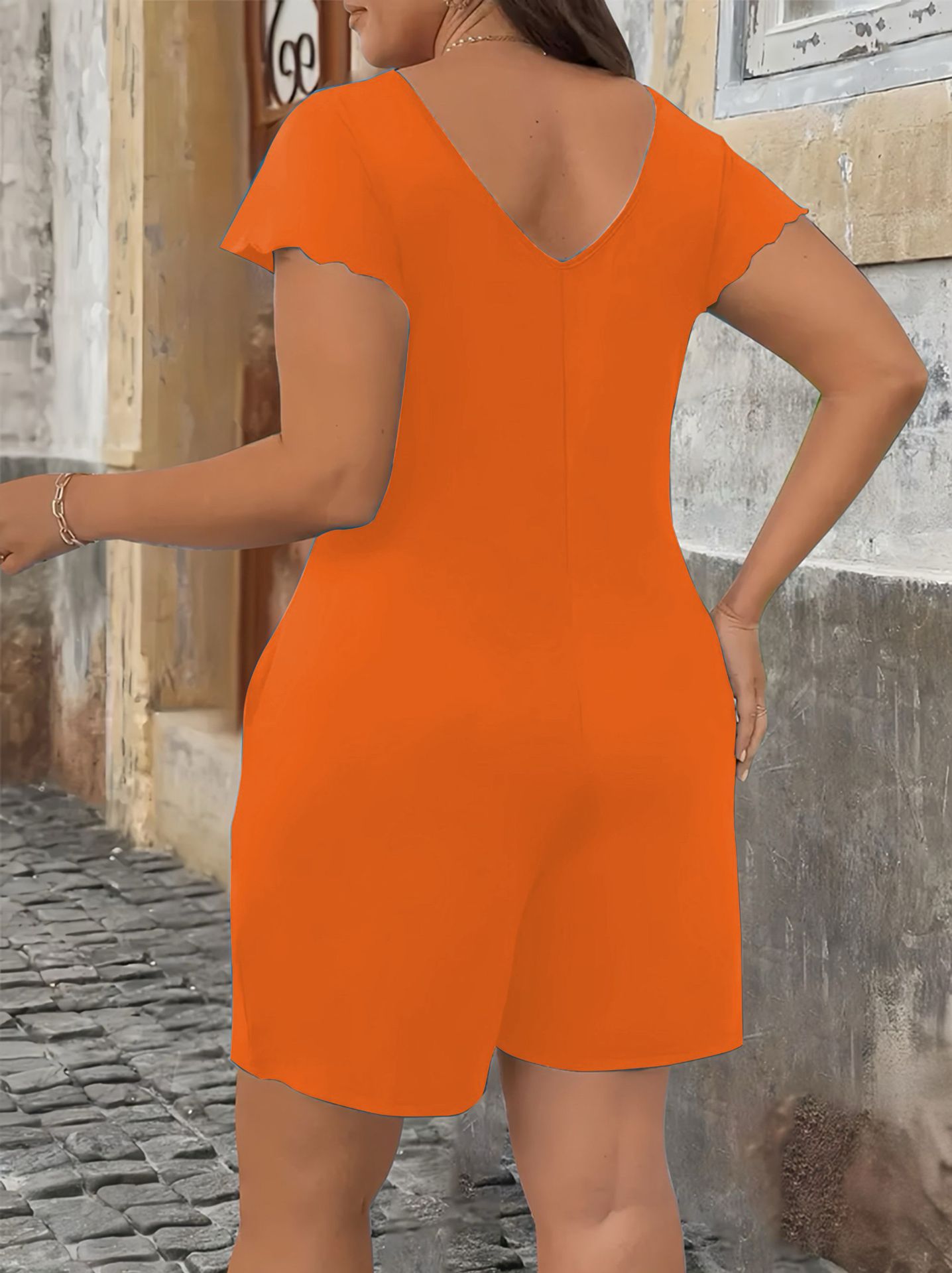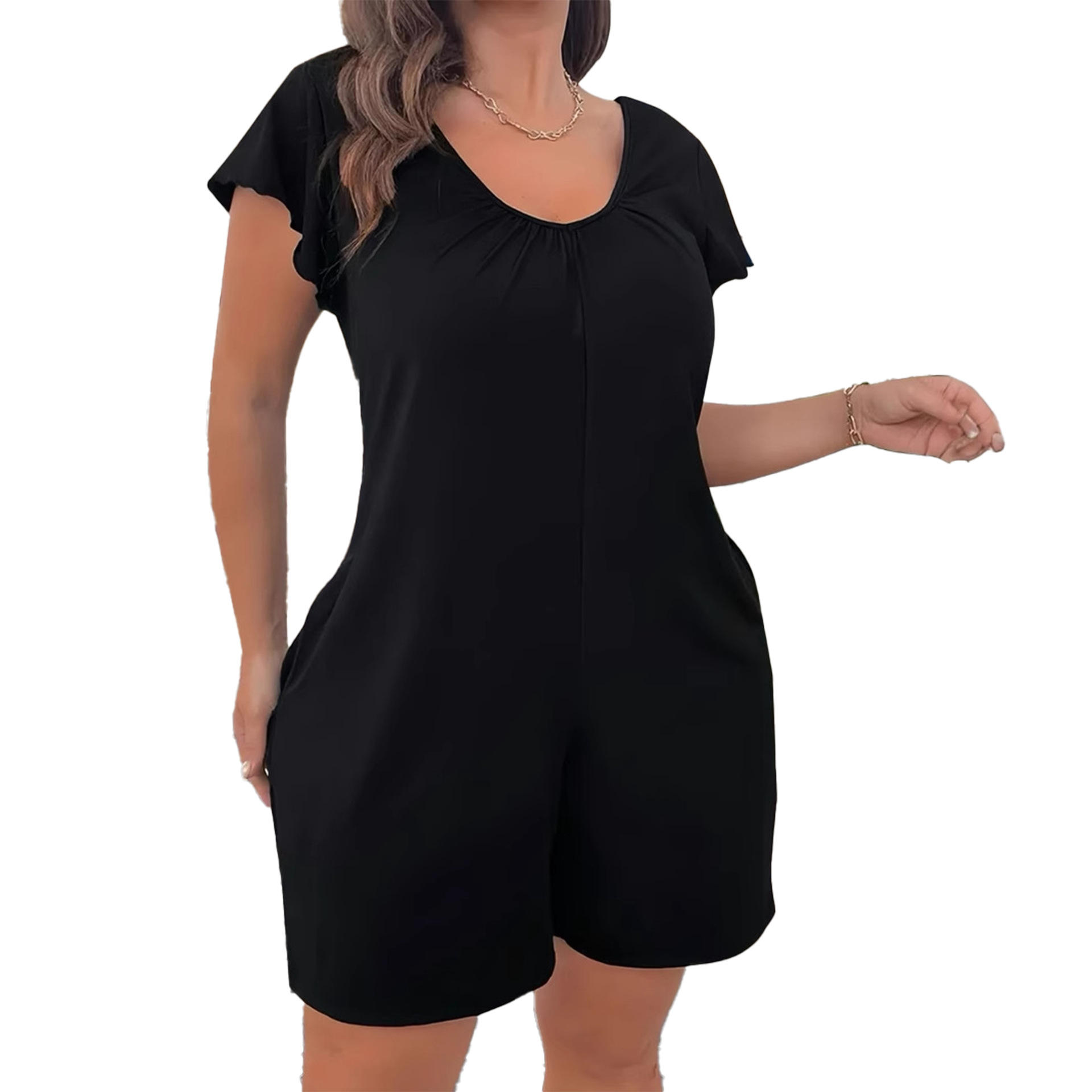 2025 Европейский и американский экспорт Amazon AliExpress независимая станция поставляет однотонный элегантный женский комбинезон больших размеров с короткими рукавами