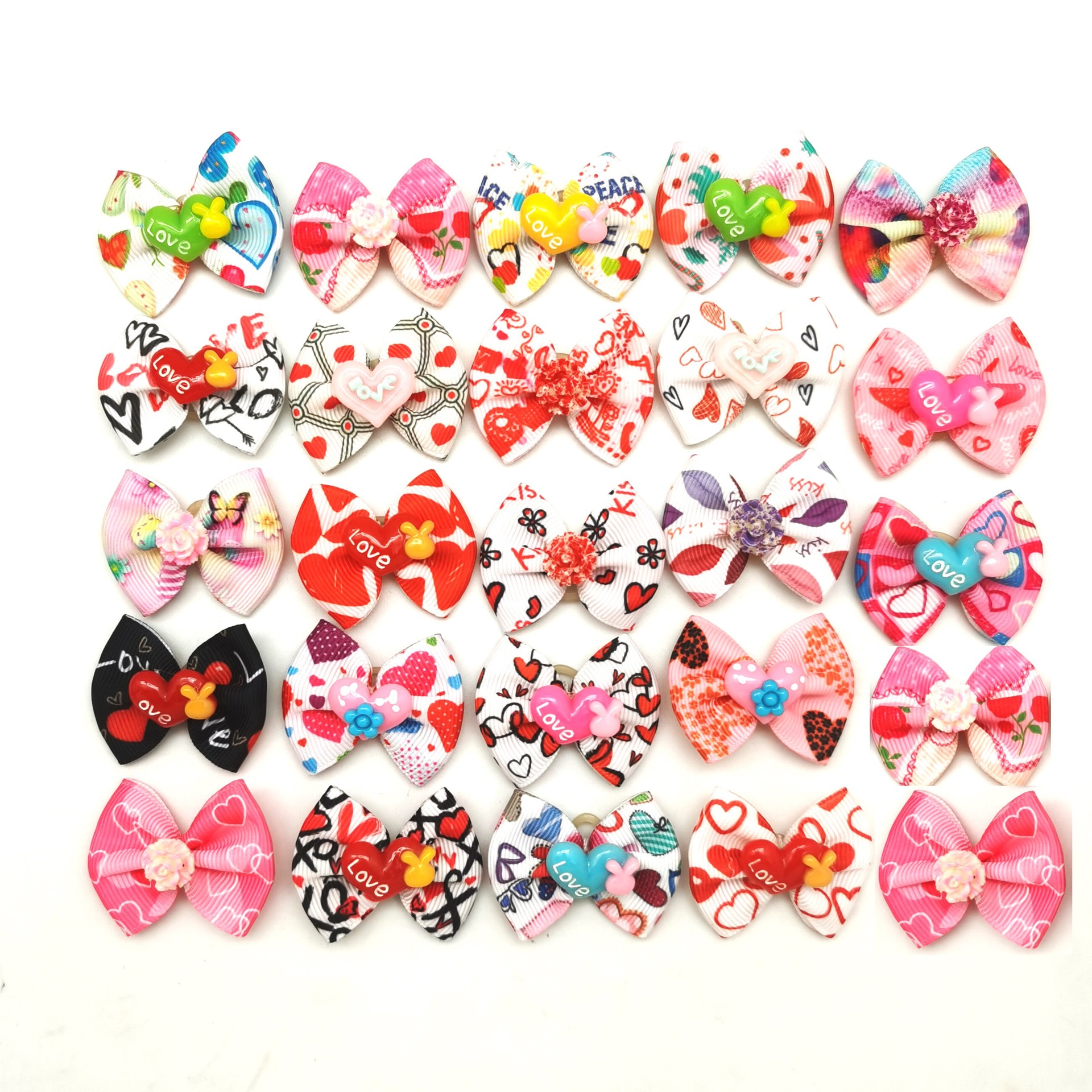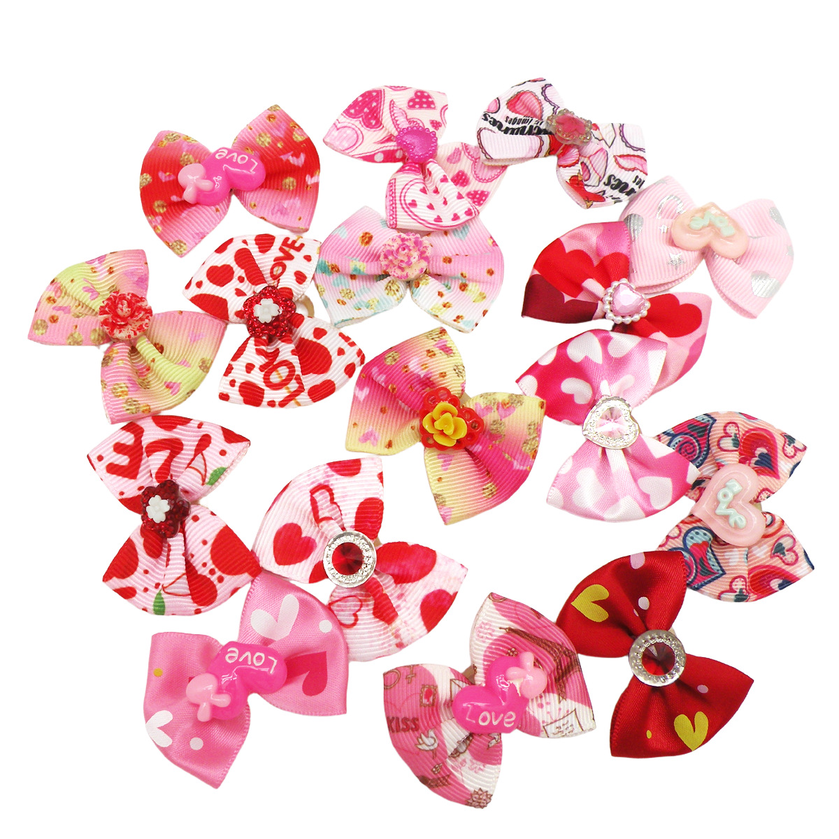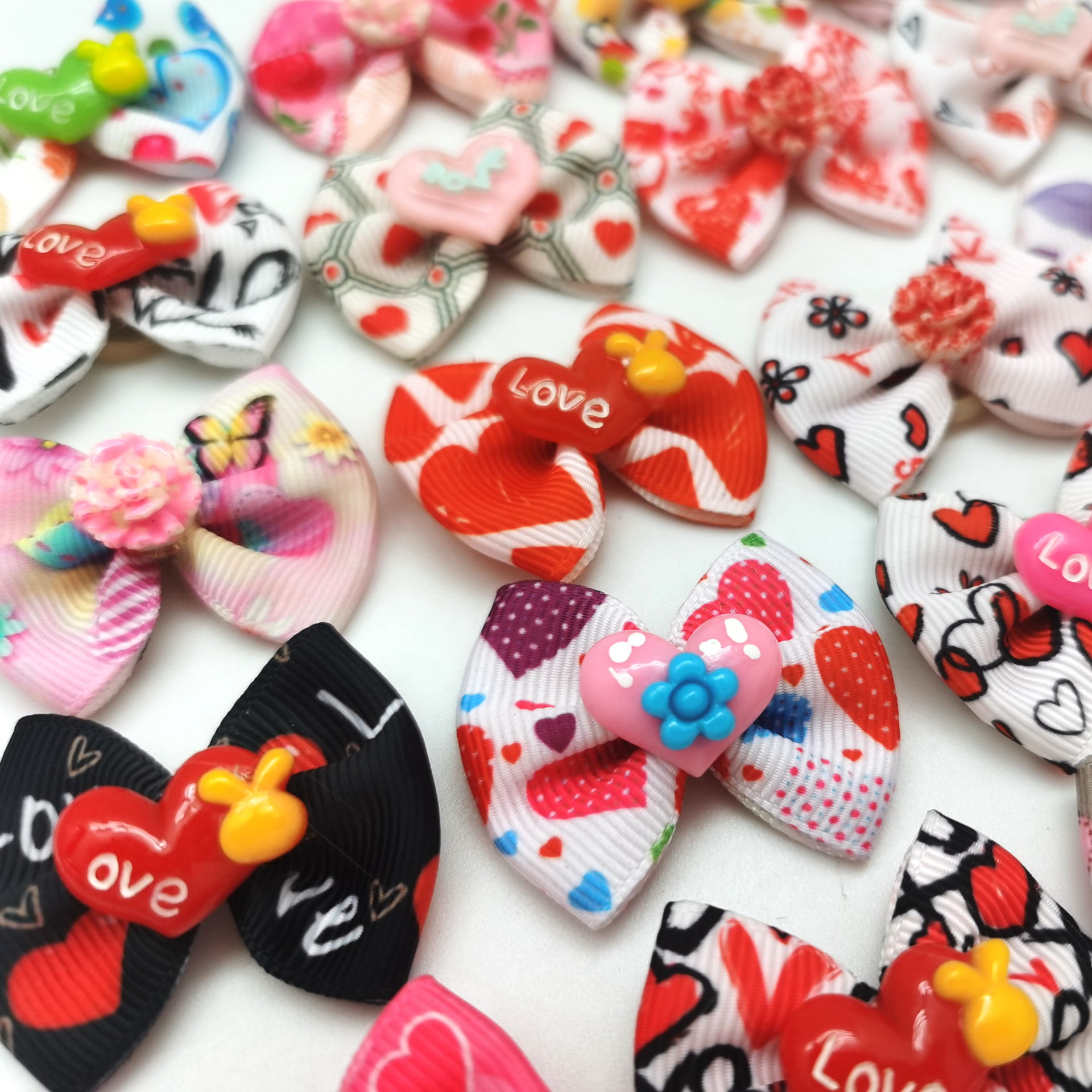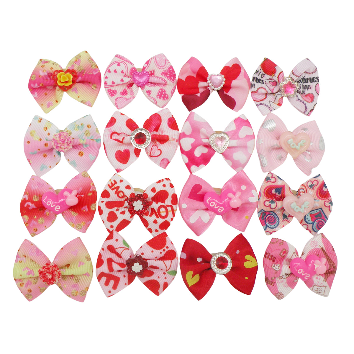 Заколка для волос в виде мальтийского плюшевого медвежонка на День святого Валентина, головной убор для питомца, заколка для волос, головной убор для питомца, вьющаяся голова с цветком, стиль персикового сердца