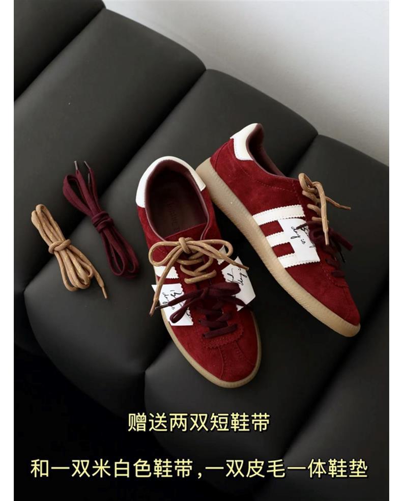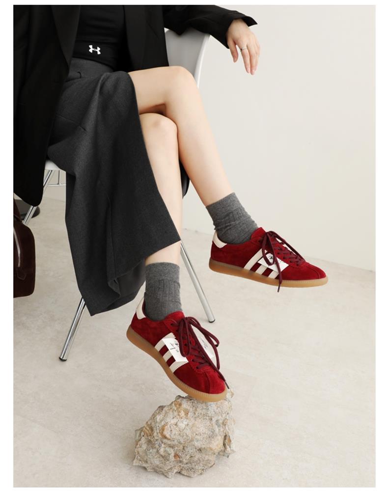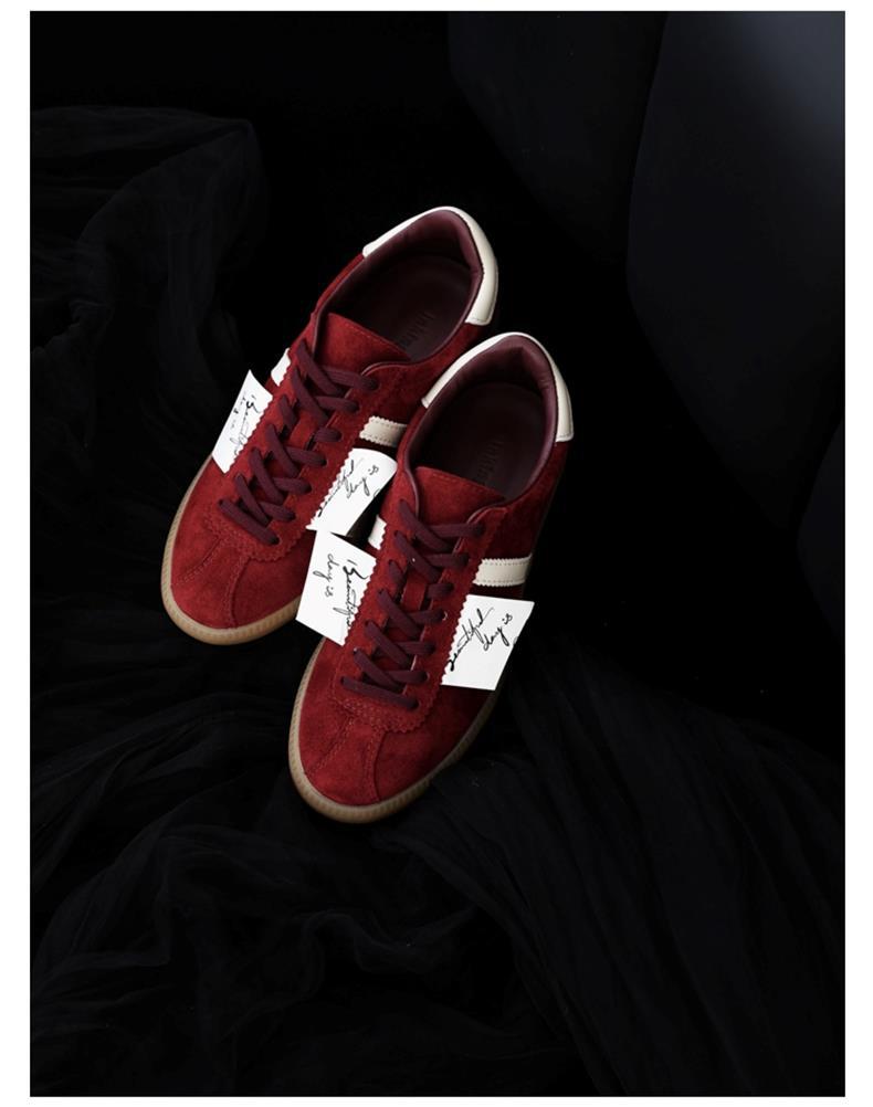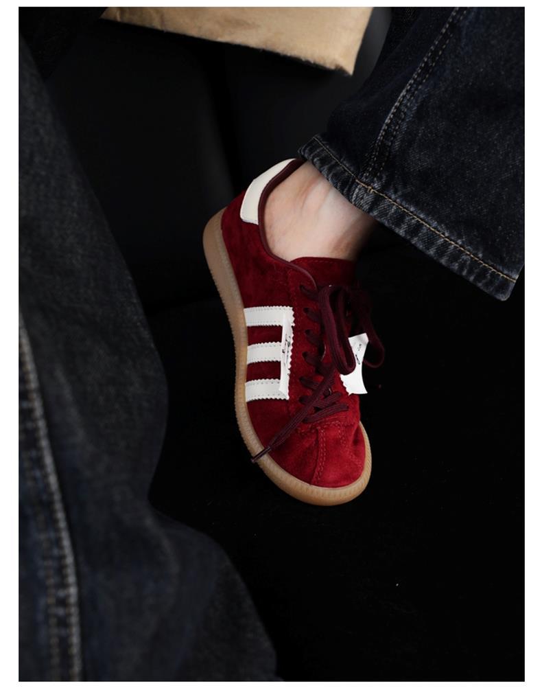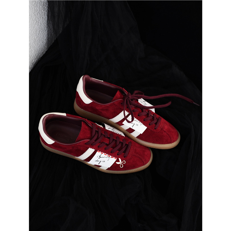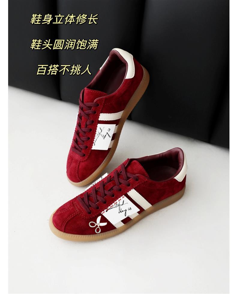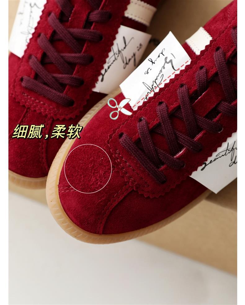 2025 новая модель разработки оптом бархатные красные моральные тренировочные туфли удобные плоские повседневные туфли замшевые кроссовки из овчины