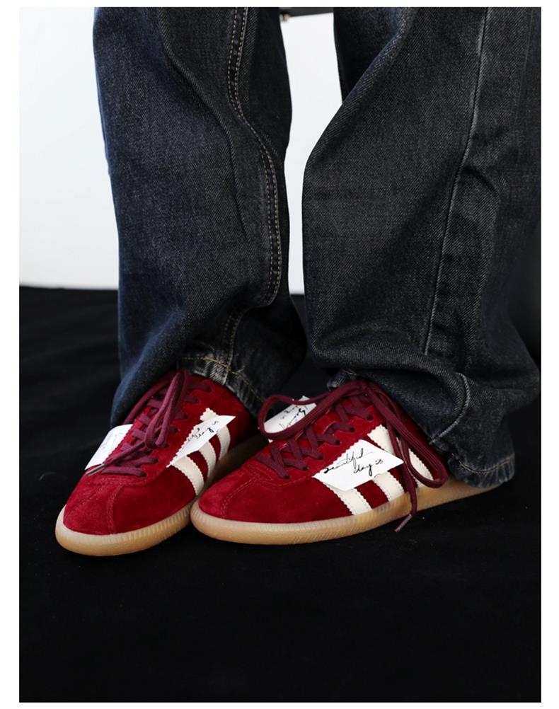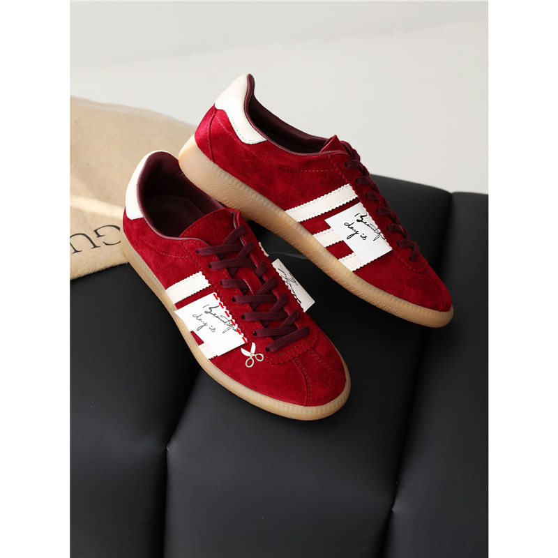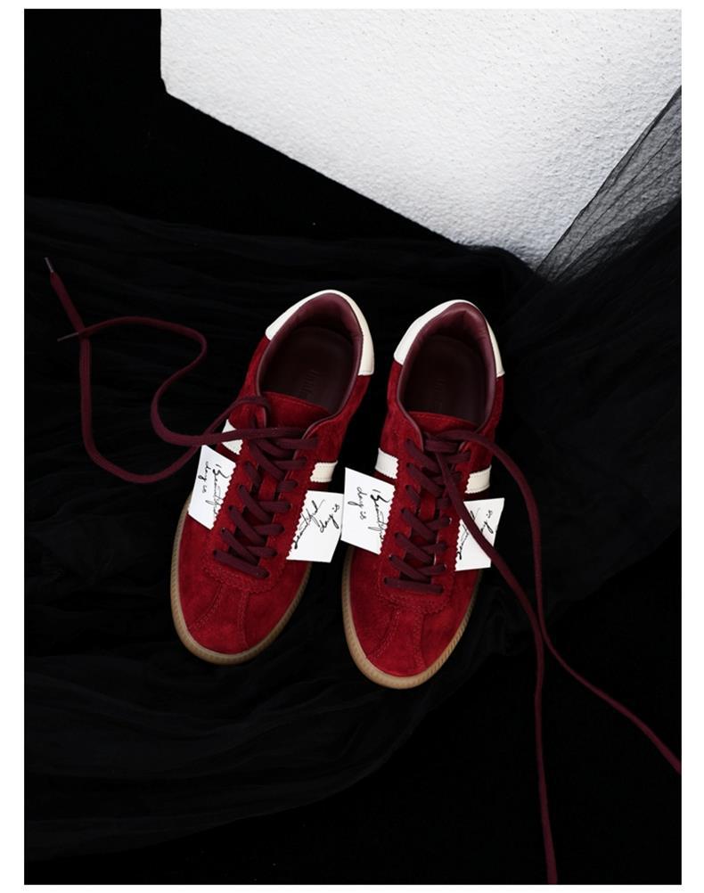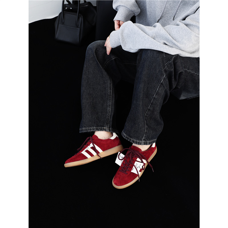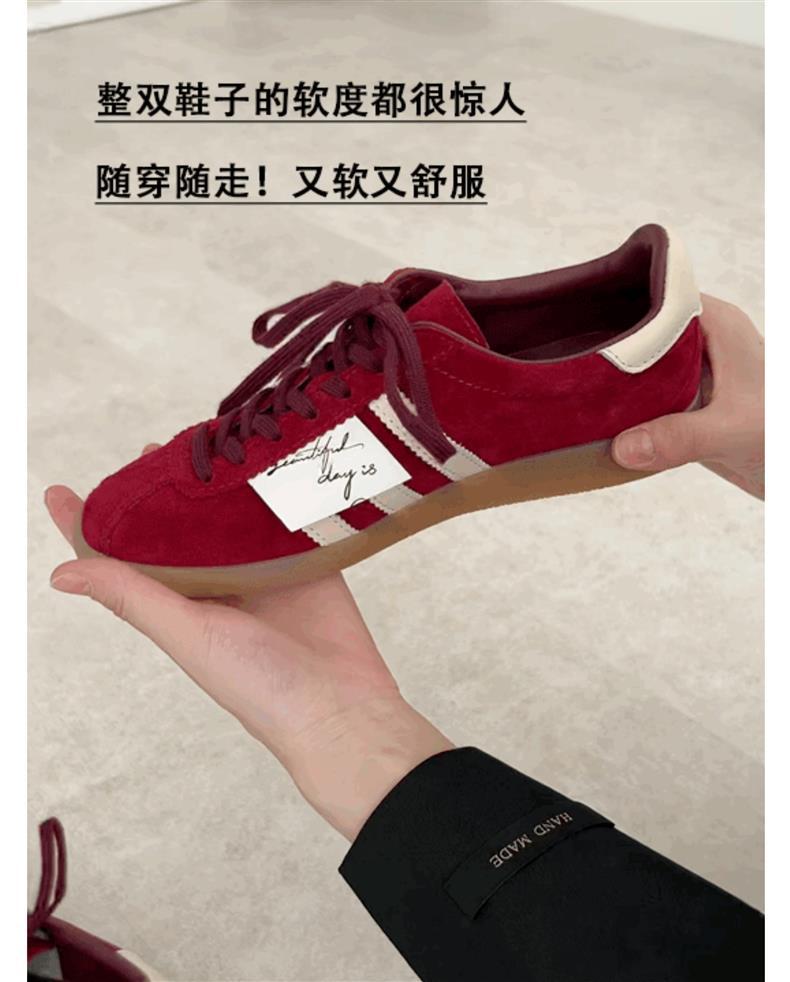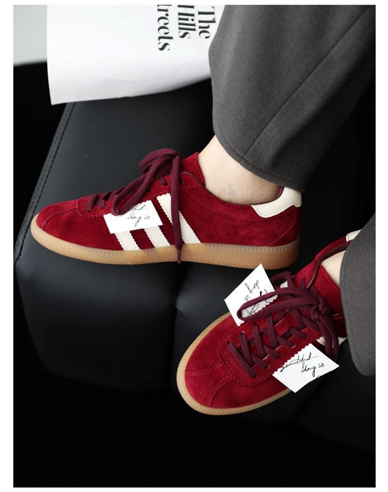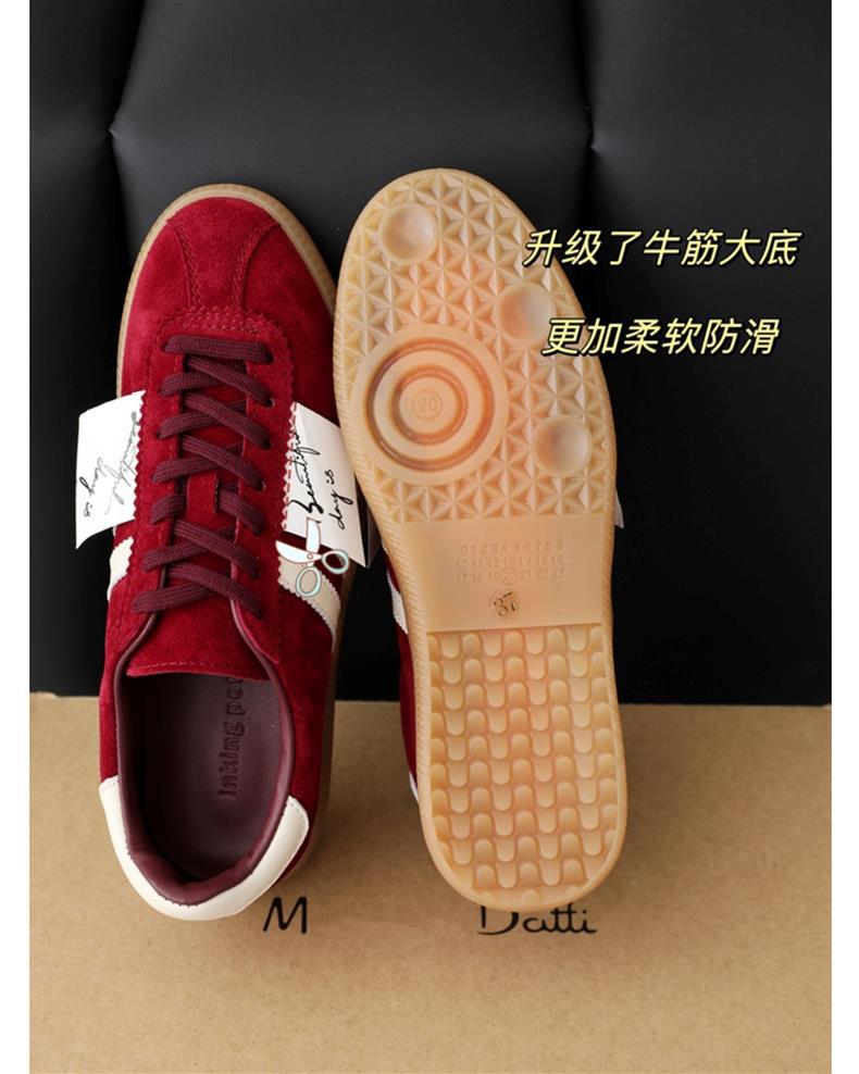 2025 новая модель разработки оптом бархатные красные моральные тренировочные туфли удобные плоские повседневные туфли замшевые кроссовки из овчины