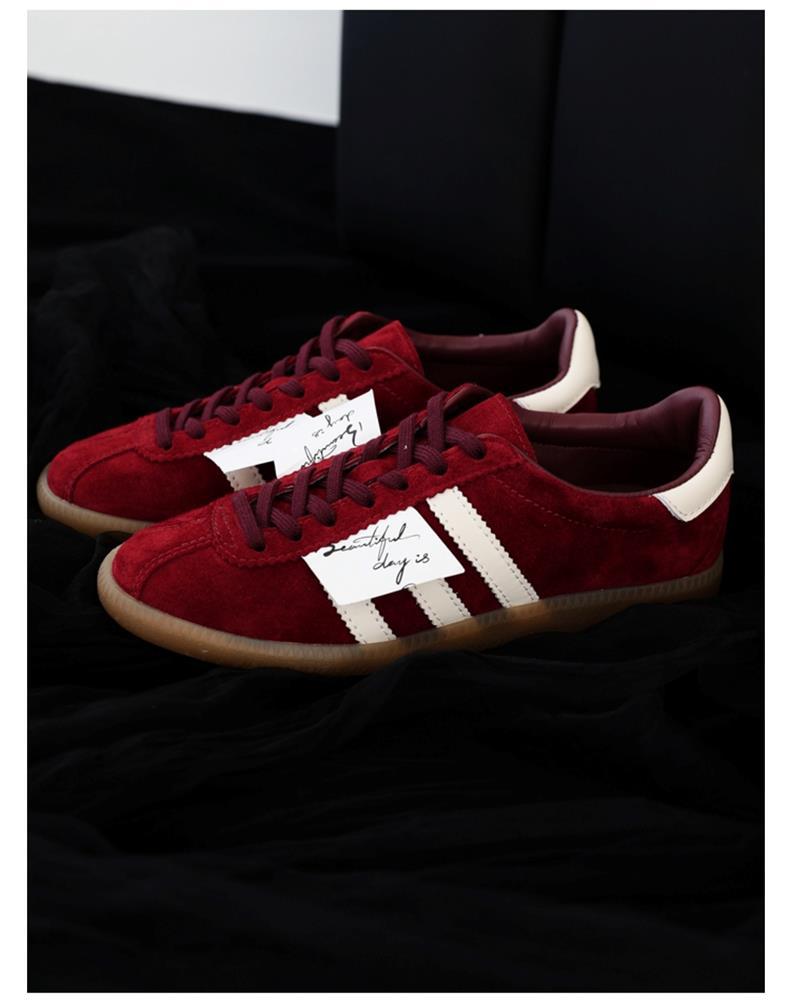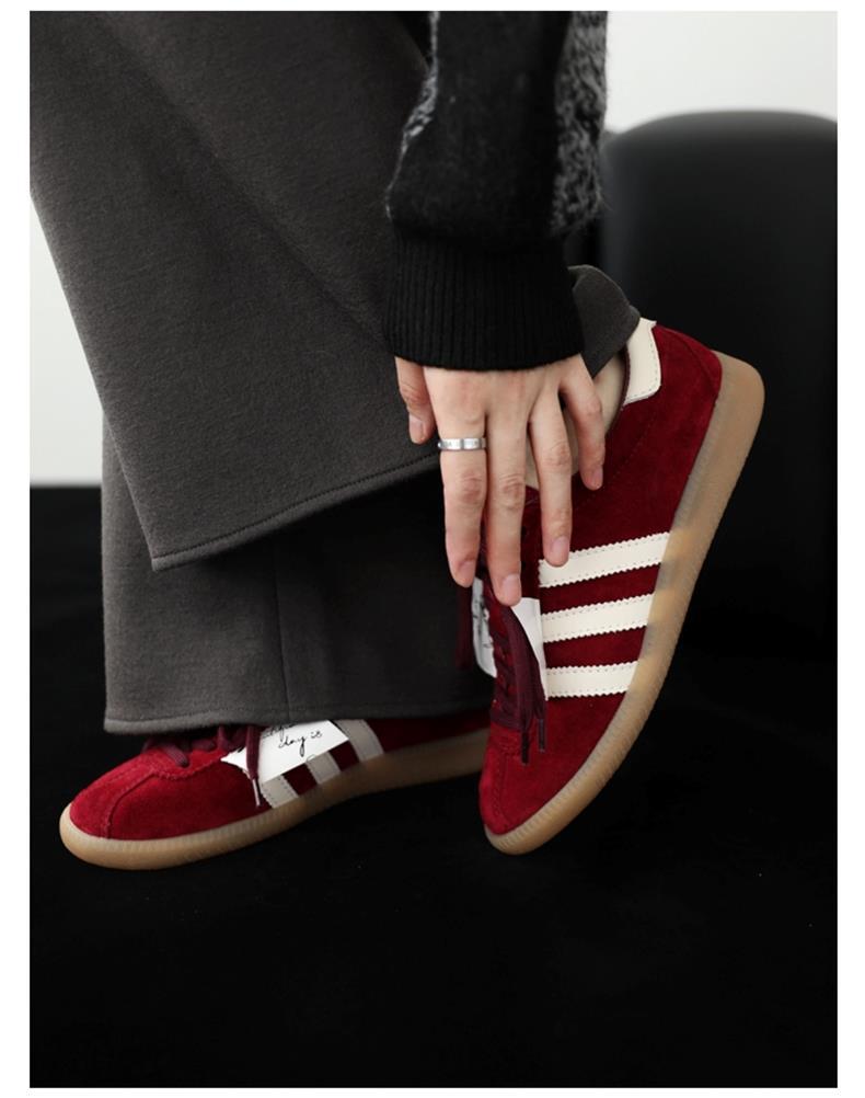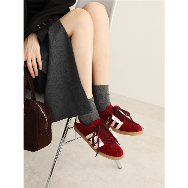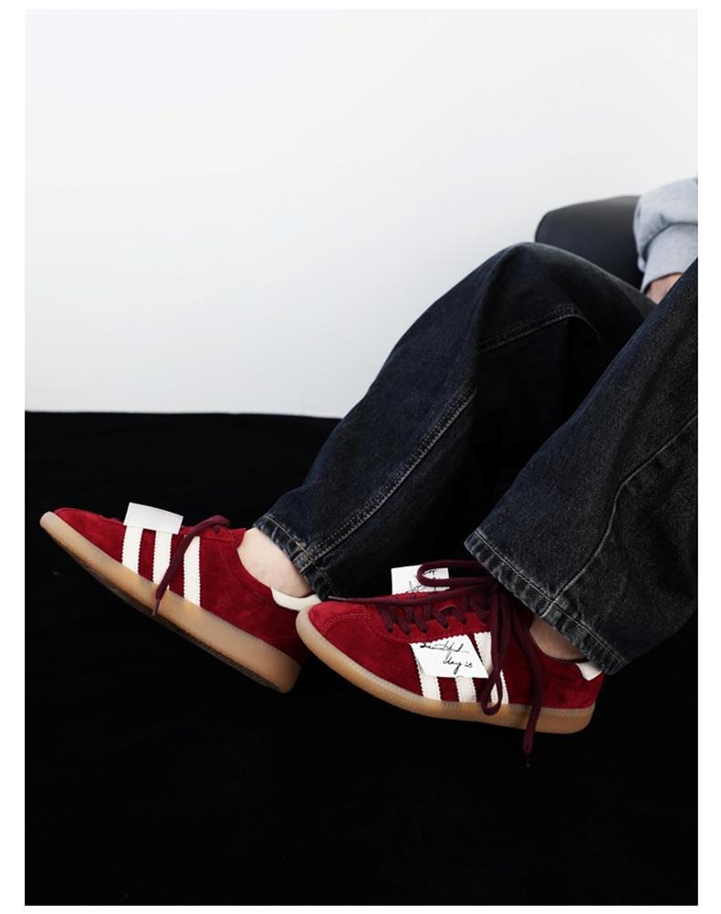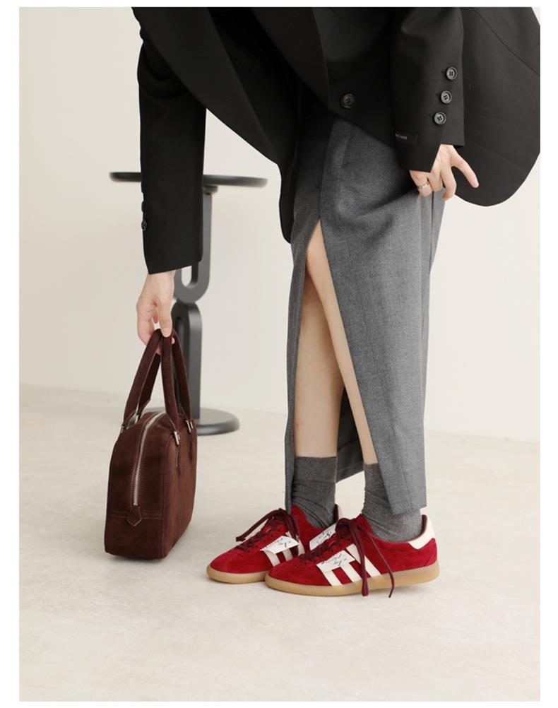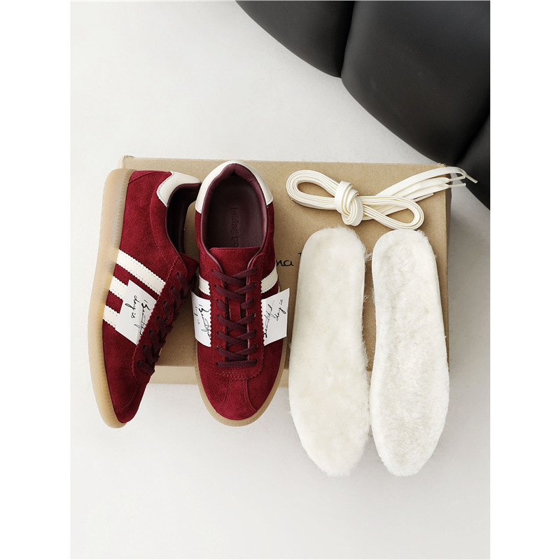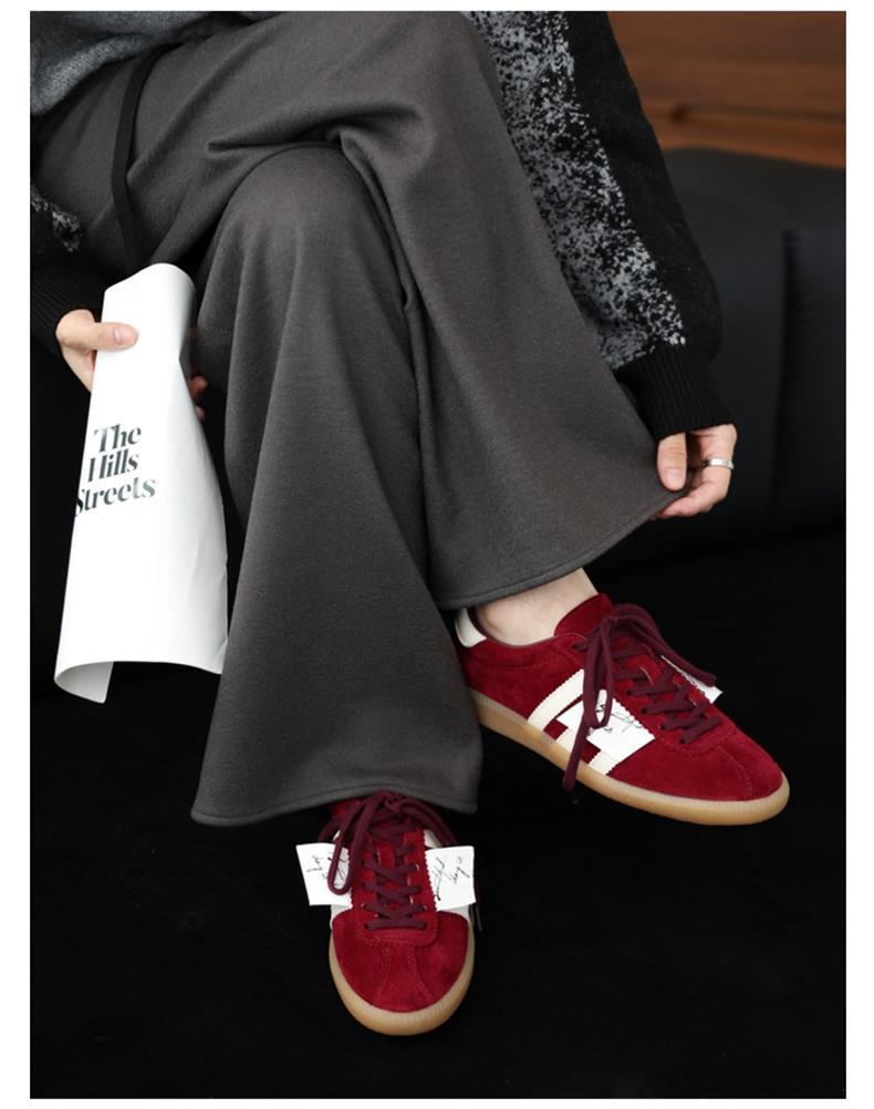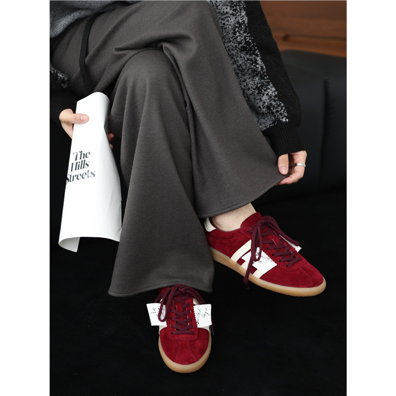 2025 новая модель разработки оптом бархатные красные моральные тренировочные туфли удобные плоские повседневные туфли замшевые кроссовки из овчины