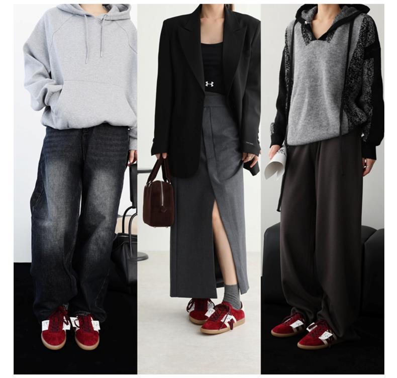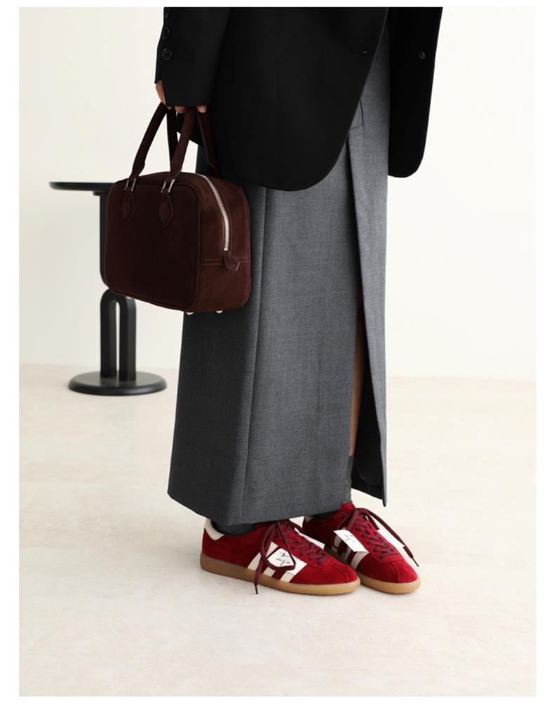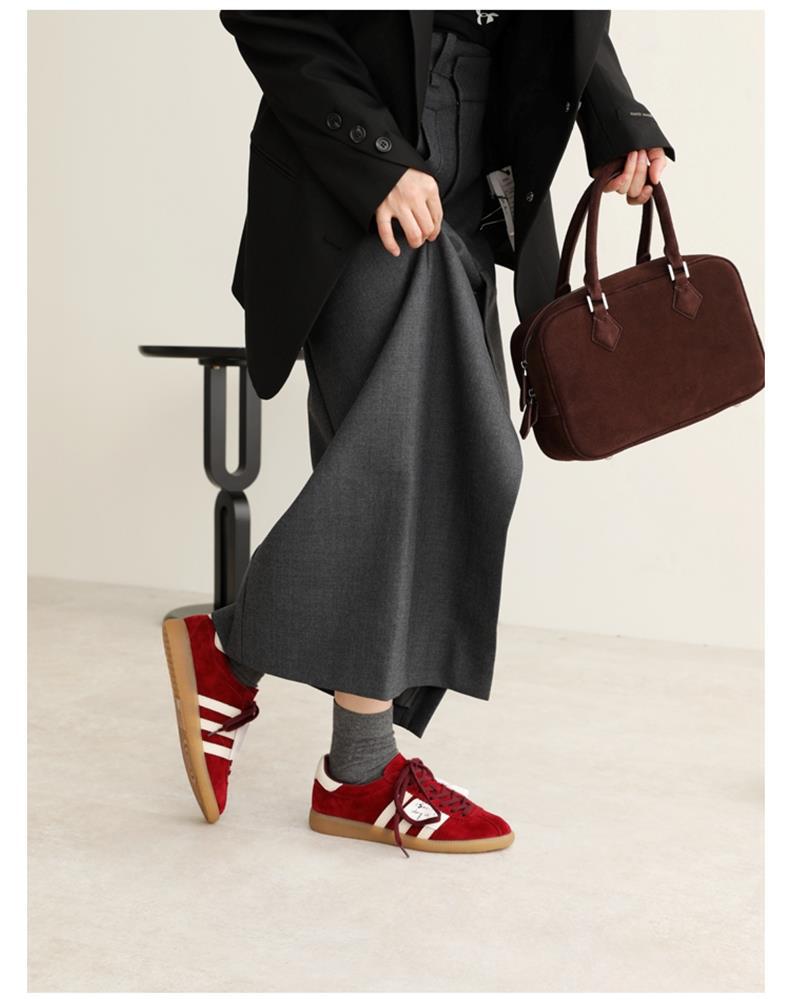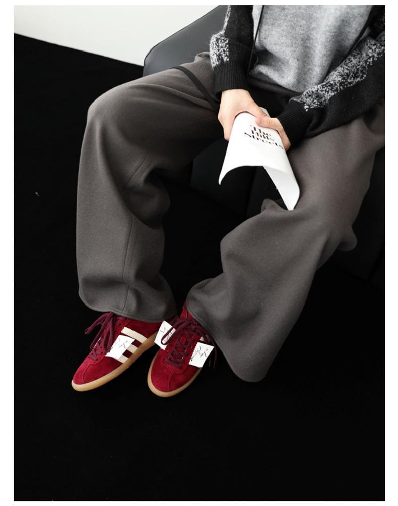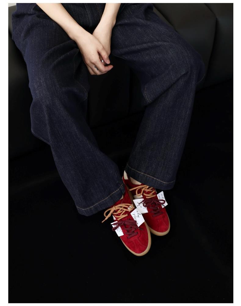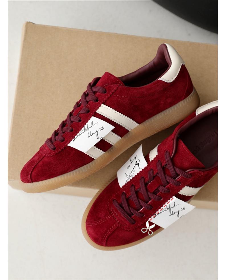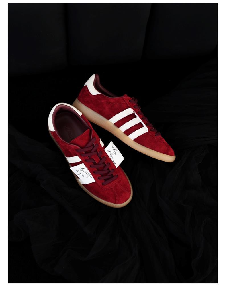 2025 новая модель разработки оптом бархатные красные моральные тренировочные туфли удобные плоские повседневные туфли замшевые кроссовки из овчины