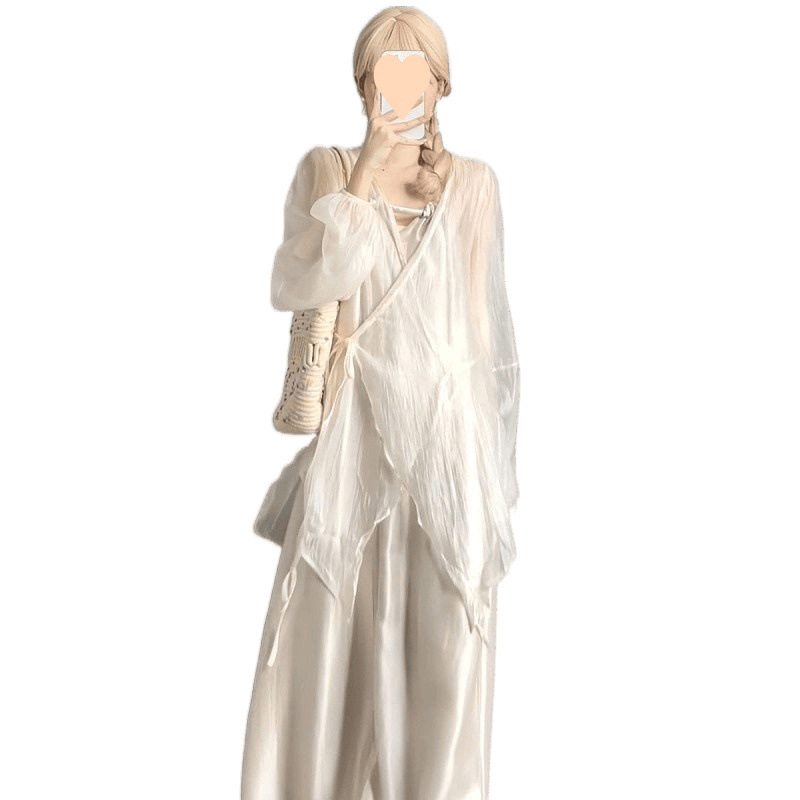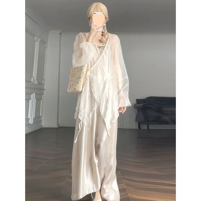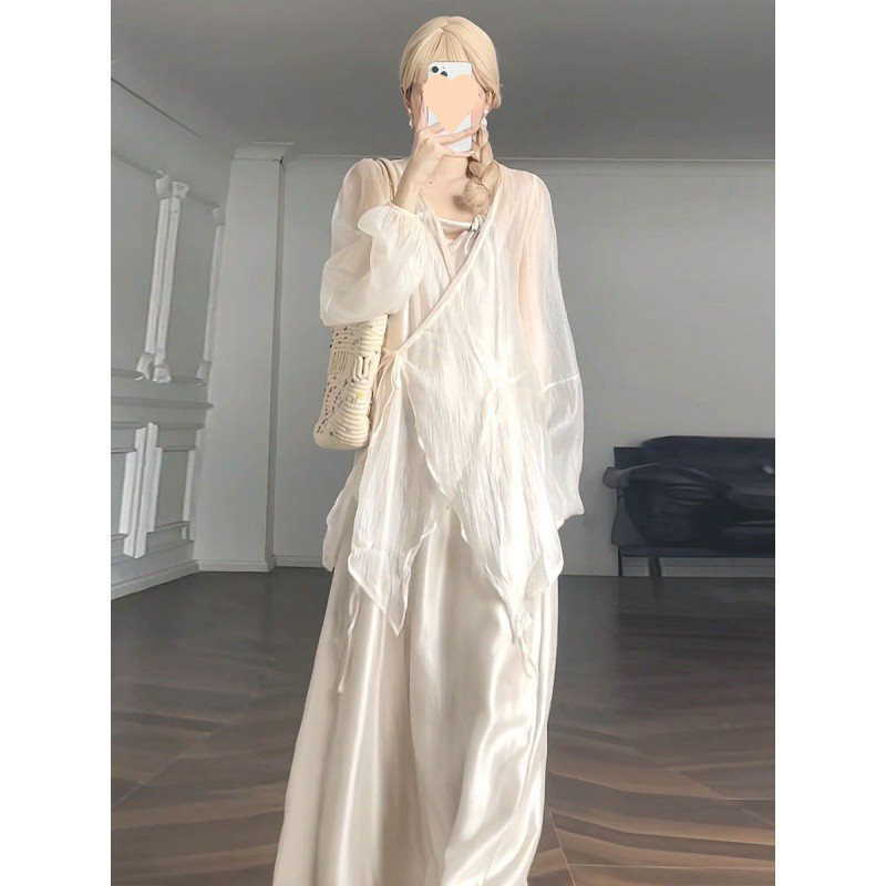 Южнокорейский Dongdaemun 2025, новый летний стиль, однотонный, свободный, утягивающий, с длинными рукавами, тонкая, слегка прозрачная солнцезащитная рубашка, топы для женщин