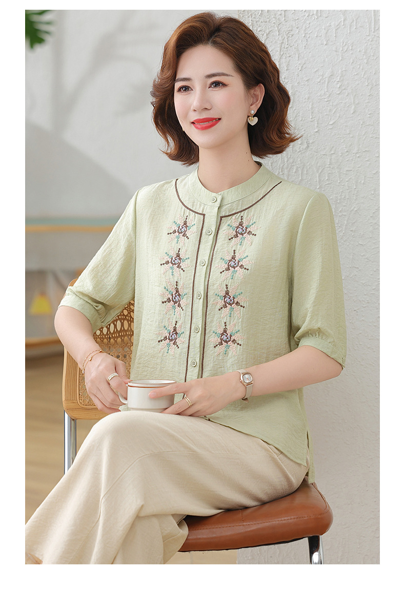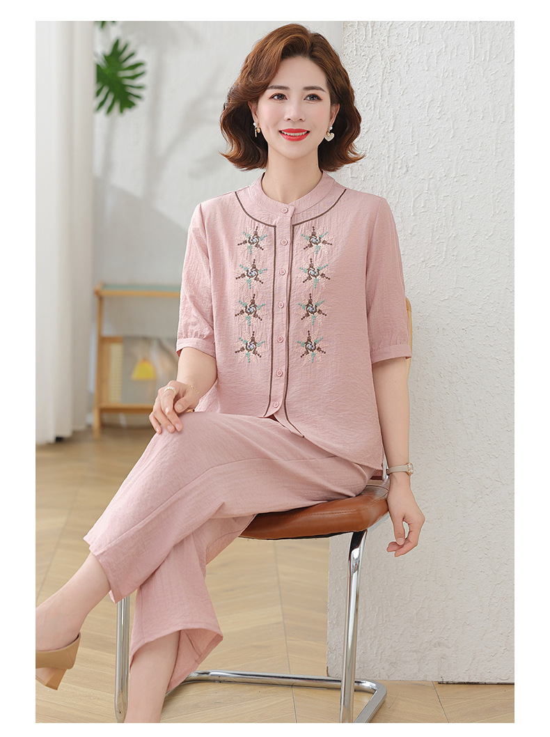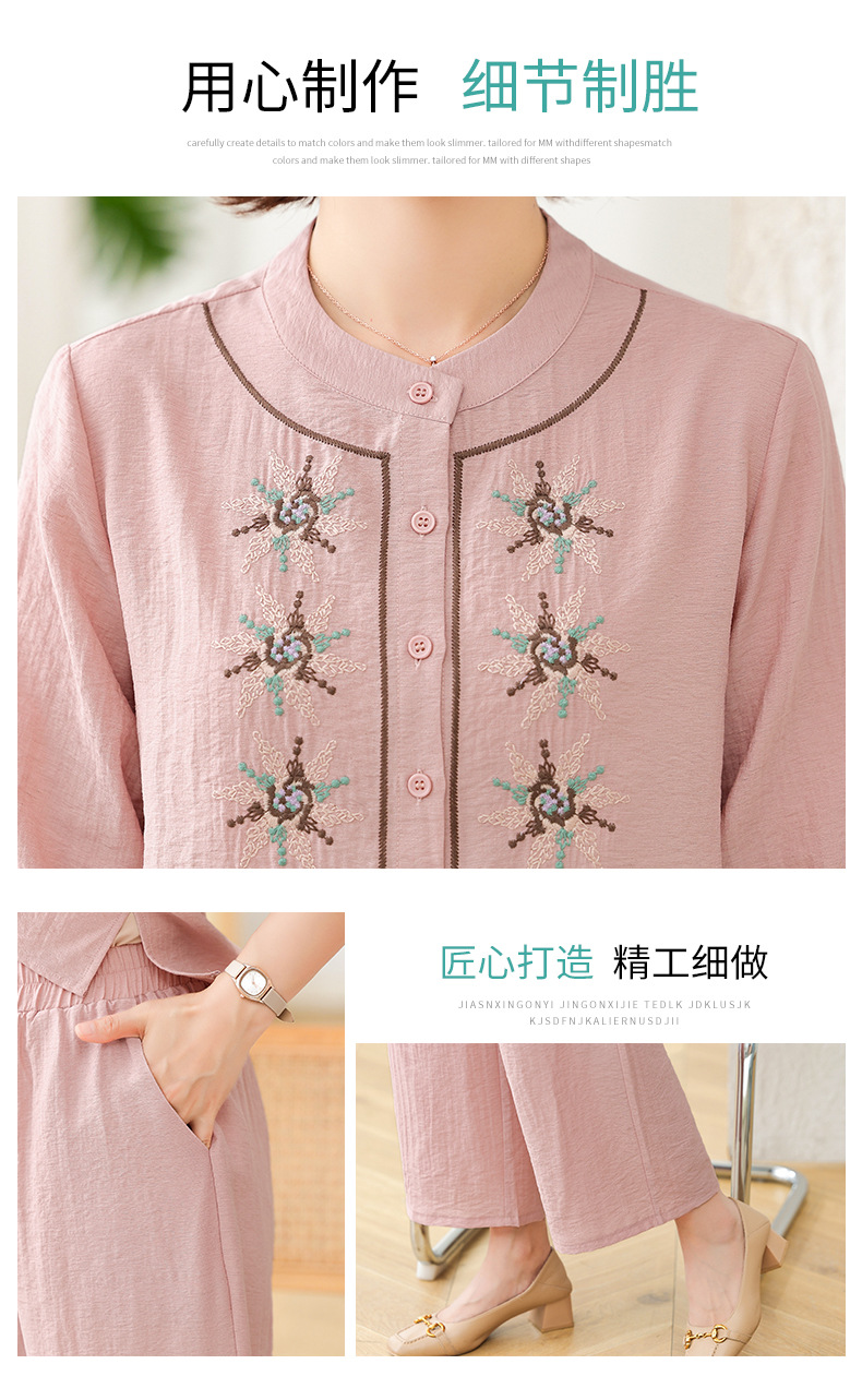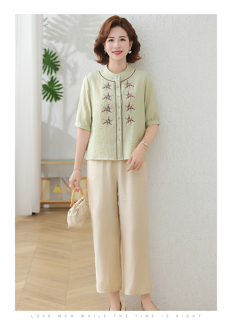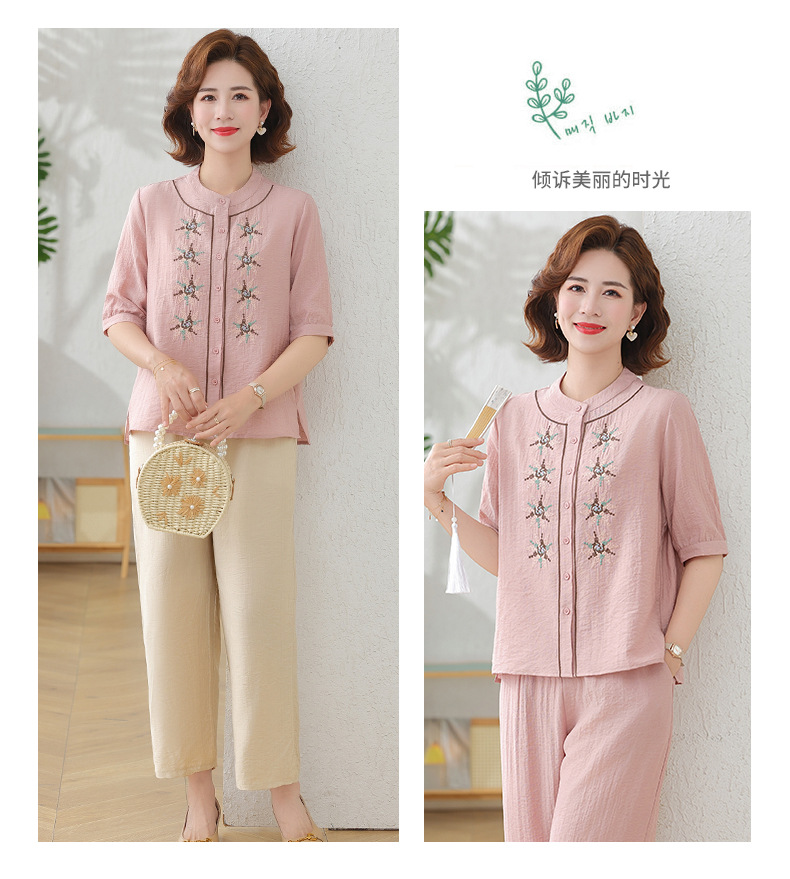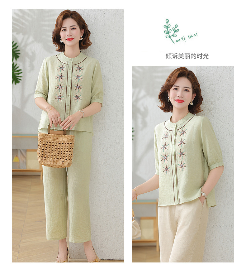Новый летний комплект из двух предметов для мамы для людей среднего и пожилого возраста, широкие брюки, маленькие рубашки, модный повседневный облегающий костюм.