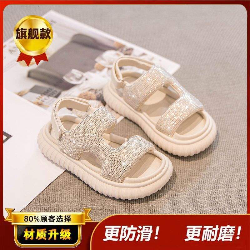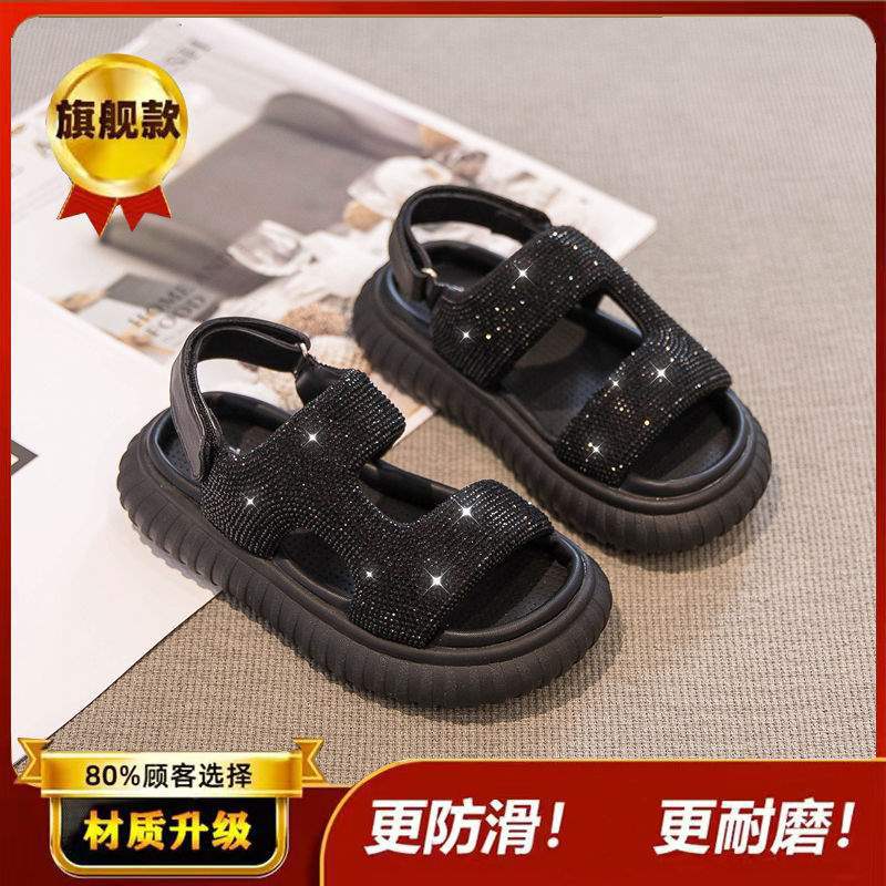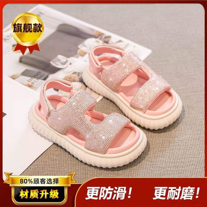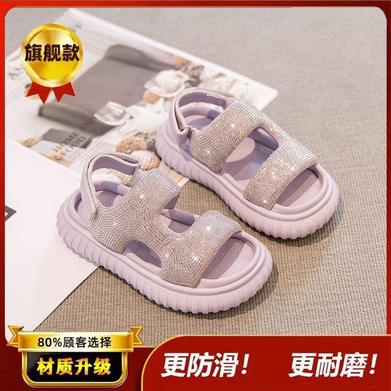 Спортивные сандалии для девочек со стразами, лето 2025, детская обувь среднего и большого размера на мягкой подошве, детская модная обувь принцессы для маленьких девочек