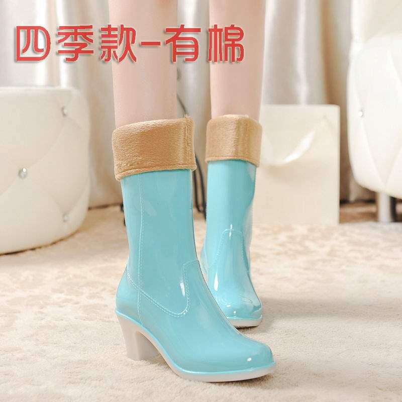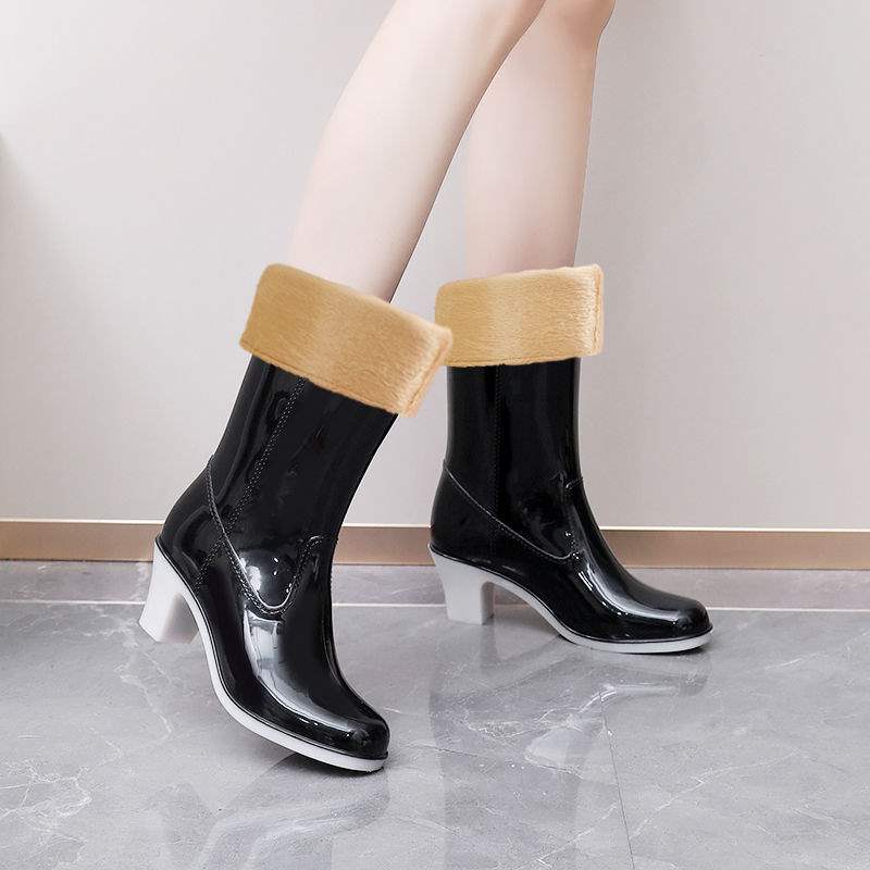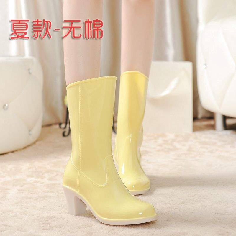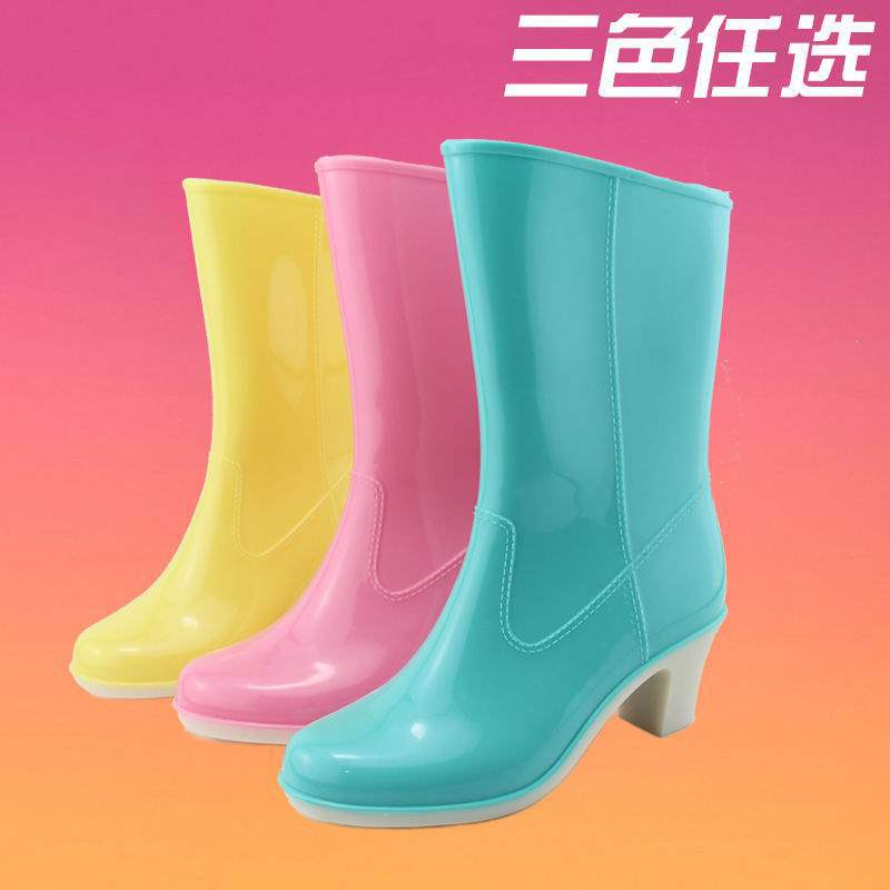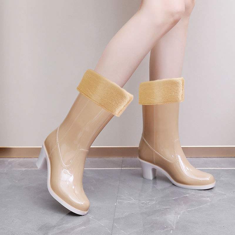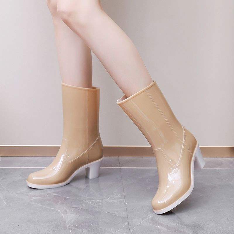 Дождевые сапоги на высоком каблуке до середины икры, дождевые сапоги для взрослых, модные бахилы в корейском стиле, водонепроницаемая женская всесезонная нескользящая обувь для воды, износостойкая резиновая обувь.