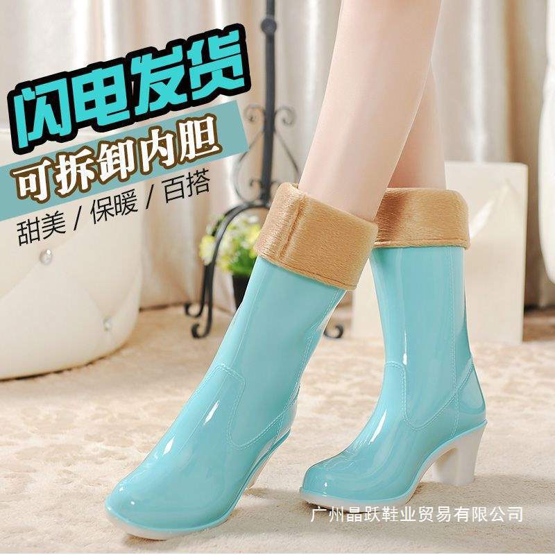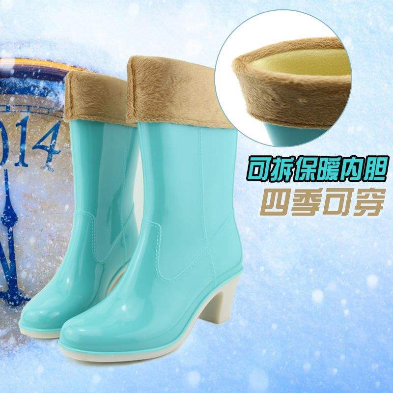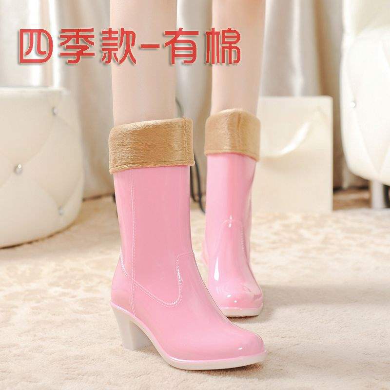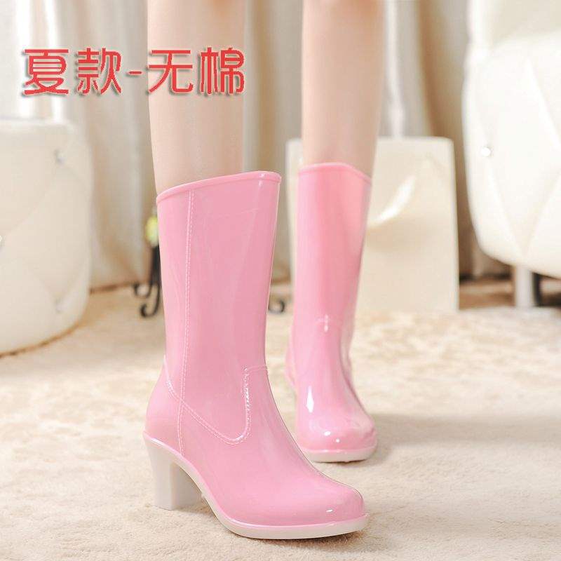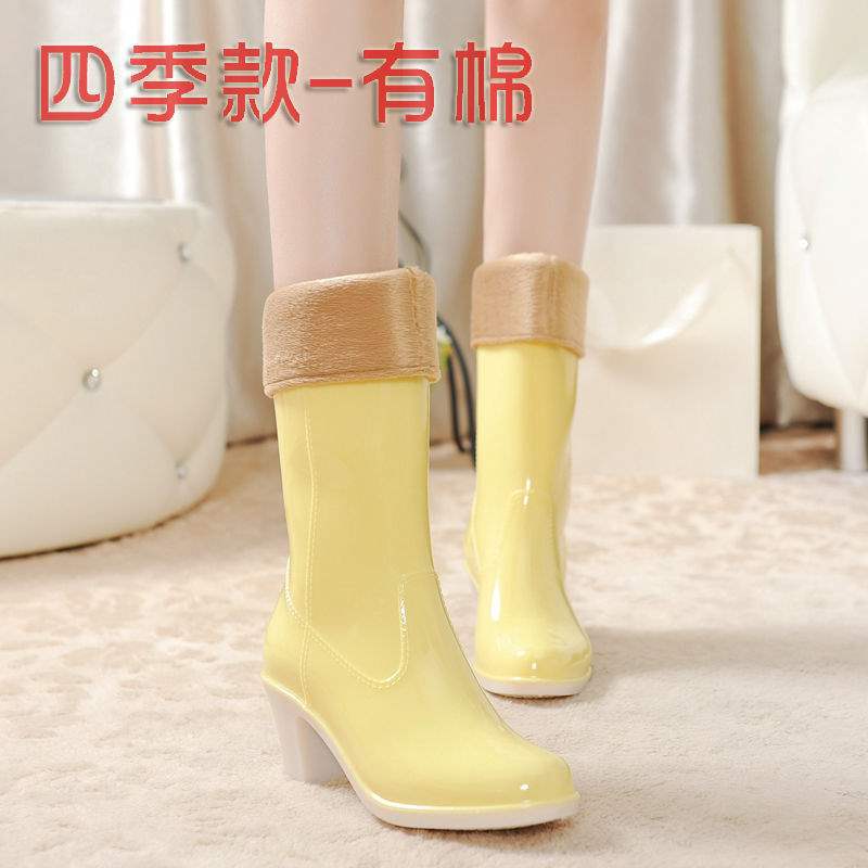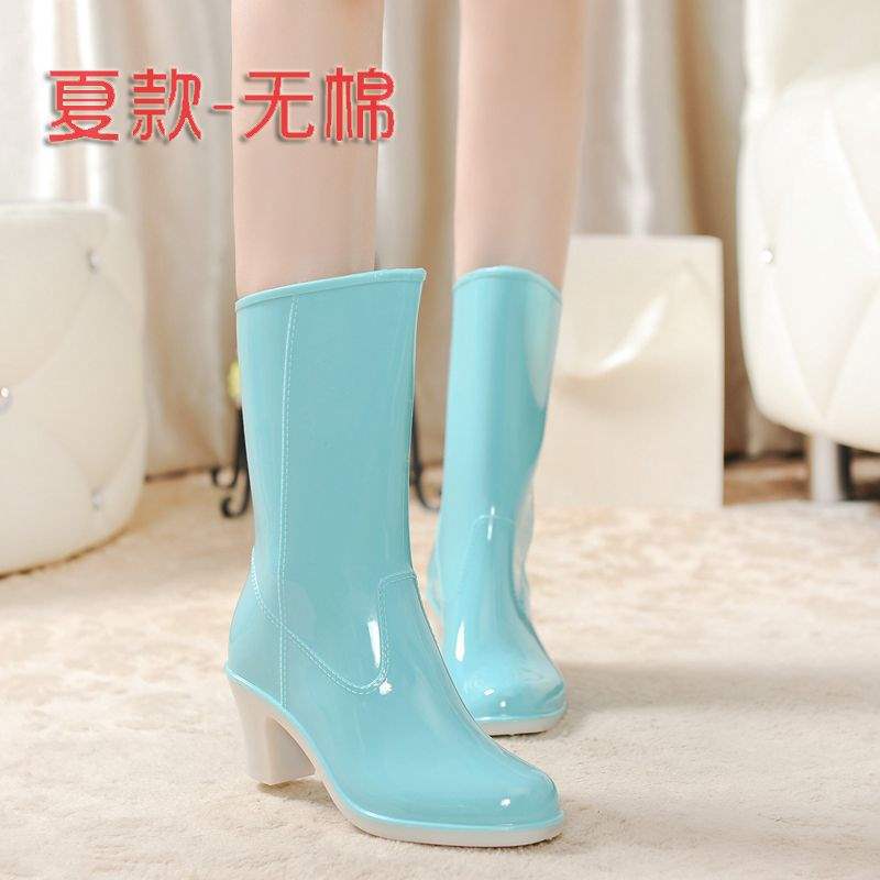 Дождевые сапоги на высоком каблуке до середины икры, дождевые сапоги для взрослых, модные бахилы в корейском стиле, водонепроницаемая женская всесезонная нескользящая обувь для воды, износостойкая резиновая обувь.
