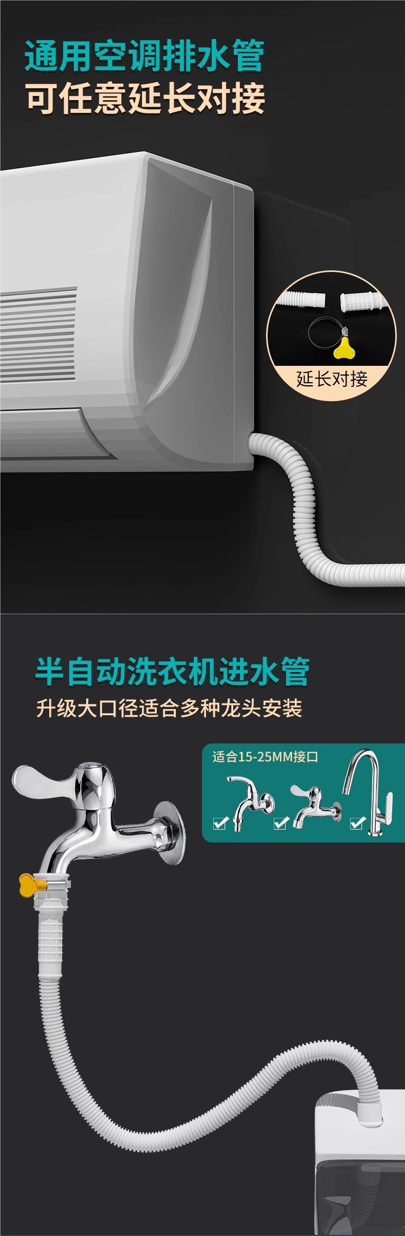 Удлинительный шланг водопроводной трубы для подключения водопроводной воды, удлиненная пластиковая труба для дренажа, соединитель выпускной трубы крана.