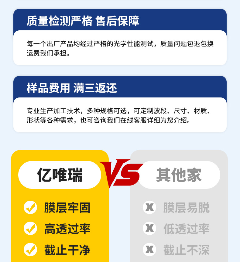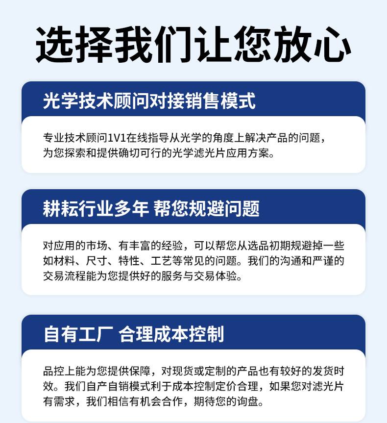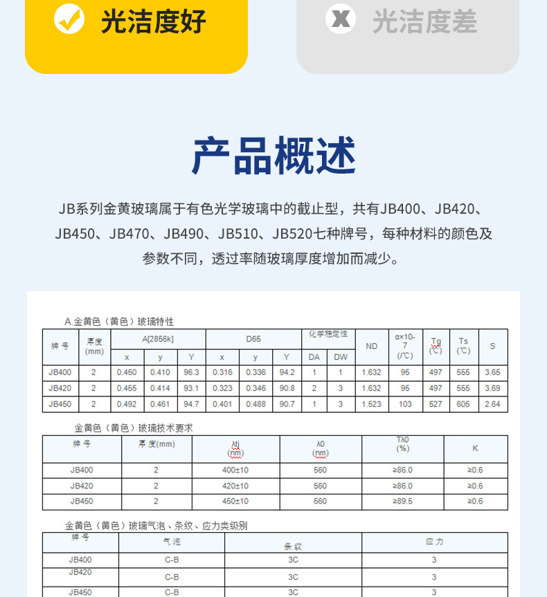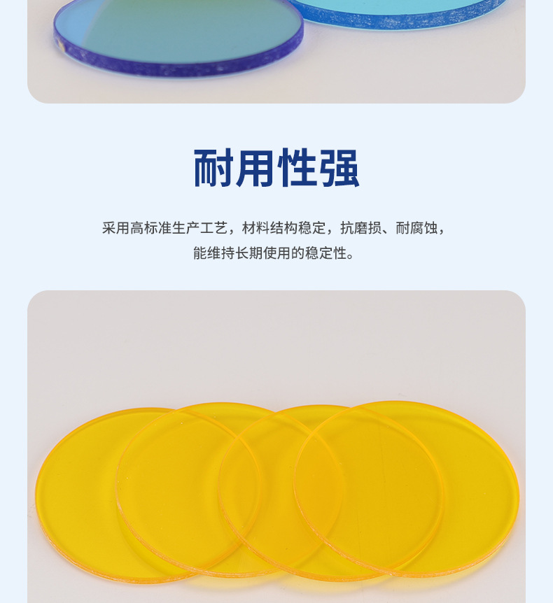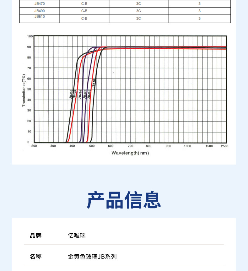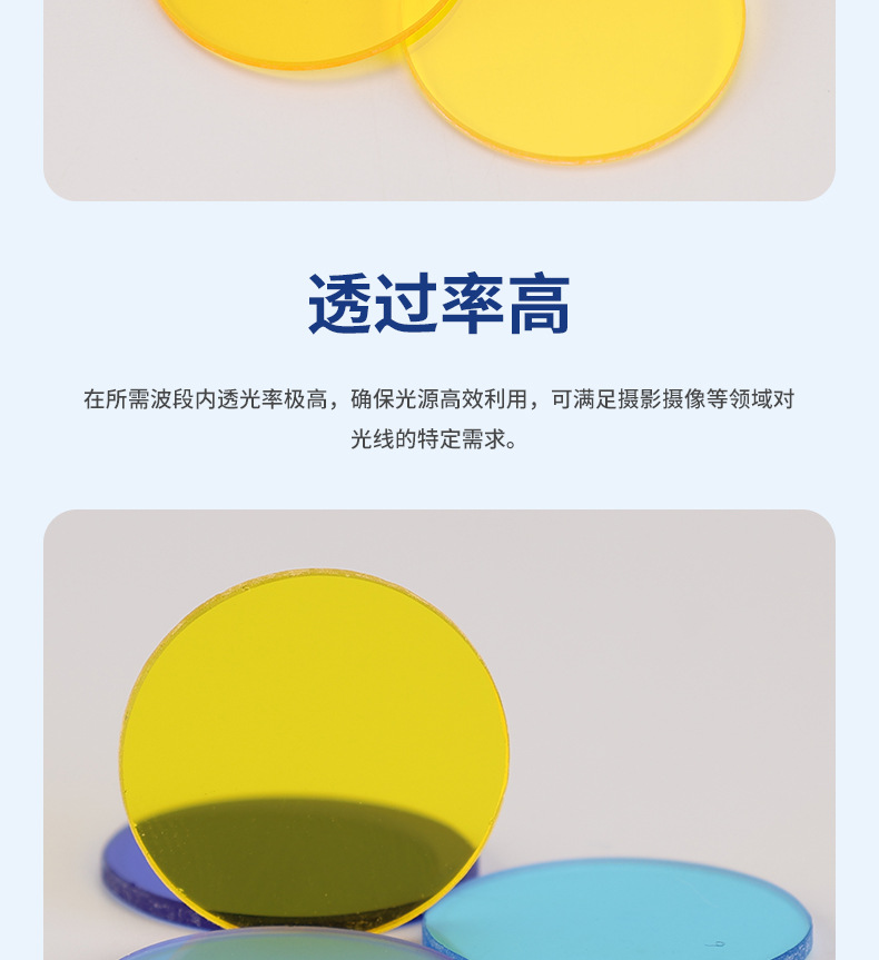 Производитель поставляет золотисто-желтые стеклянные оптические линзы JB490, цветные фильтры, цветные фильтры с функцией отсечки света и трансмиссивные фильтры.
