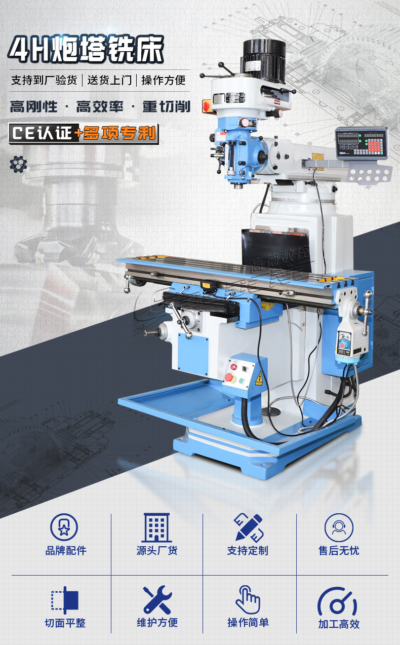 【В наличии, быстрая отправка】Многофункциональный фрезерный станок с цифровым дисплеем 4H – Промышленный фрезерный станок повышенной мощности для использования на предприятиях и экспорта