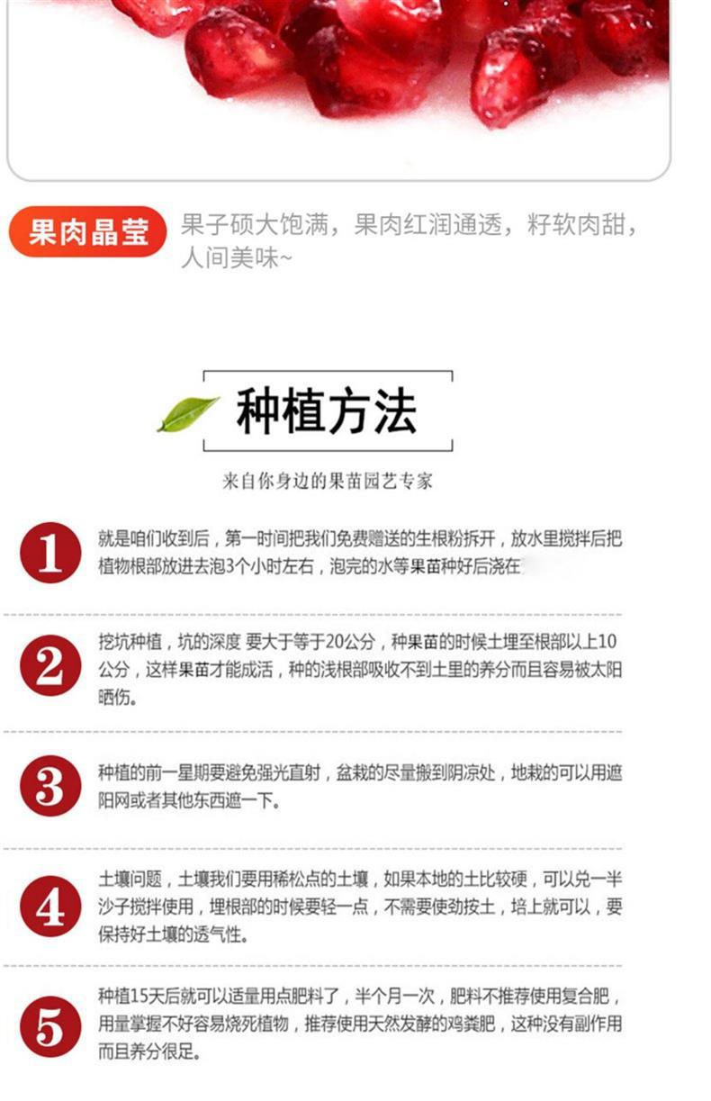 Рекомендуем рассаду 5-летнего возраста [Оставьте сообщение для сорта] Компенсация за мертвую рассаду с почвой и ветками в комплекте; [Популярно] Тунисский мягкоочковый гранат [5-летние саженцы дадут плоды в том же году] Мертвые саженцы будут компенсированы; Гранат Дахунпао [5-летние саженцы будут плодоносить в том же году] Мертвые саженцы будут компенсированы; Красный Руи Гранат [5-летние саженцы дадут плоды в том же году] Мертвые саженцы будут компенсированы; Умышленный гранат [5-летние саженцы дадут плоды в тот же год] Мертвые саженцы будут компенсированы; Без씨дный кристаллический гранат [5-летние саженцы дадут плоды в тот же год] Мертвые саженцы будут компенсированы; Красный гранат Мэньян [5-летние саженцы дадут плоды в том же году] Мертвые саженцы будут компенсированы; Вековой красный гранат [5-летние саженцы дадут плоды в том же году] Мертвые саженцы будут компенсированы; Гранат Heyin [5-летние саженцы дадут плоды в том же году] Мертвые саженцы будут компенсированы; Красный гранат Тайшань [5-летние саженцы дадут плоды в том же году] Мертвые саженцы будут компенсированы; Гранат Линьтун [5-летние саженцы будут плодоносить в тот же год] Мертвые саженцы будут компенсированы; Большой зеленоглавый гранат [5-летние саженцы дадут плоды в тот же год] Мертвые саженцы будут компенсированы; 4-летние саженцы упакованы по 2 шт. [Сообщение о сорте] Гарантия мертвых саженцев; 6-летние саженцы с множеством вилок и полными результатами [Сообщение о сорте] Мертвые саженцы гарантированно будут компенсированы.; 7-летние саженцы с множеством вилок и полными результатами [Сообщение о сорте] Мертвые саженцы гарантированно будут компенсированы.; 8-летние саженцы красивой формы и полного результата [Сообщение о сорте] Мертвые саженцы гарантированно будут компенсированы.; 10-летняя качественная рассада даст большие результаты [Сообщение о сорте] Мертвые саженцы будут компенсированы; Рекомендуемый посадка 12-летних саженцев в саду [плодотворный результат] Мертвые саженцы гарантированно будут компенсированы; 15-летняя рассадная вилла [Сбор садовой рассады] Владелец рекомендует компенсацию за мертвую рассаду
