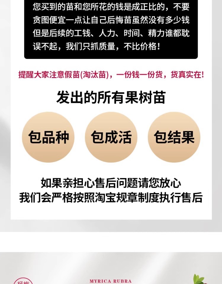 Dongkui bayberry высотой 25-35 см, 1 дерево (результаты доставлены из исходного почва в том же году); Dongkui bayberry высотой 35-60 см, 1 дерево (первоначальные результаты доставки почвы полны); Саженцы Dongkui bayberry 60см-80см (от выживания до результатов); Черный угольный бейберри высотой 25-35 см, 1 дерево (результаты доставлены из исходного грунта в том же году); Черный древесный бейберри высотой 35-60 см, 1 дерево (первоначальные результаты доставки почвы полны); Саженцы черной древесноугольной ягоды 60см-80см.; Один июньский ягодник высотой 25-35 см (поставлен из первоначального грунта и будет плодоносить в тот же год); Береск июньский высотой 35-60см 1 дерево (результаты выращивания из родного грунта полные); Шتلки June Bayberry 60см-80см.; Янчжоуская байберри высотой 25-35 см 1 дерево (поставлено из первоначального грунта и будет плодоносить в тот же год); Zhejiang bayberry высотой 35-60 см, 1 дерево (исходные результаты доставки почвы полны); Саженцы ягоды бэйберри Чжэцзян 60см-80см; 1 высококачественный карлик Dongkui bayberry 60-80 см (посадите один, и вся семья его съест); Премиум карлик черный угольный бейберри 60см-80см 1 дерево (посадите одно дерево и его сможет съесть вся семья); Премиум карлик June bayberry 60см-80см 1 дерево (посадите одно дерево и его сможет съесть вся семья); Премиальный карлик Чжэцзян байберри 60см-80см 1 дерево (посадите одно дерево и вся семья сможет его есть)