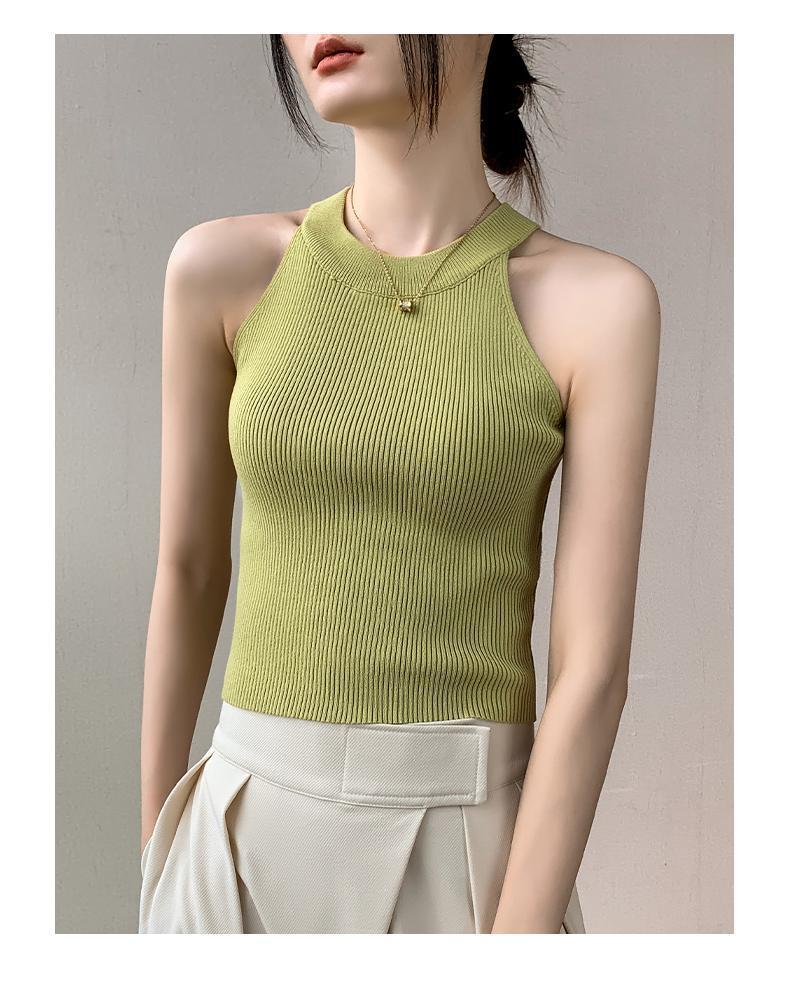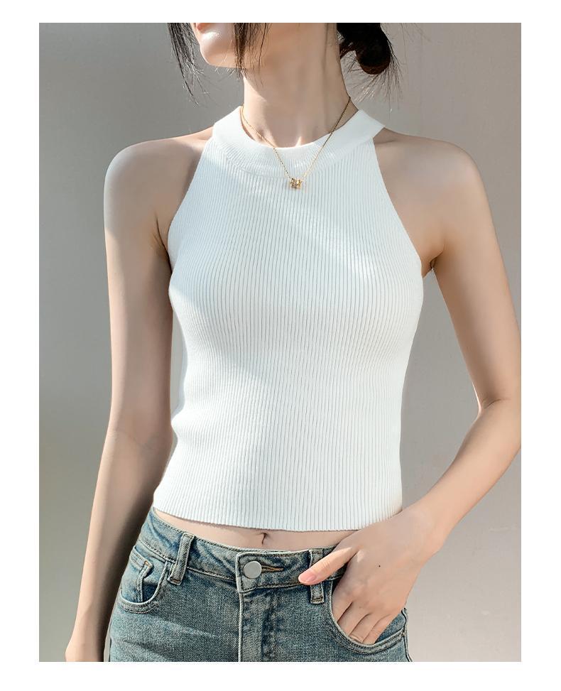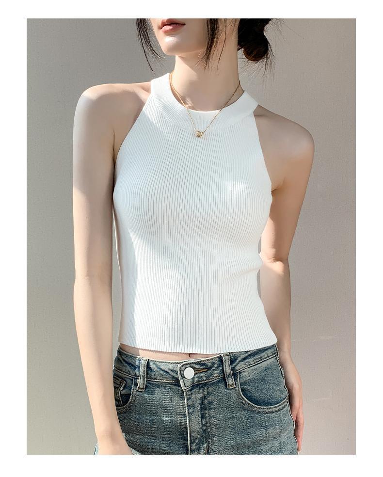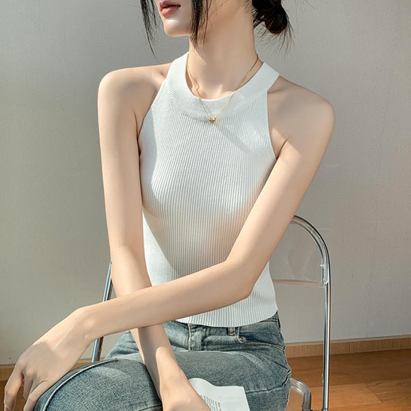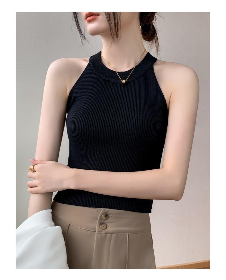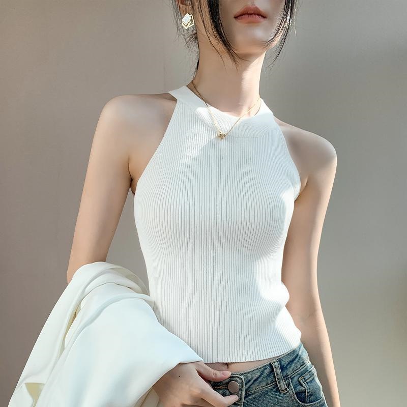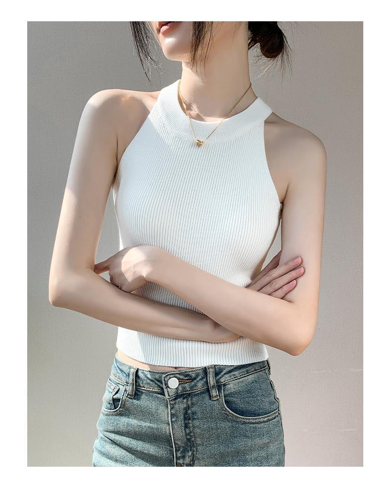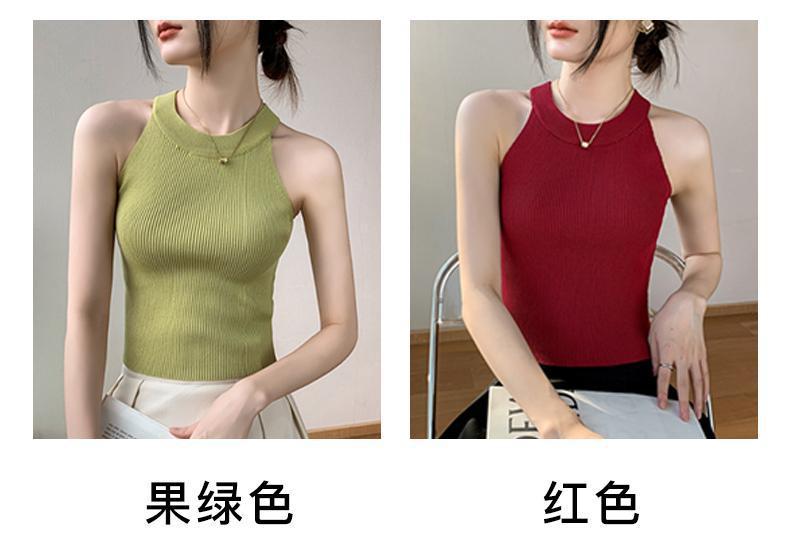 Женский топ из ледяного шелка, лето 2025, французский халтер, без рукавов, короткий, ретро, красный, трикотажный