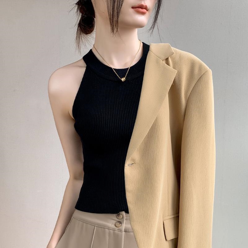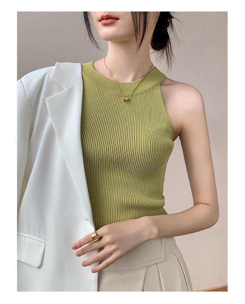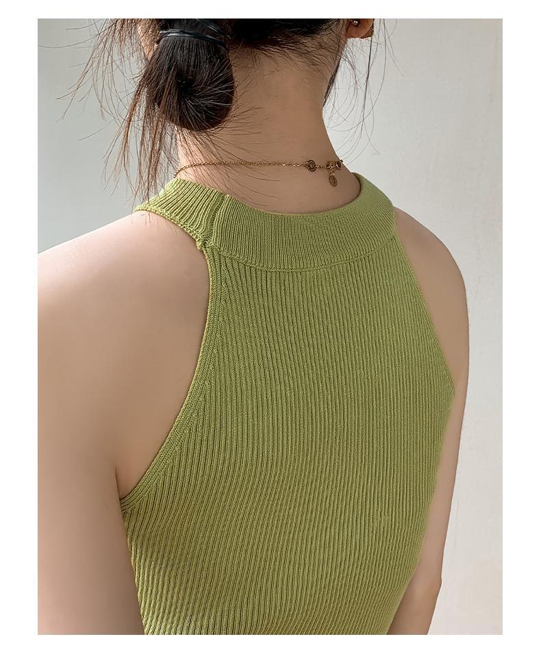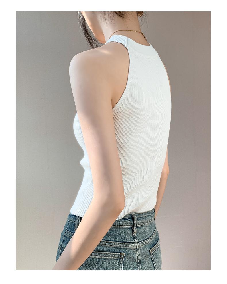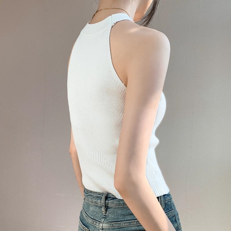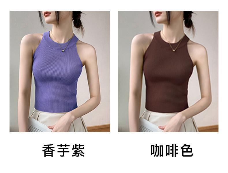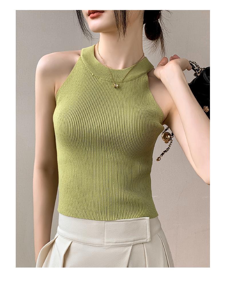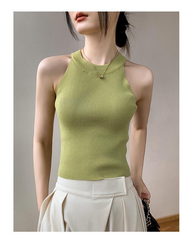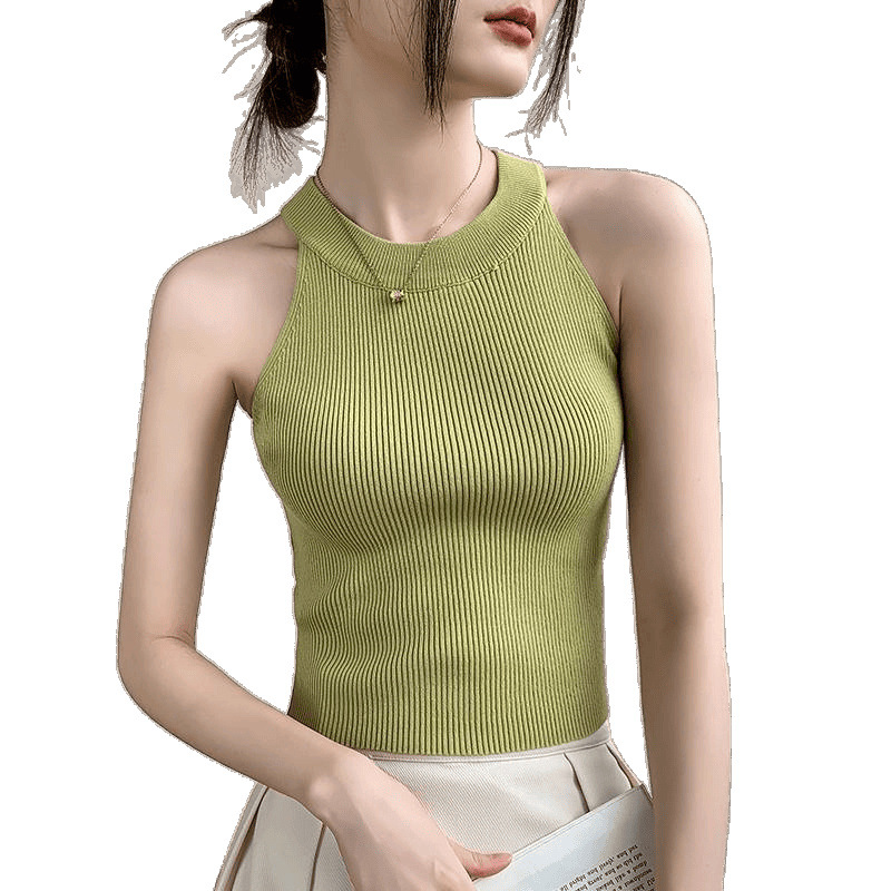 Женский топ из ледяного шелка, лето 2025, французский халтер, без рукавов, короткий, ретро, красный, трикотажный