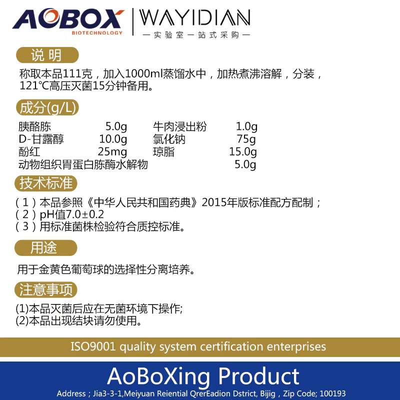 Маннитол, хлорид натрия, агар BR250 г/бутылка, биологический реагент, сухой порошок, тип Пекин Aoboxing, подлинная, бесплатная доставка