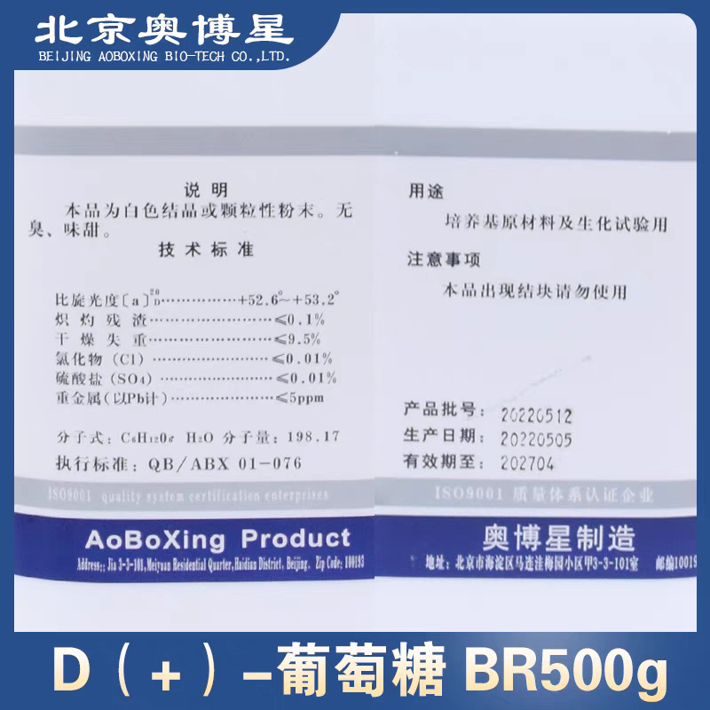 Глюкоза BR500г/бутылка, реагент для научных исследований, питательная среда Beijing Aoboxing, специальный безводный глюкоза класса BR