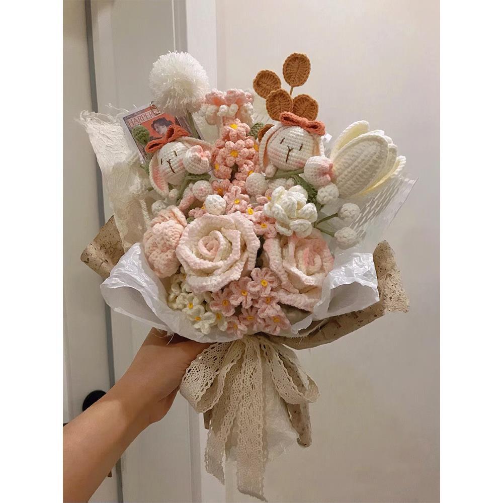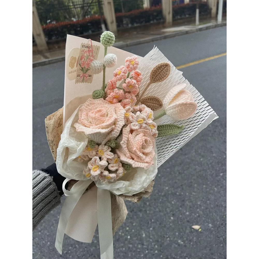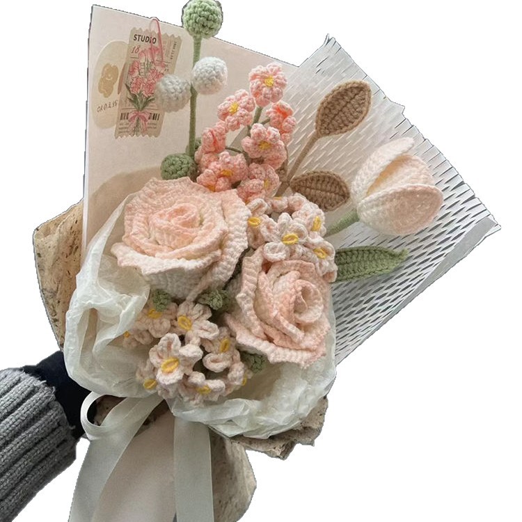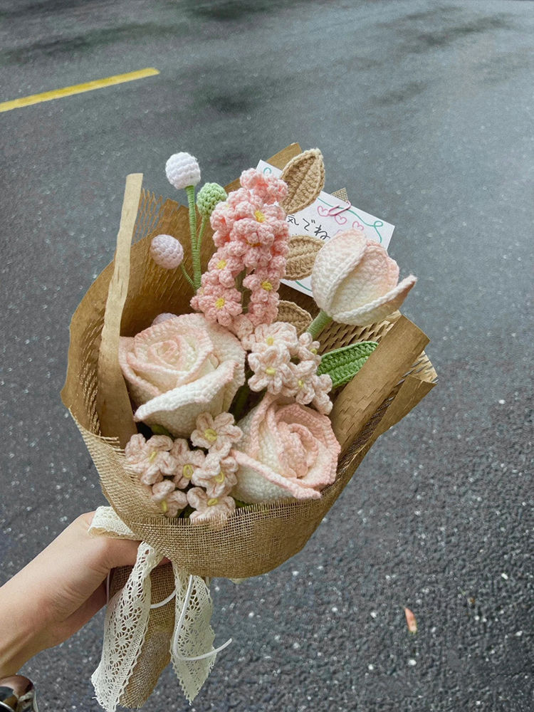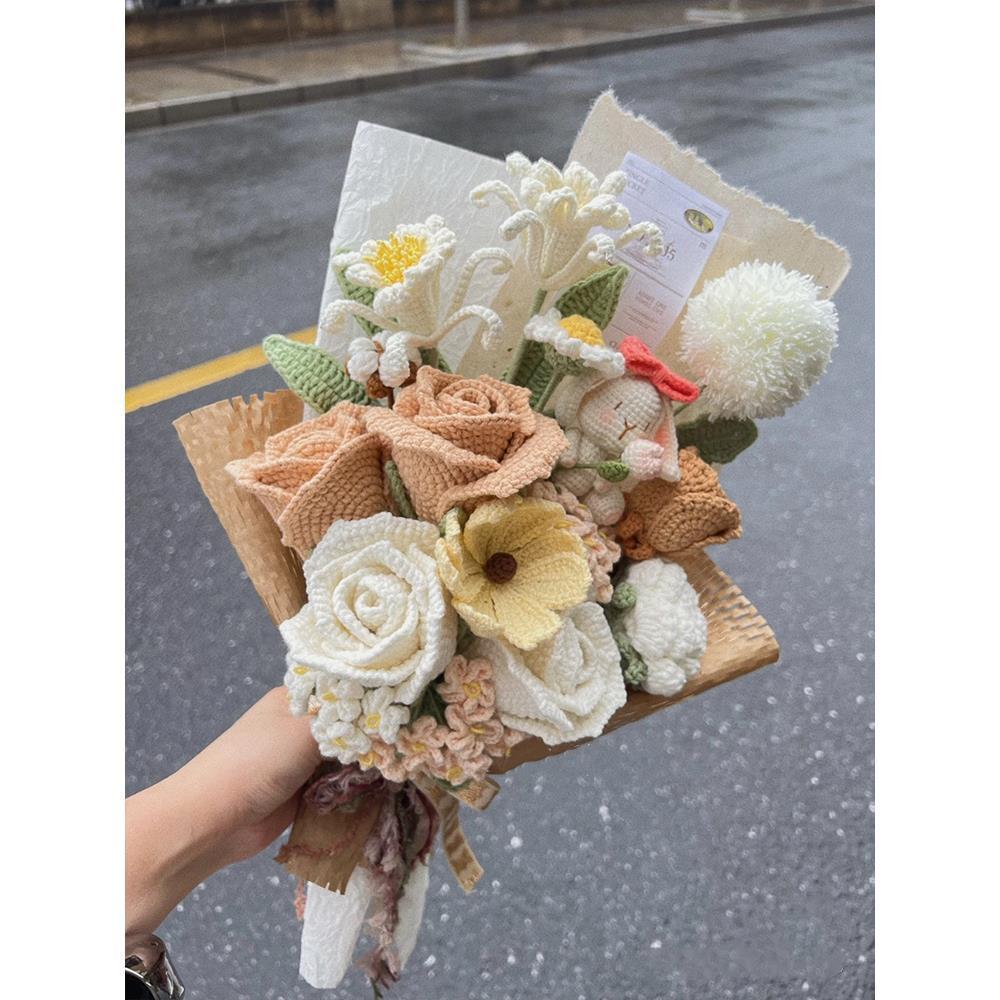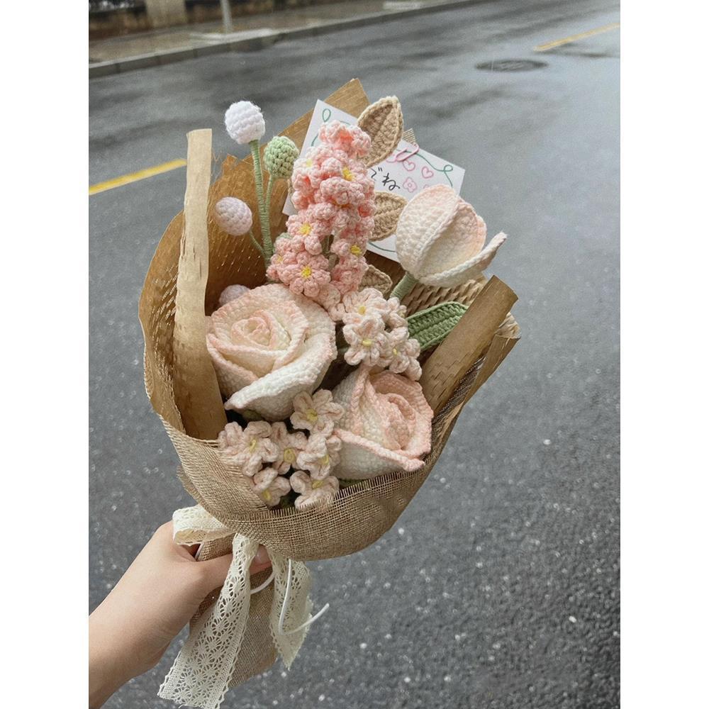 Вязаный крючком шерстяной букет ручной работы, подарок на День святого Валентина, вечный цветок, День матери 052, вязание, материал «сделай сам», пакет