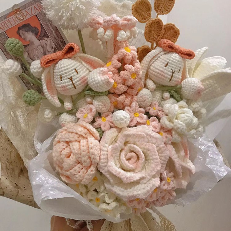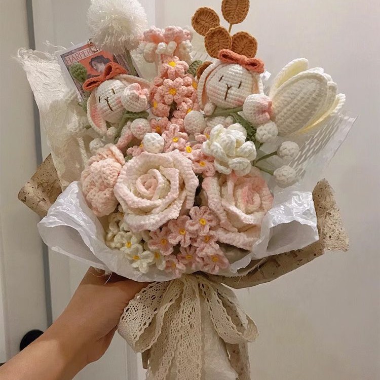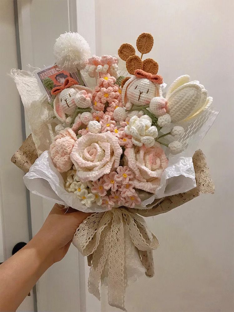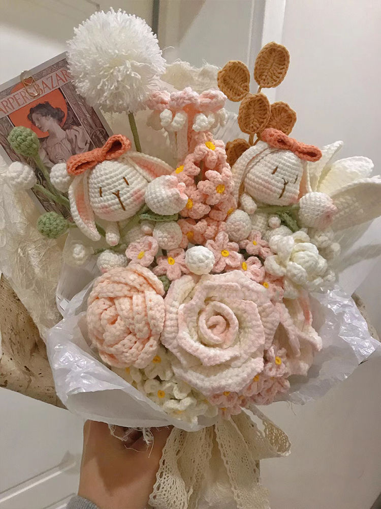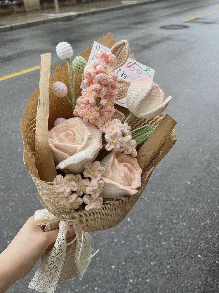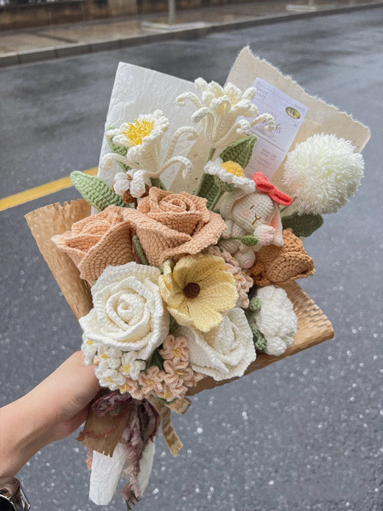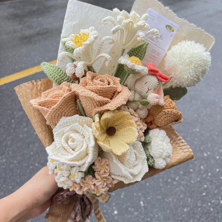 Вязаный крючком шерстяной букет ручной работы, подарок на День святого Валентина, вечный цветок, День матери 052, вязание, материал «сделай сам», пакет