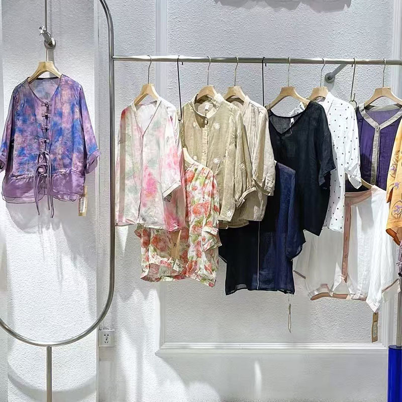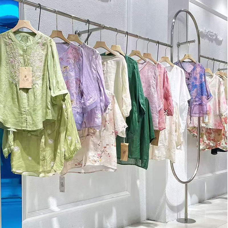 Винтажная женская рубашка с вышивкой Ramie, лето 2025, элитная элегантная блузка с V-образным вырезом и средним рукавом для похудения, распродажа бренда.