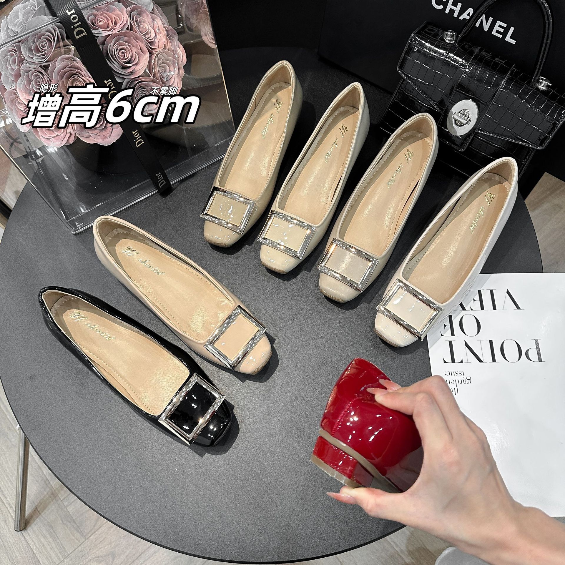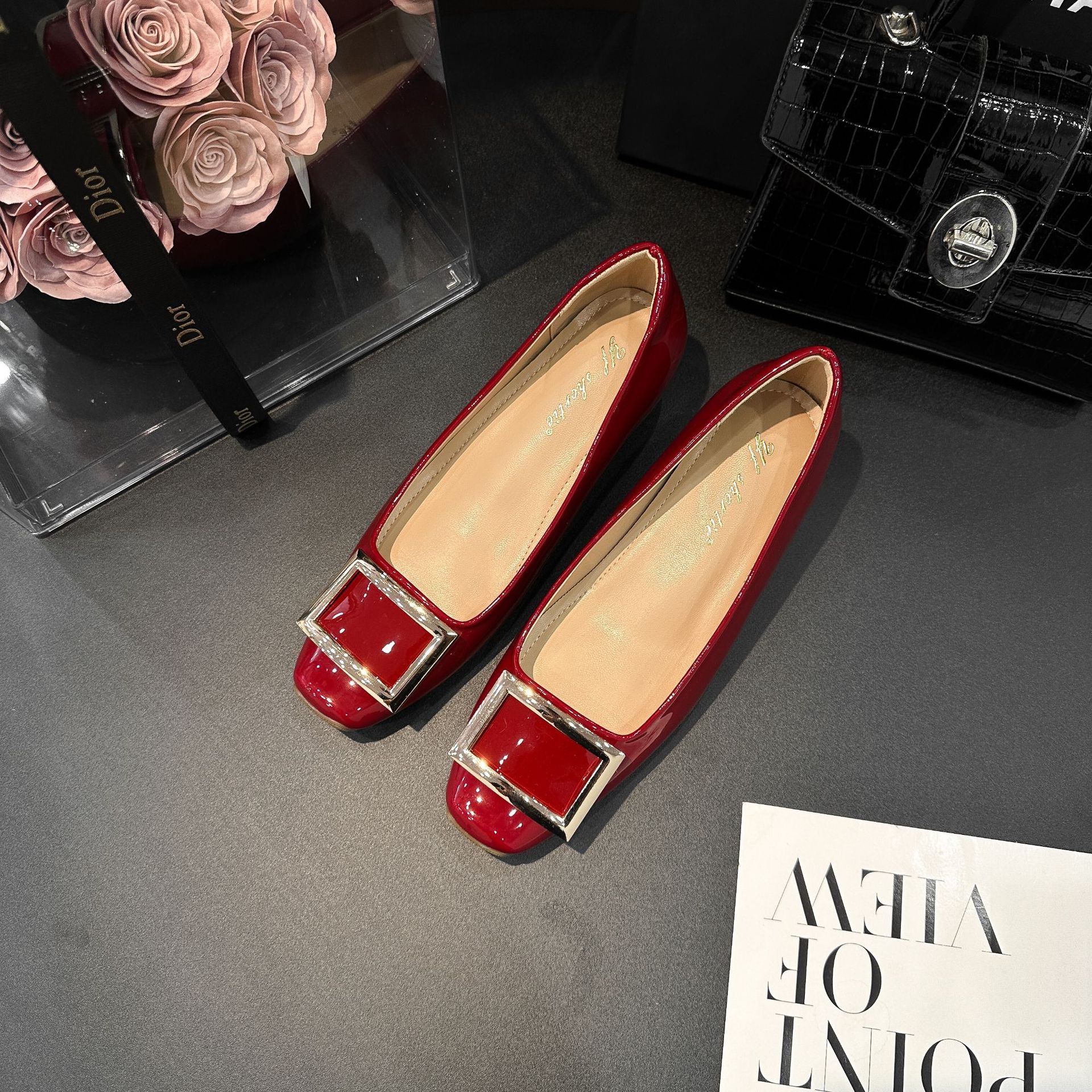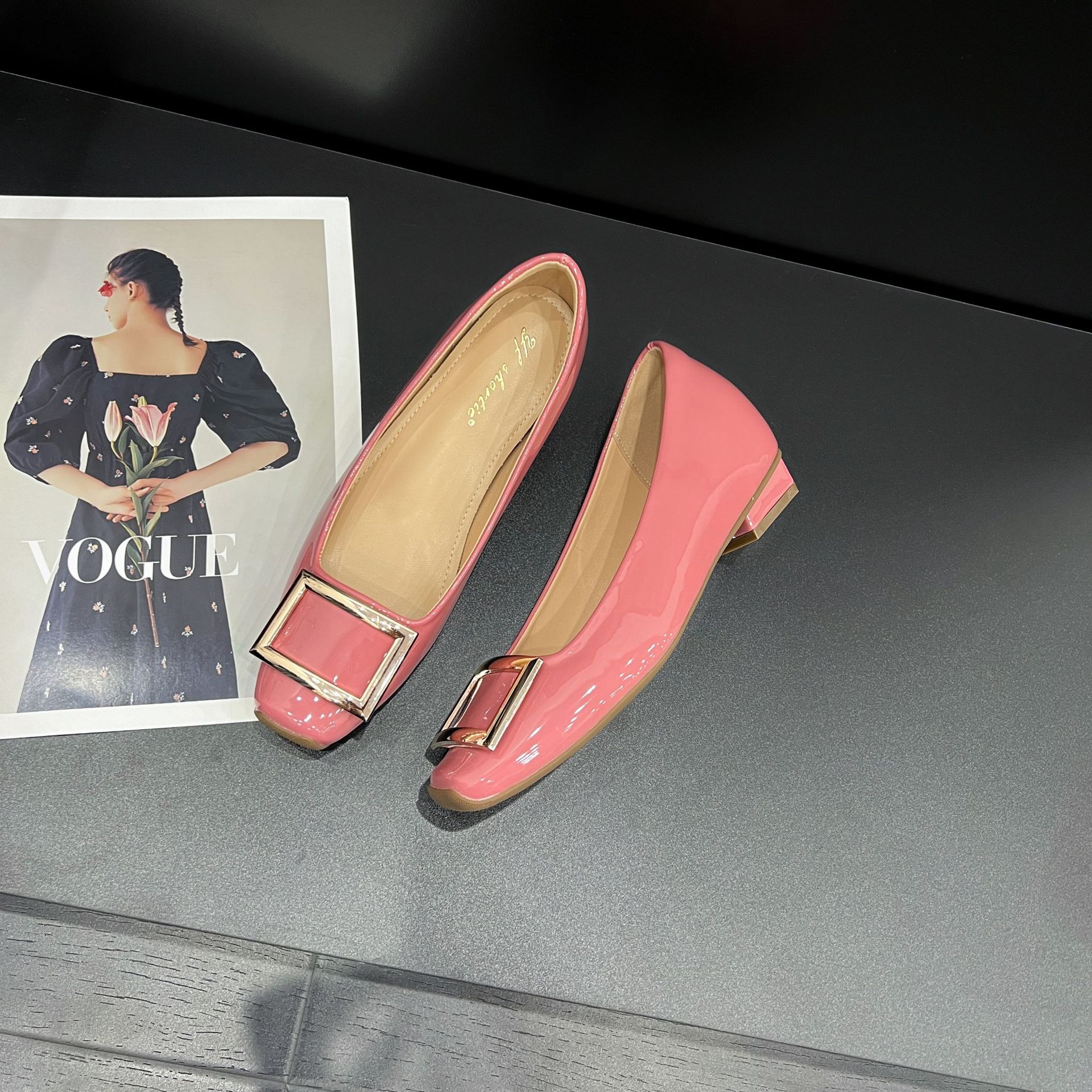 Элегантные женские туфли на высоком каблуке из лакированной кожи, универсальные туфли-лодочки на массивном каблуке с квадратной пряжкой для похудения.