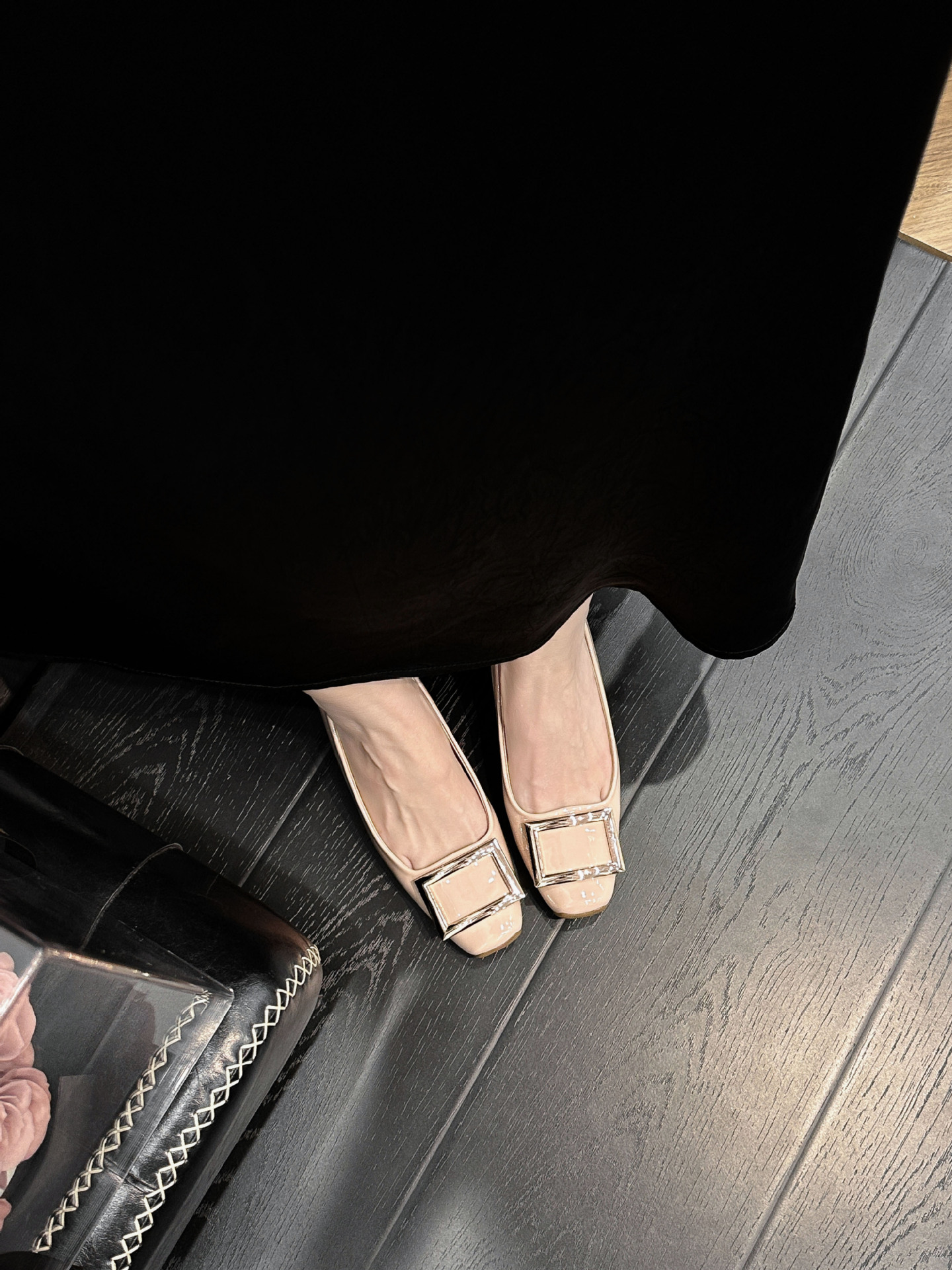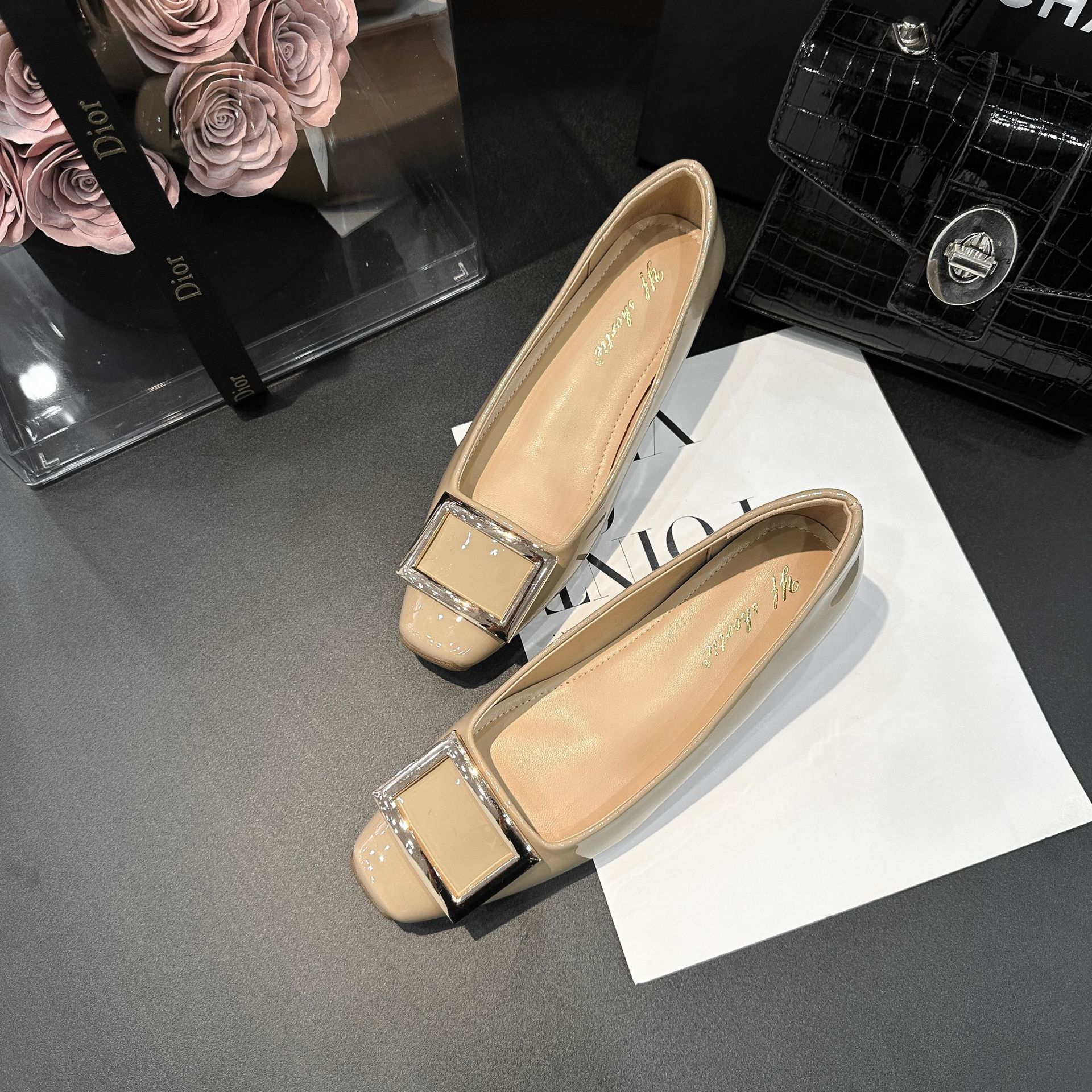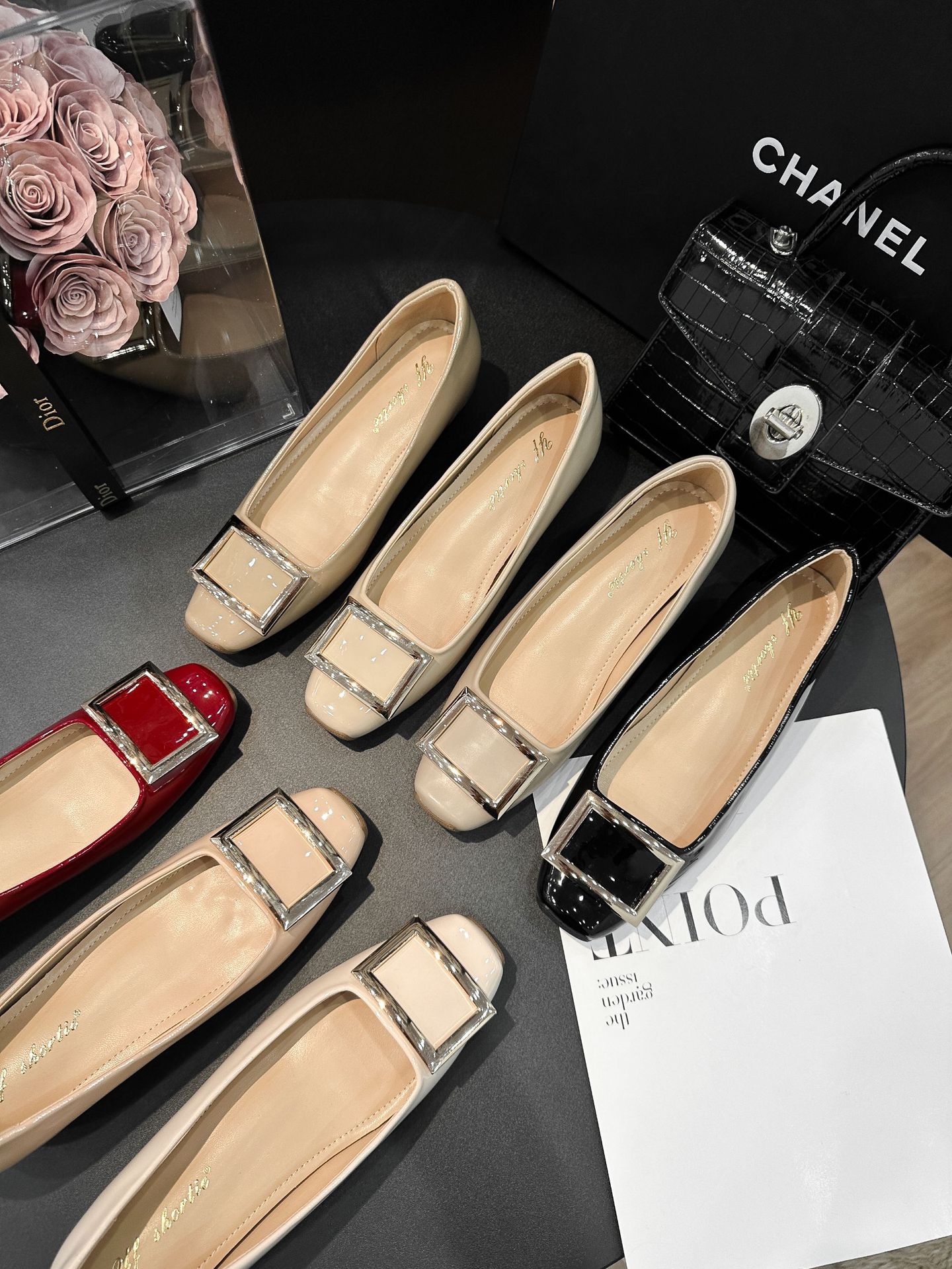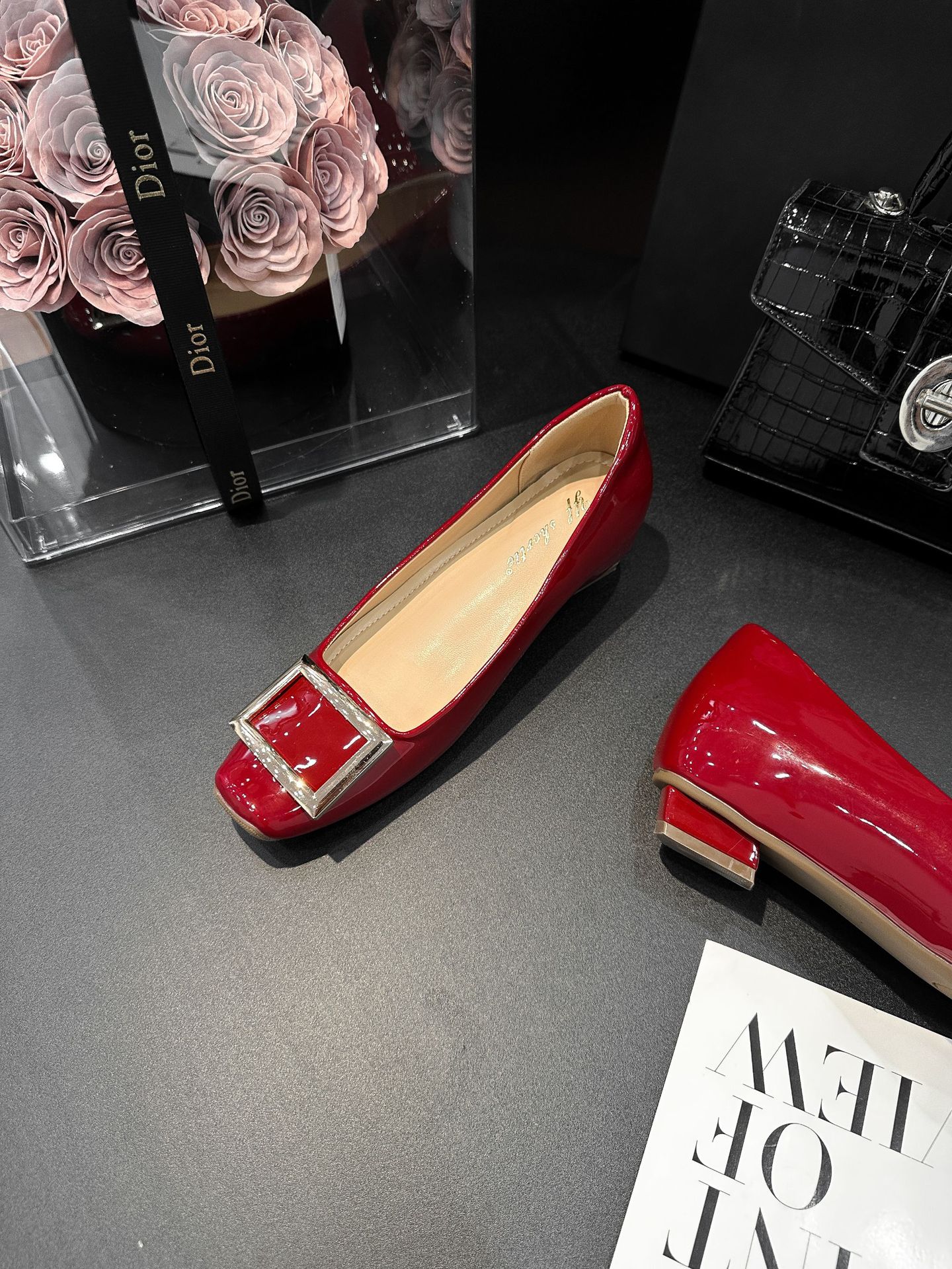 Элегантные женские туфли на высоком каблуке из лакированной кожи, универсальные туфли-лодочки на массивном каблуке с квадратной пряжкой для похудения.