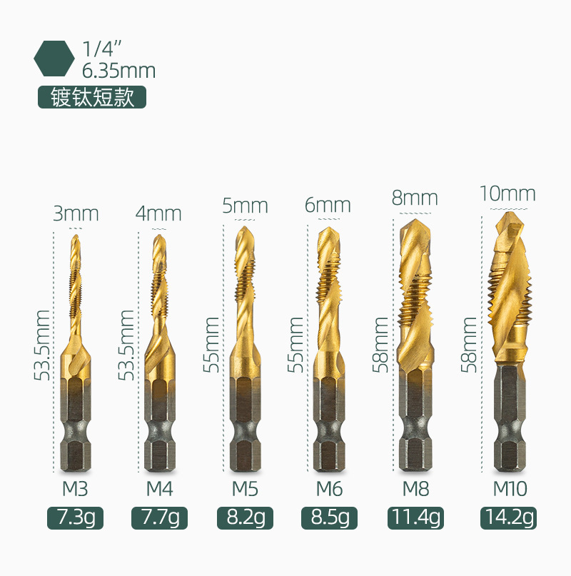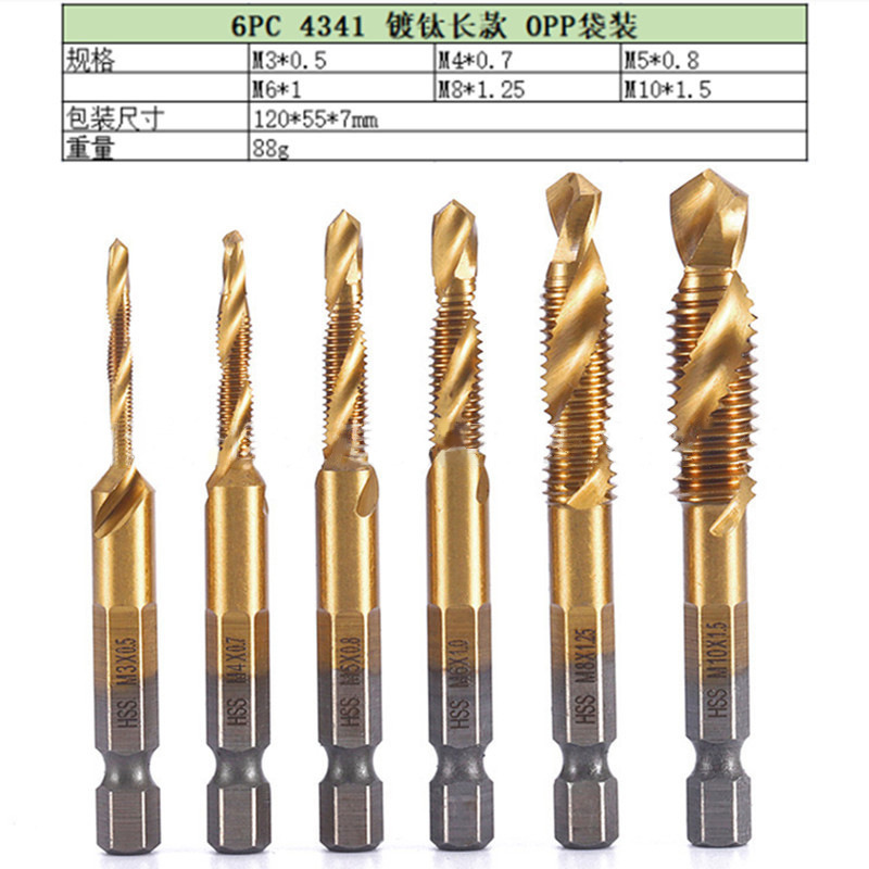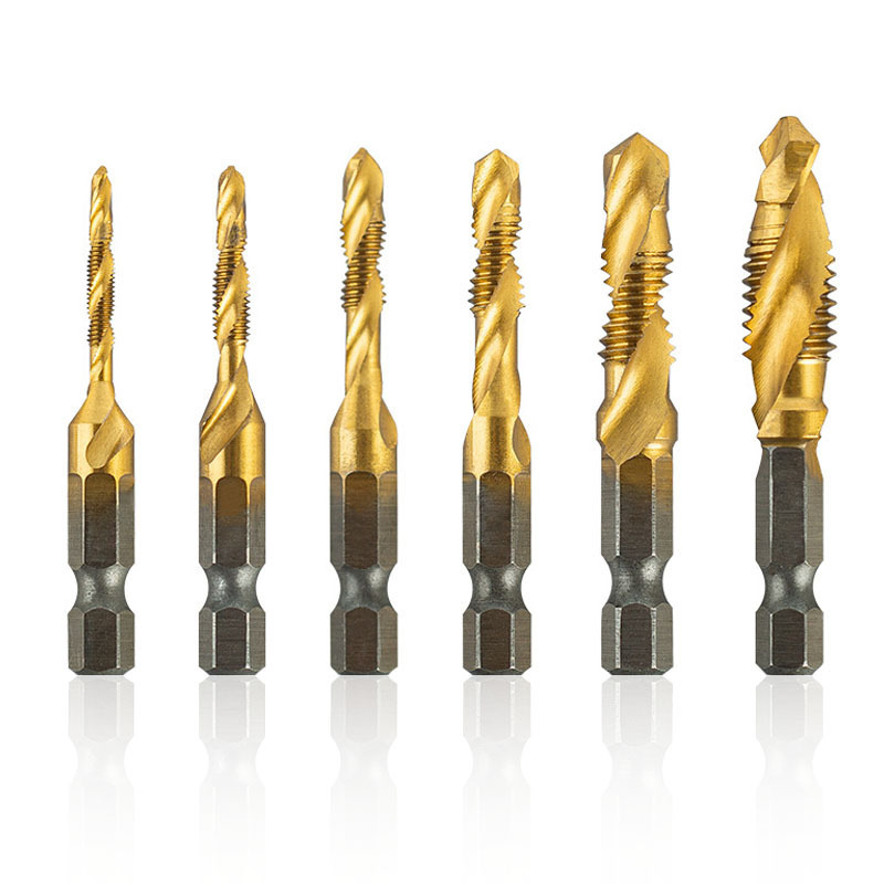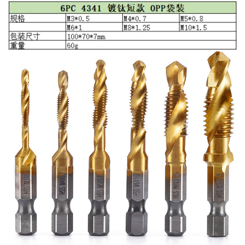 6 Pack Titanium Combination Drill Tap Bit Set Screw Tapping SAE 6-32NC 8-32NC 10-24NC 10-32NC 12-24NC 1/4-20NC