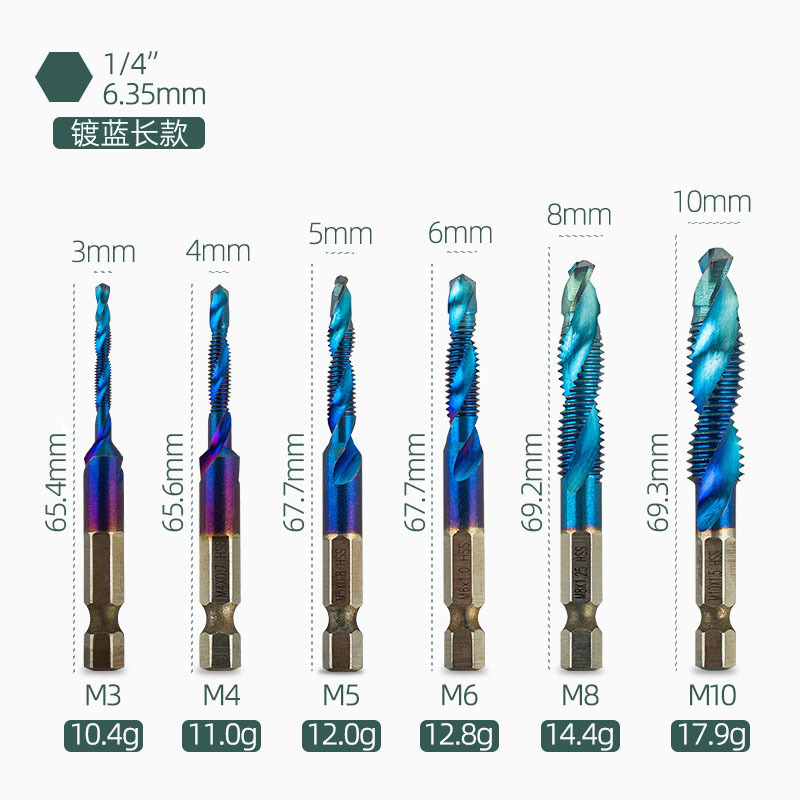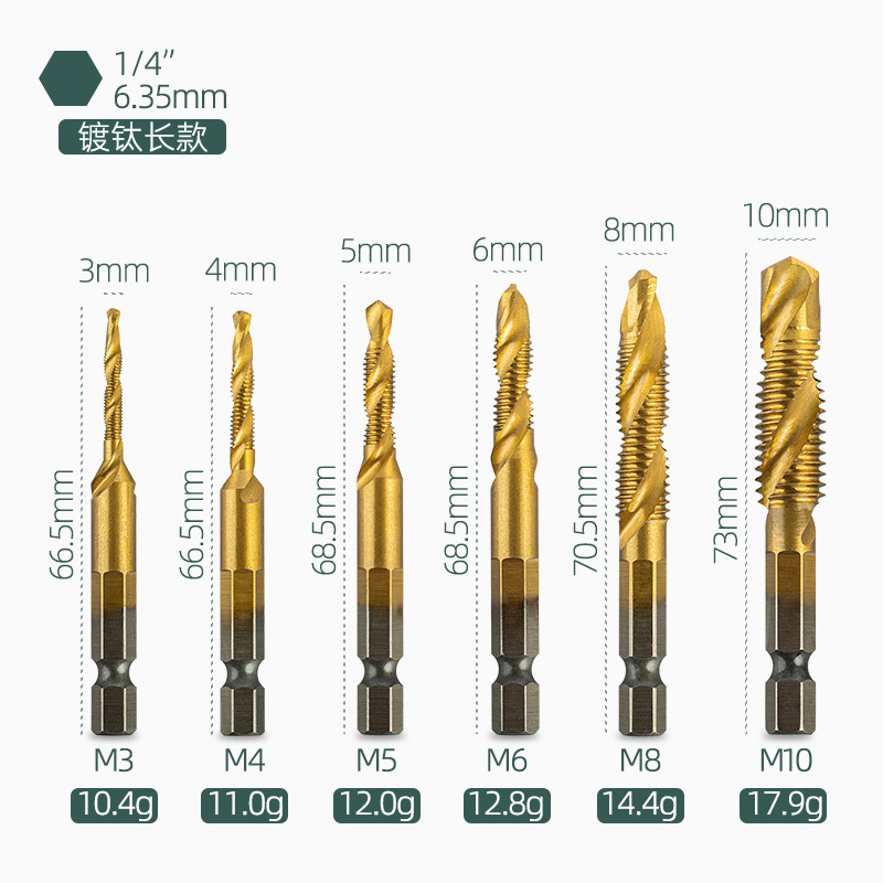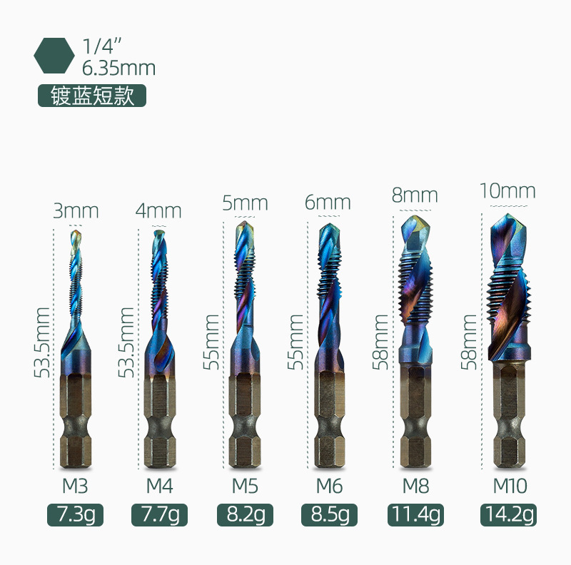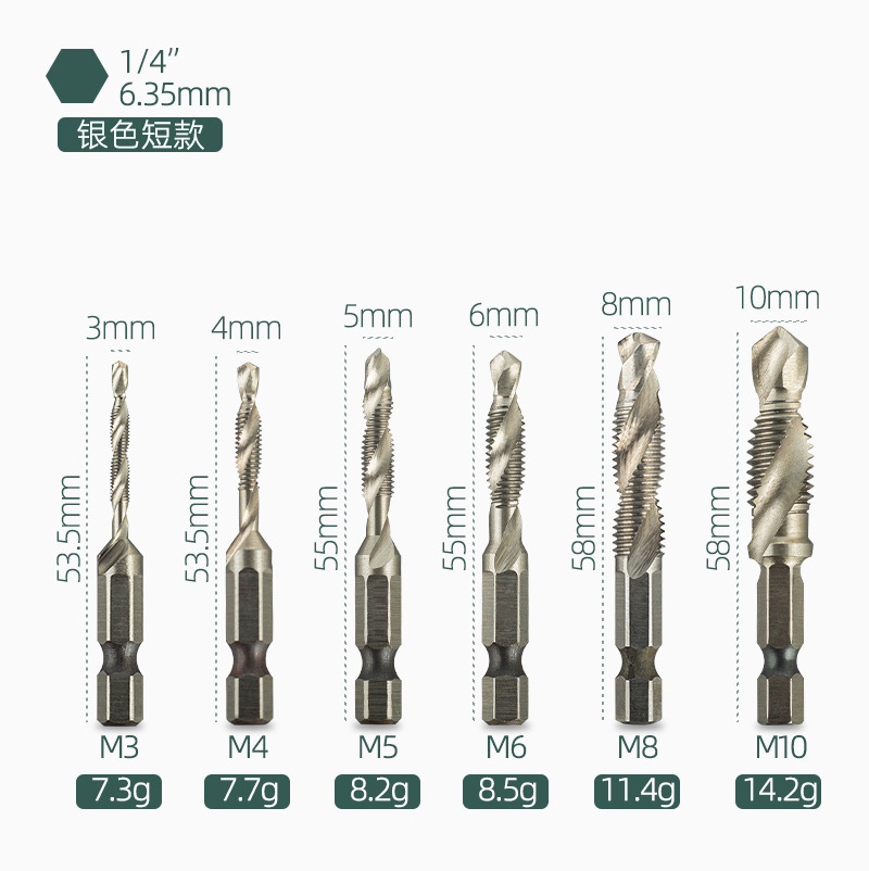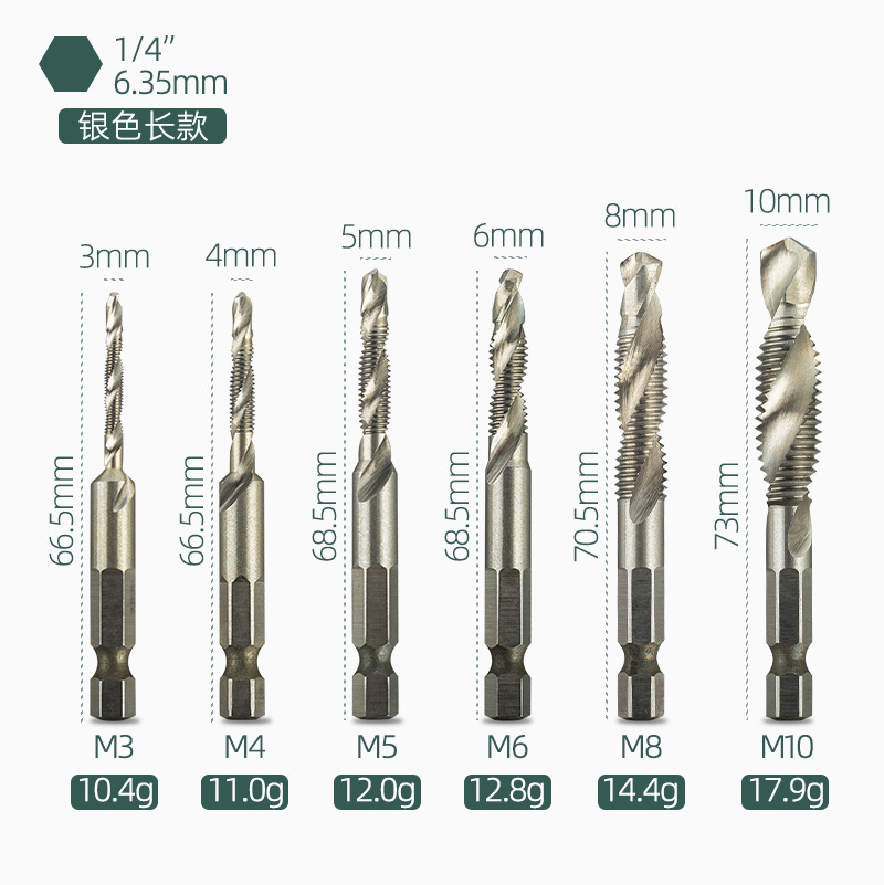Набор сверл со встроенным композитным метчиком «три в одном» и сверлом для нарезания резьбы и саморезов.