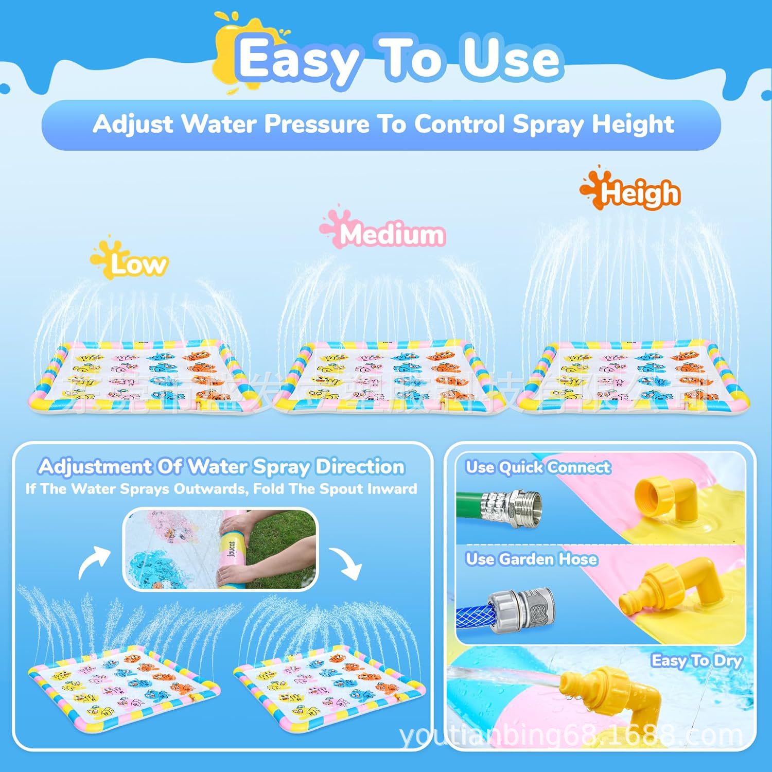 Детский квадратный фонтан из ПВХ с противоскользящим распылителем воды, уличный газон, летний игровой коврик для домашних животных и собак