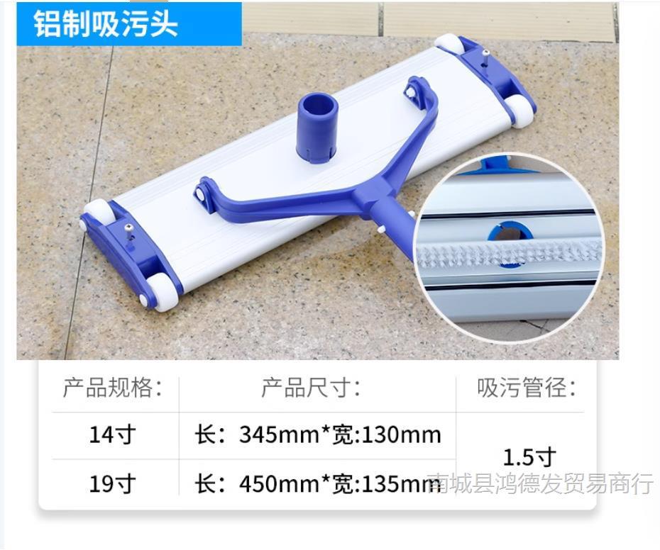 14inch С боковой щеткой + нижней квадратной щеткой; 19inch Пластиковая всасывающая головка с нижней щеткой; Угловая маленькая всасывающая головка; 14inch всасывающая головка дугового типа; 1 белая ручка; 3m алюминиевый столб; 19inch алюминиевая всасывающая головка; 1 треугольная всасывающая головка; 1.5inch обратный клапан; 14inch алюминиевая всасывающая головка