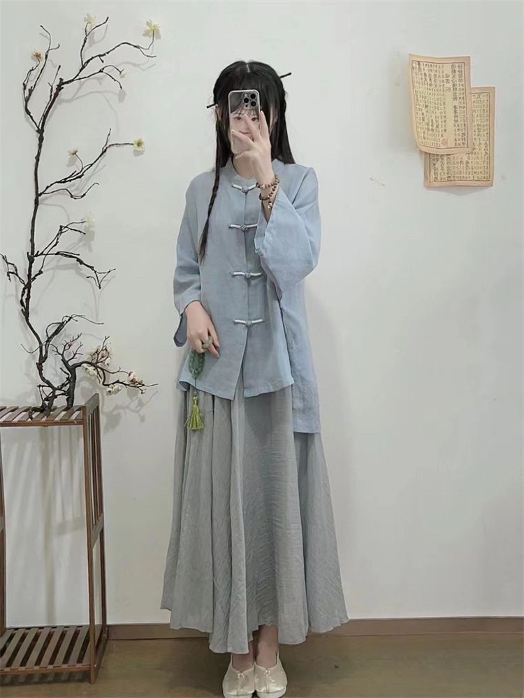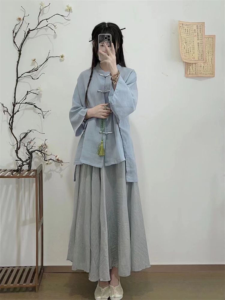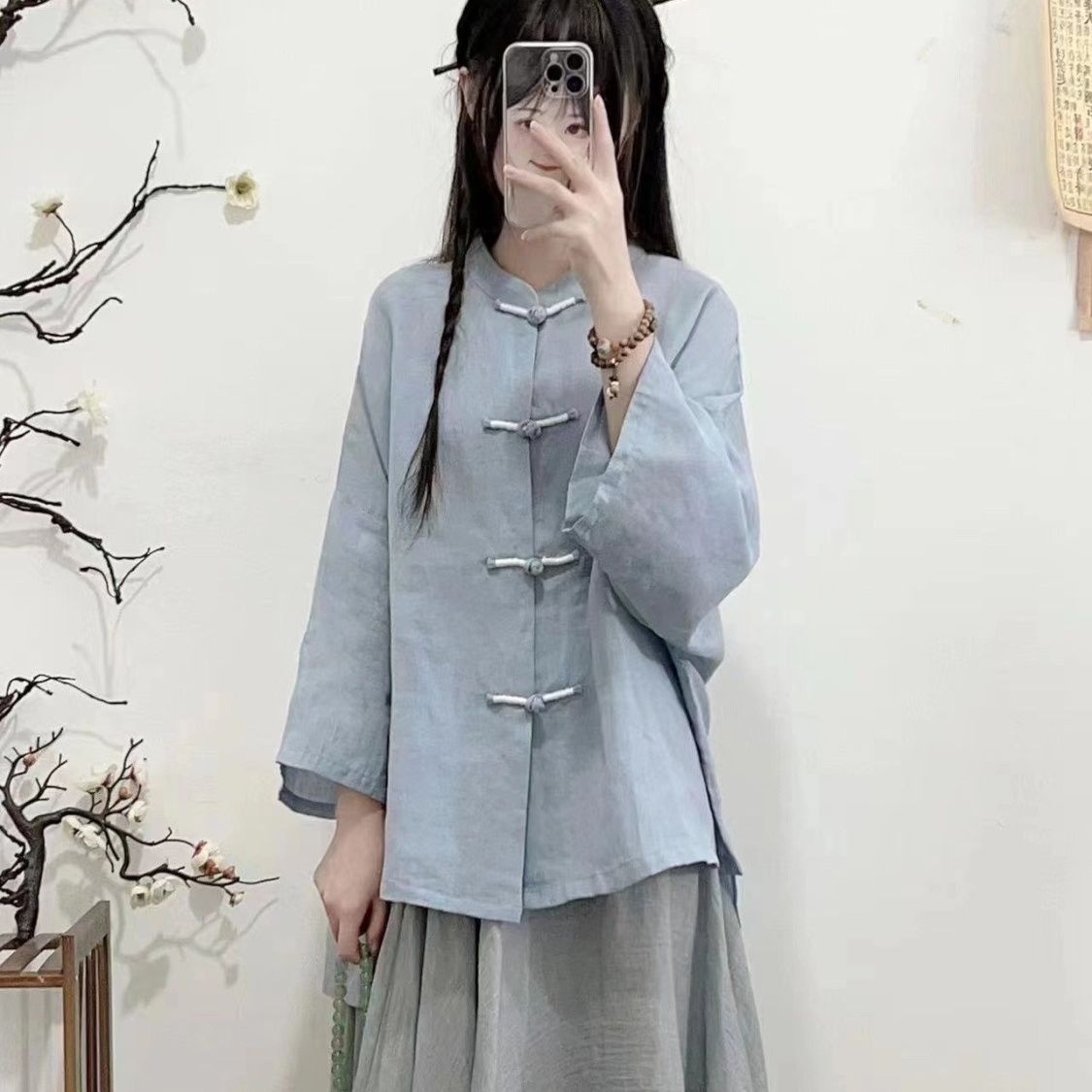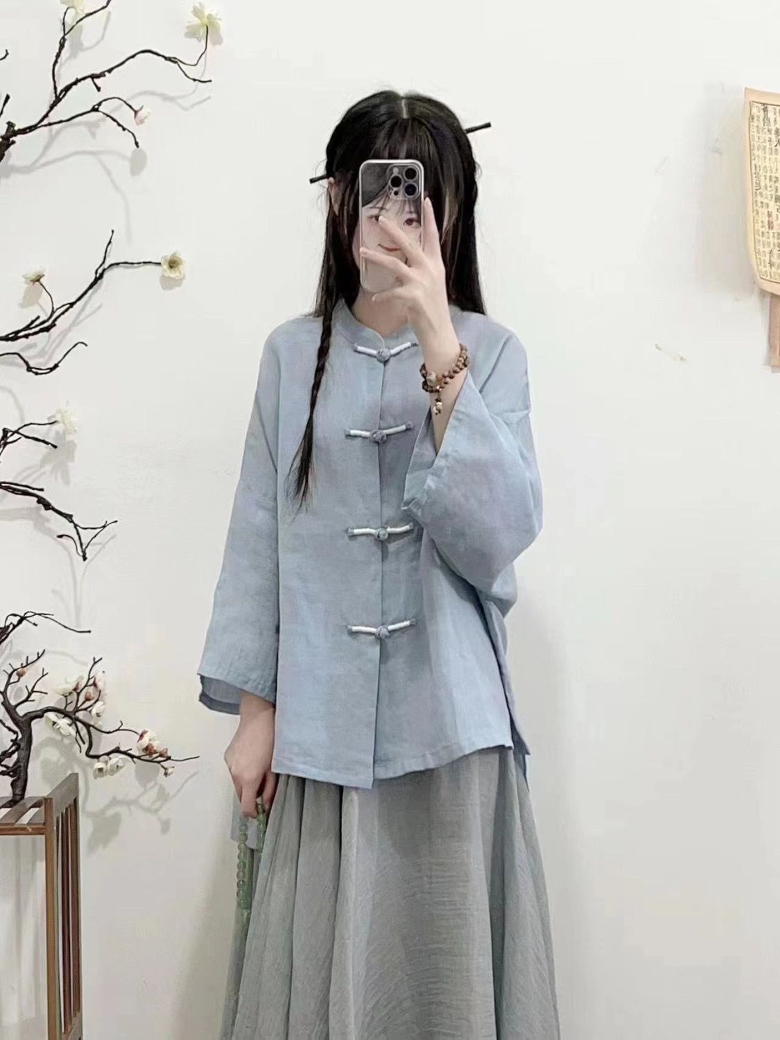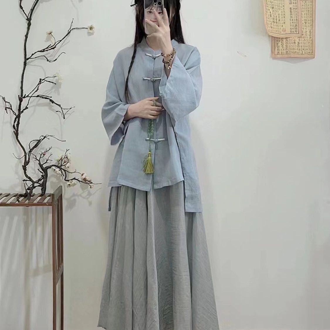 Новая свободная рубашка с воротником-стойкой в китайском стиле дзен, костюм для чайного искусства в древнем стиле, нежный дождевой костюм Цзяннань, юбка в крутом стиле Республики Китай