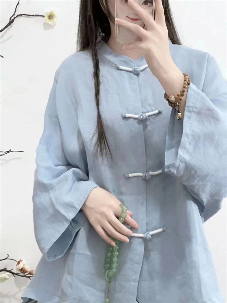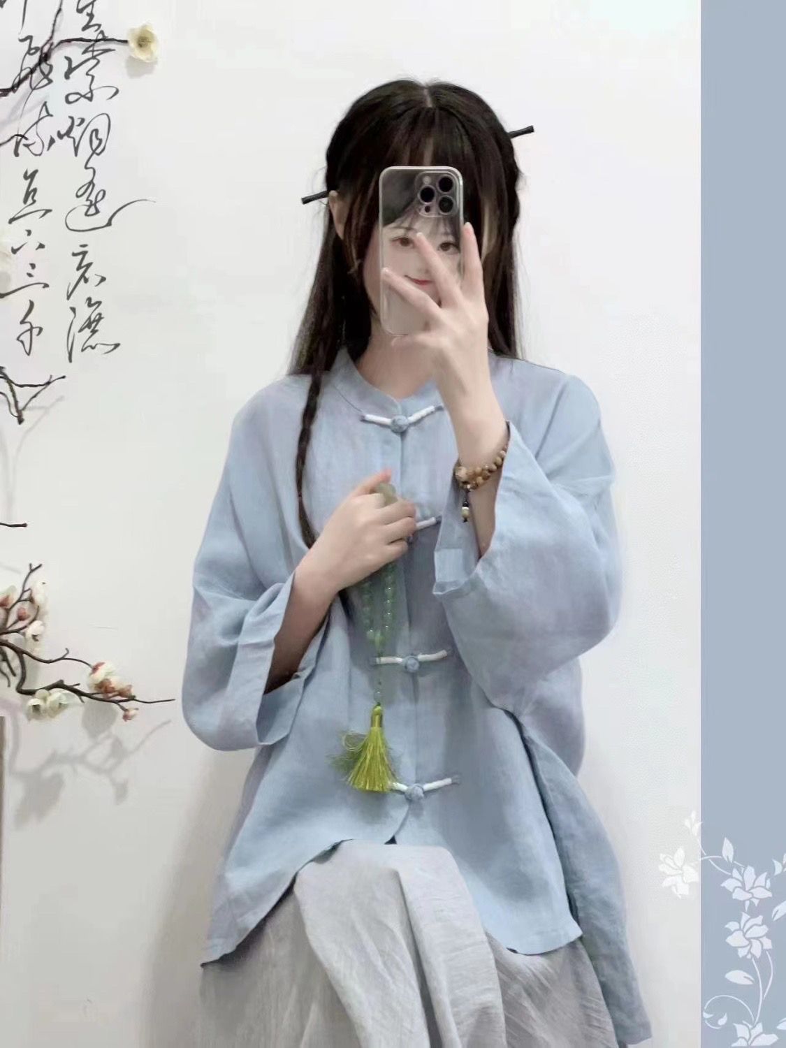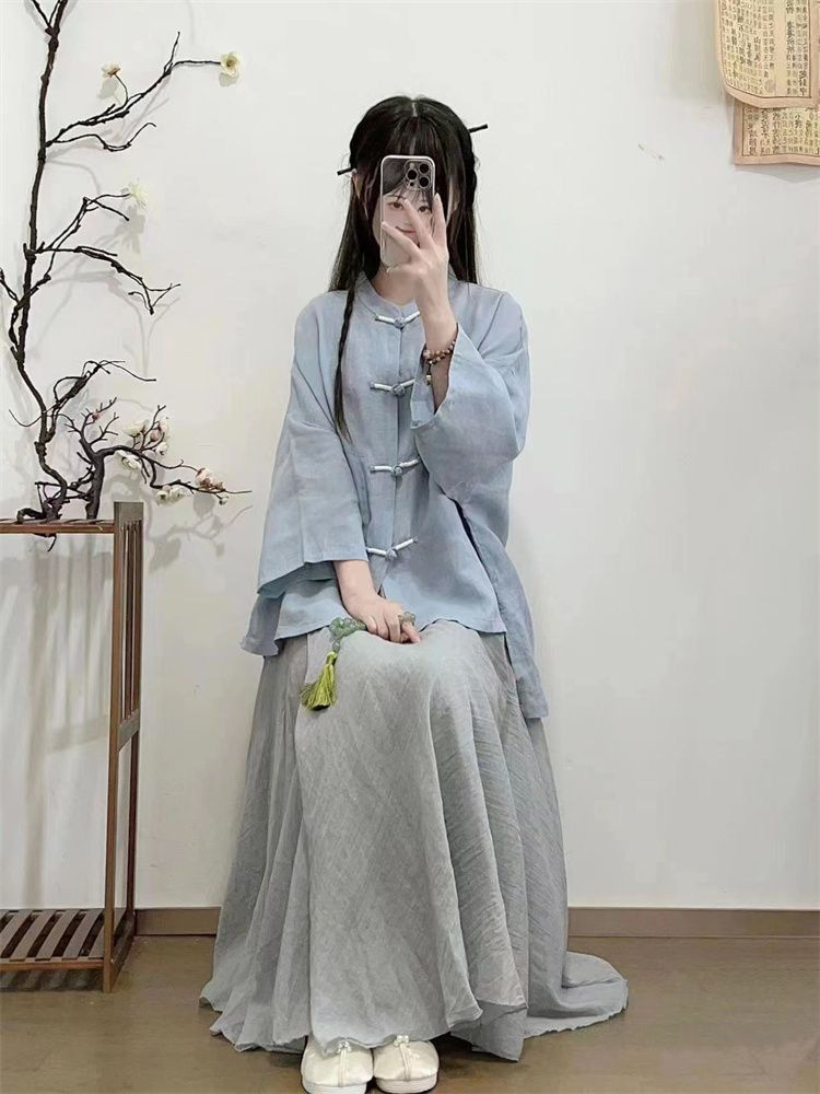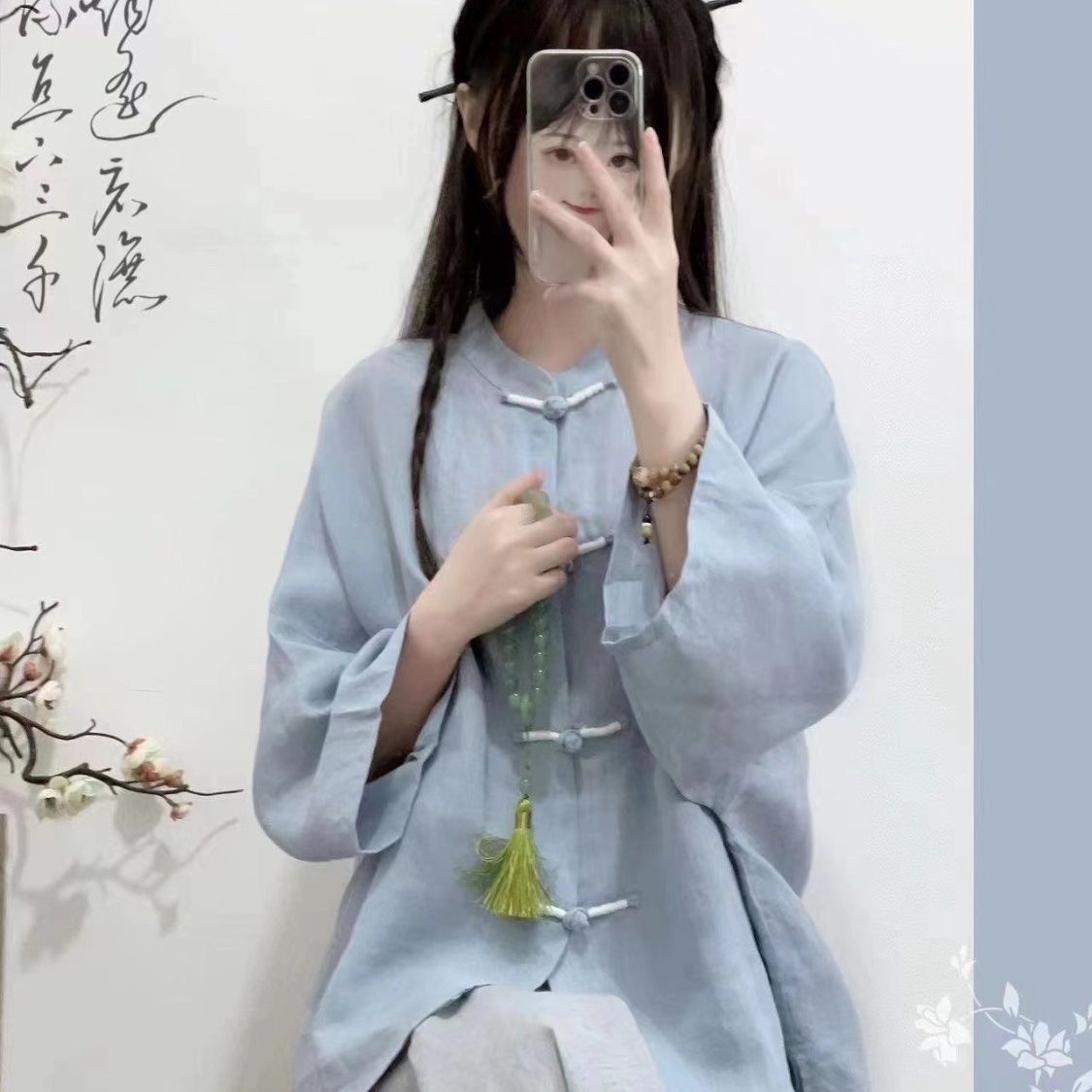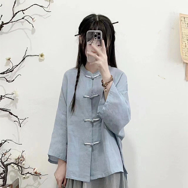 Новая свободная рубашка с воротником-стойкой в китайском стиле дзен, костюм для чайного искусства в древнем стиле, нежный дождевой костюм Цзяннань, юбка в крутом стиле Республики Китай
