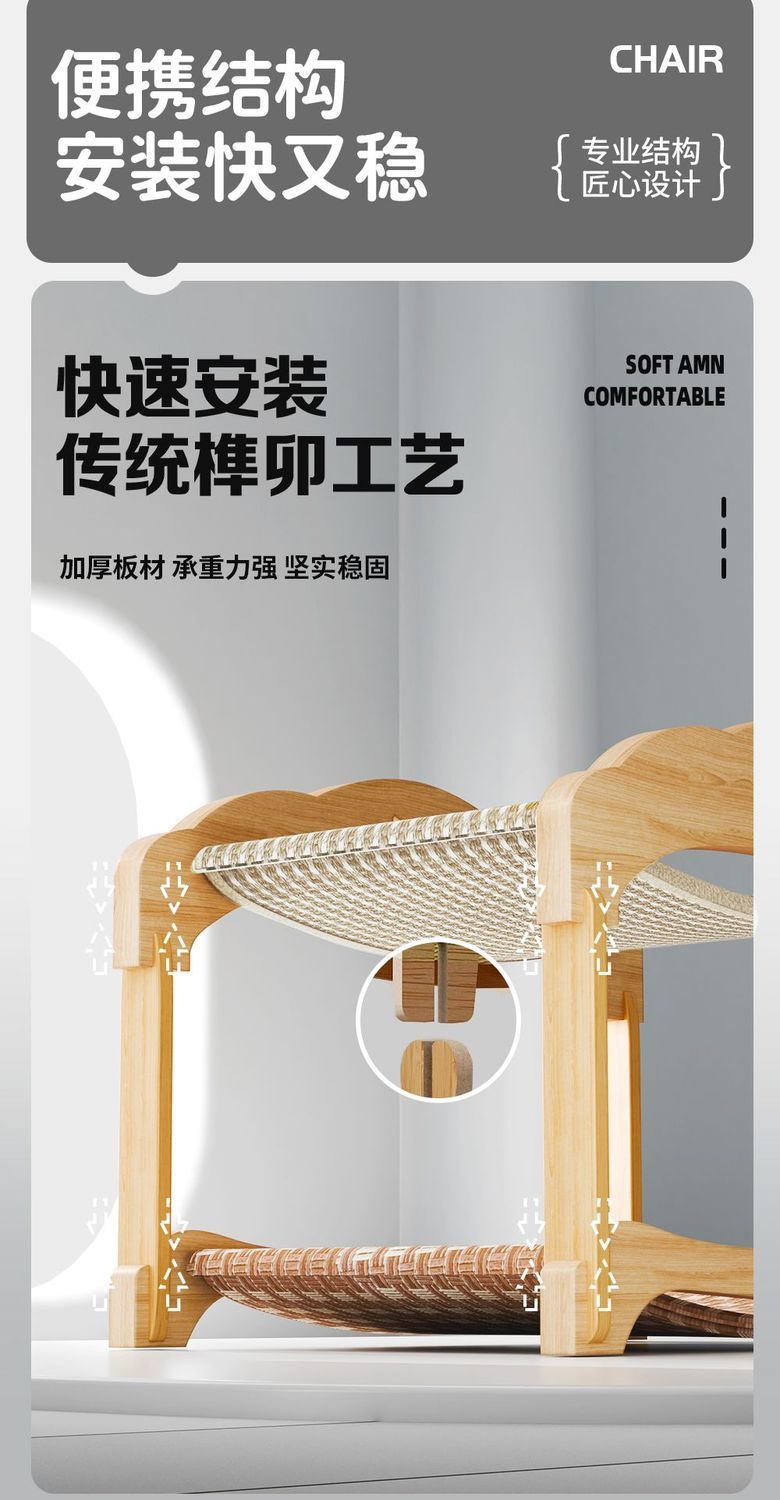 [Съемный] Однослойный коврик из ротанга.; [Съемный] Коврик из ротанга + двухслойная кошачья кроватка из сизаля