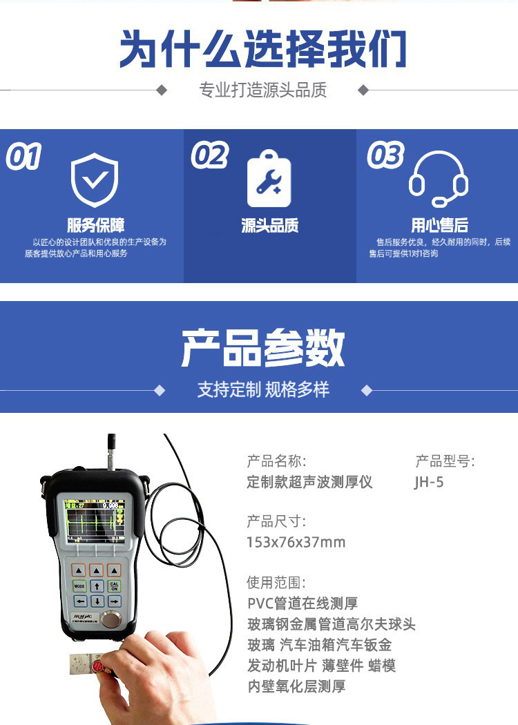 JiuHeng Instruments JH-5 ультразвуковой толщиномер высокого разрешения для измерения труб из титанового сплава, композитных материалов из ПВХ