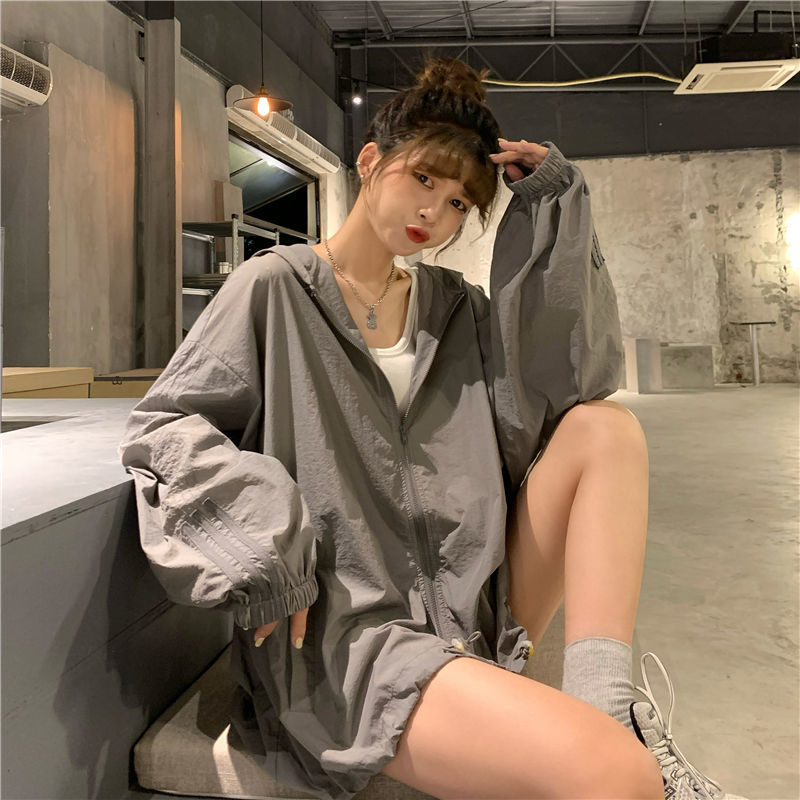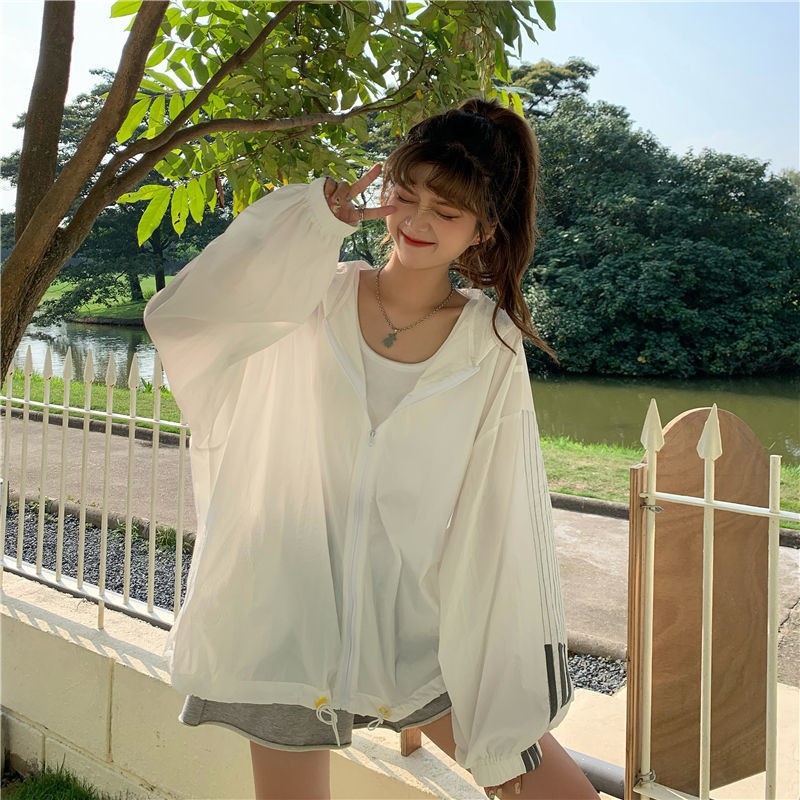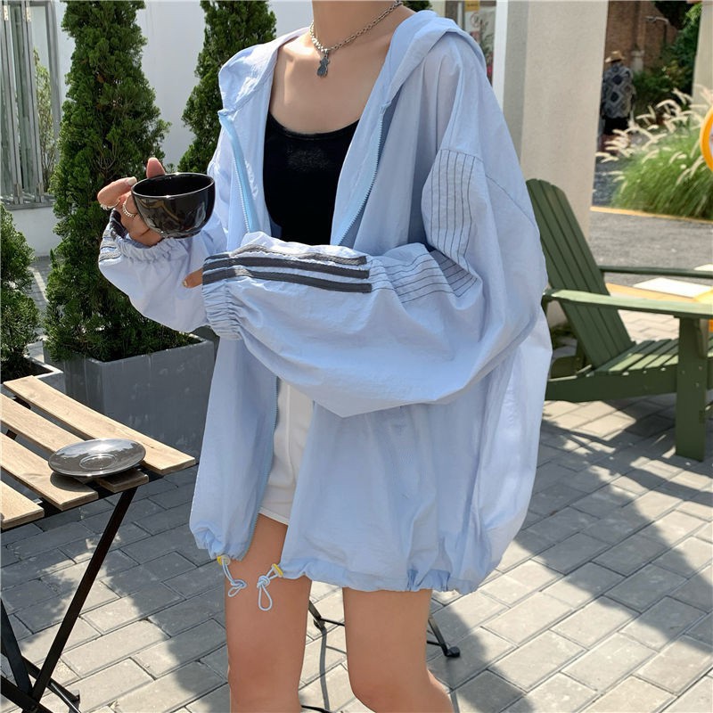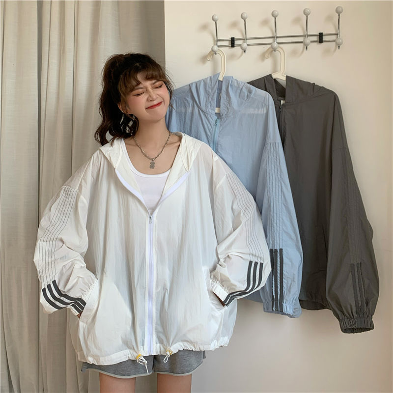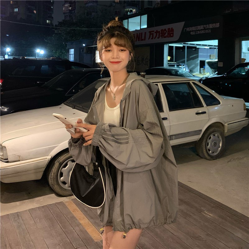 Солнцезащитная одежда для женщин, лето 2024, кардиган с защитой от ультрафиолета, солнцезащитная одежда, свободная тонкая студенческая куртка с длинными рукавами большого размера и капюшоном
