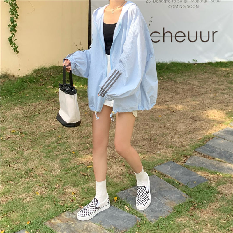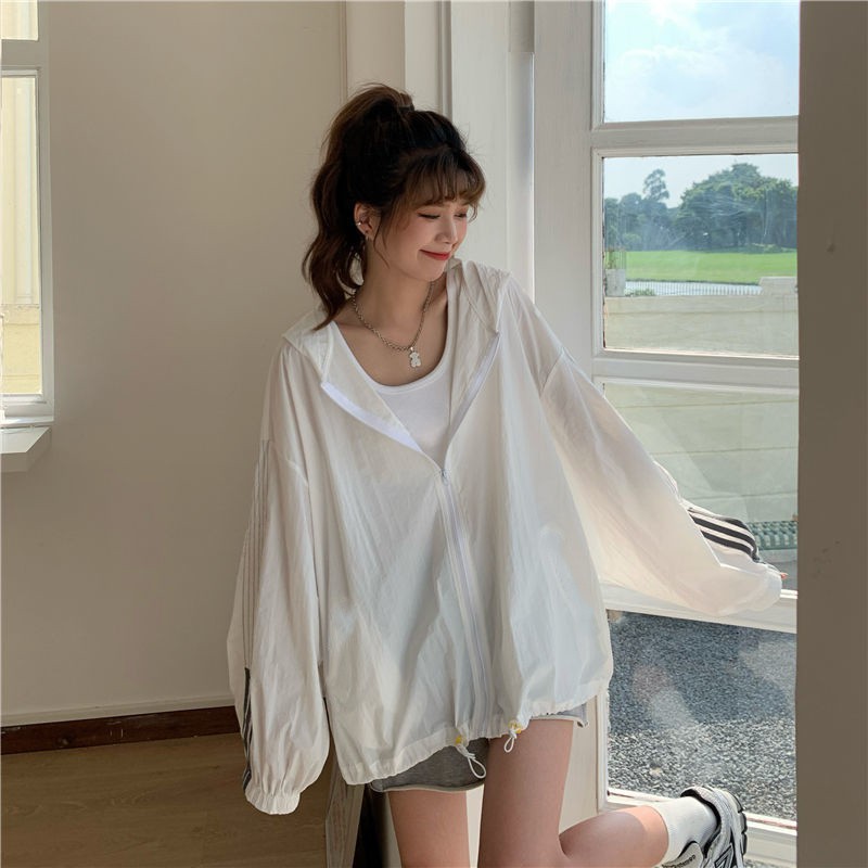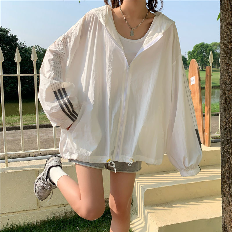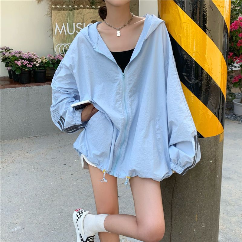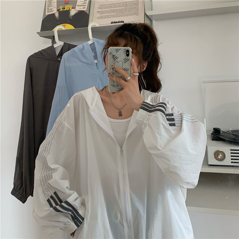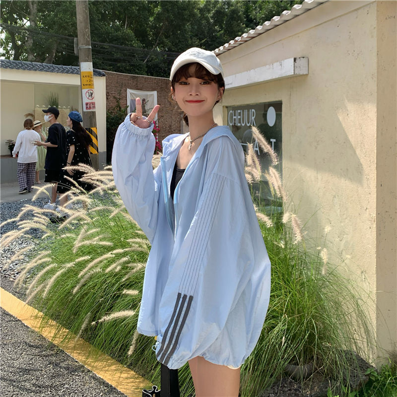 Солнцезащитная одежда для женщин, лето 2024, кардиган с защитой от ультрафиолета, солнцезащитная одежда, свободная тонкая студенческая куртка с длинными рукавами большого размера и капюшоном