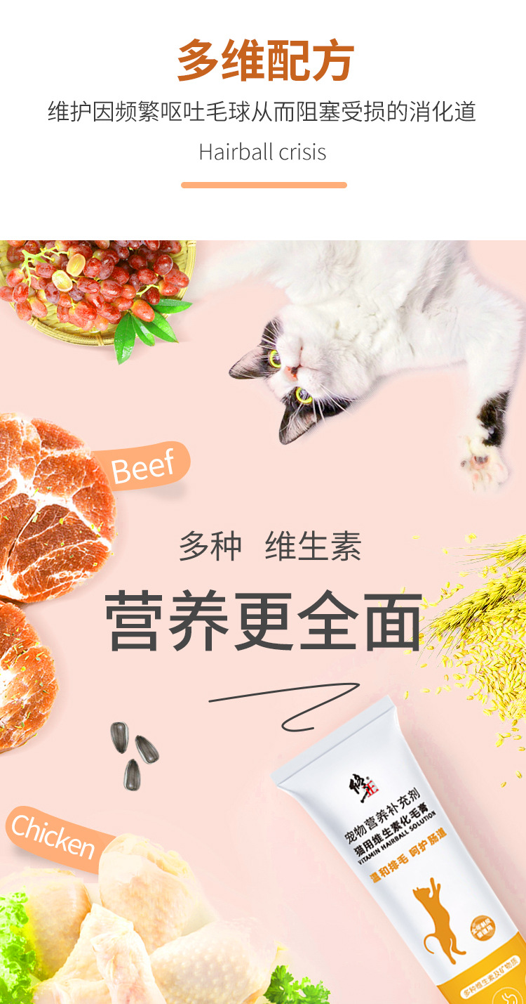 Корректирующая пищевая добавка для домашних животных «Для кошек» Витаминизированный крем для волос устраняет комки шерсти для всех пород кошек