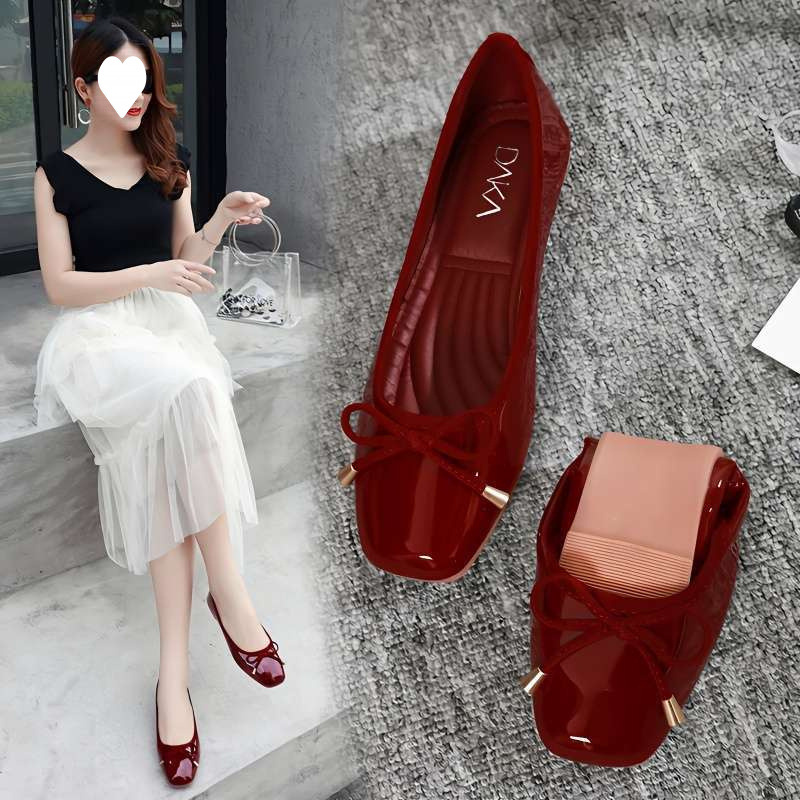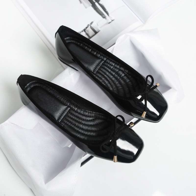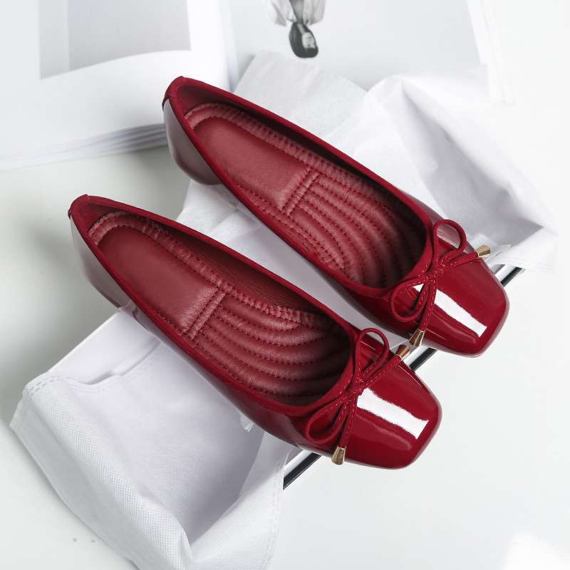 Туфли Doudou 2025, новые весенние красные туфли в корейском стиле, универсальные, квадратный носок, неглубокий вырез, плоские, красные, на мягкой подошве, без застежек.