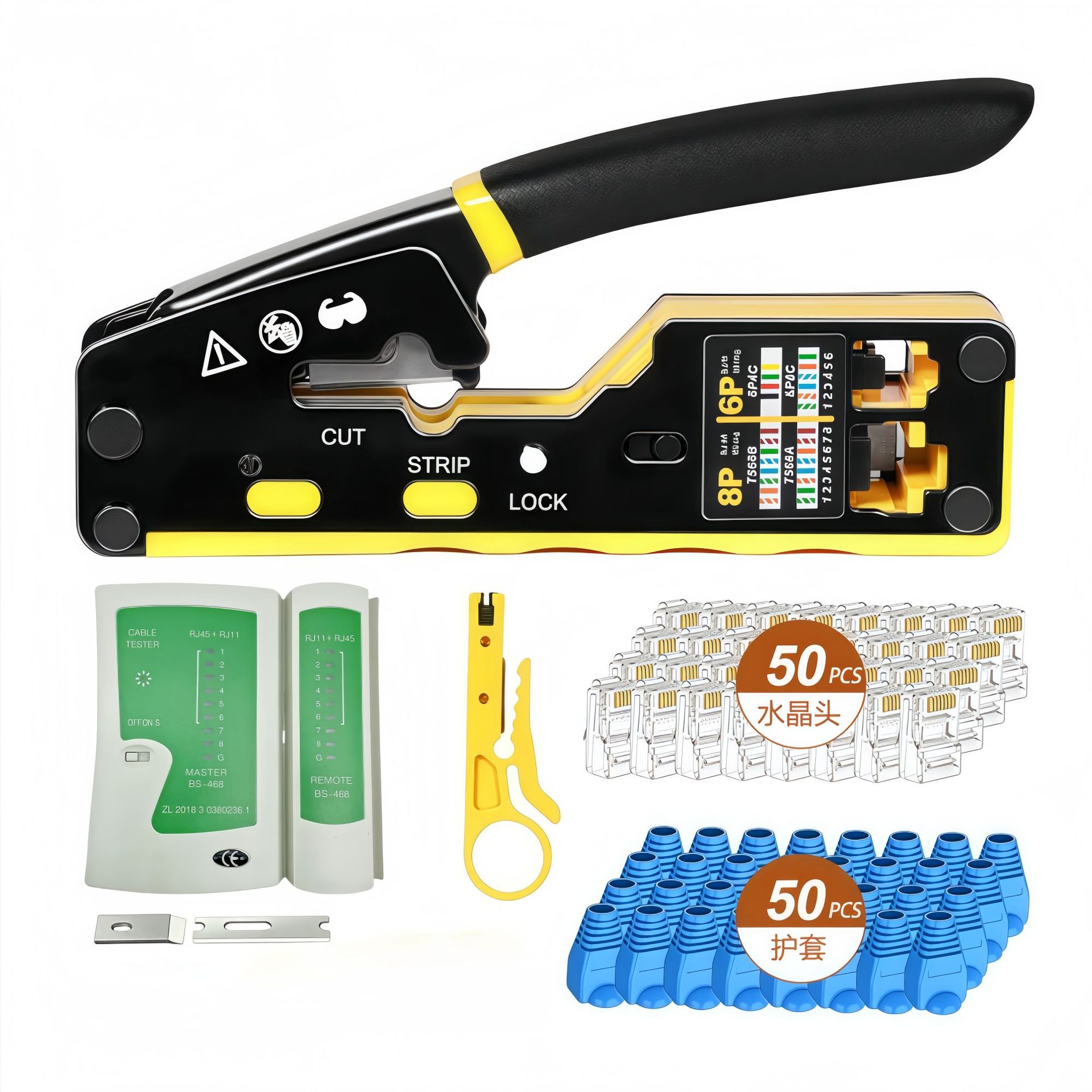 Класс 5e/Категория 6/Категория 7 плоскогубцы для сетевых инструментов с кристаллической головкой, набор из 4 предметов; Сетевые инструменты с кристаллической головкой категории 5e/категории 6/категории 7, набор из 5 предметов