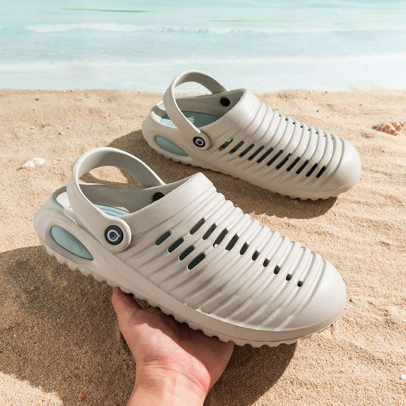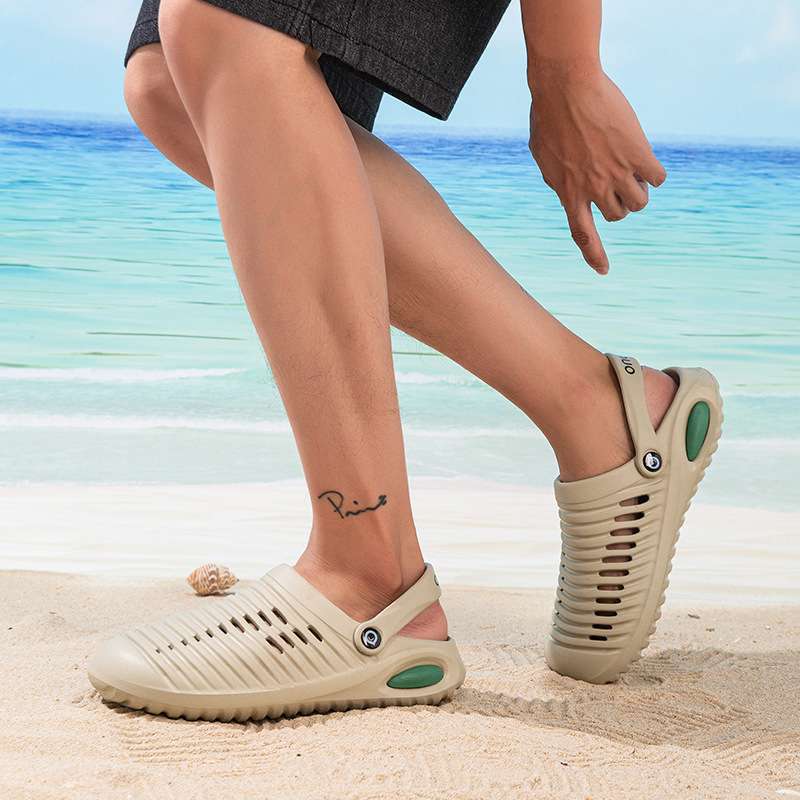 Мужские летние модные пляжные сандалии 2025 года, нескользящая мягкая подошва, антибактериальные, с отверстиями, закрытый носок.